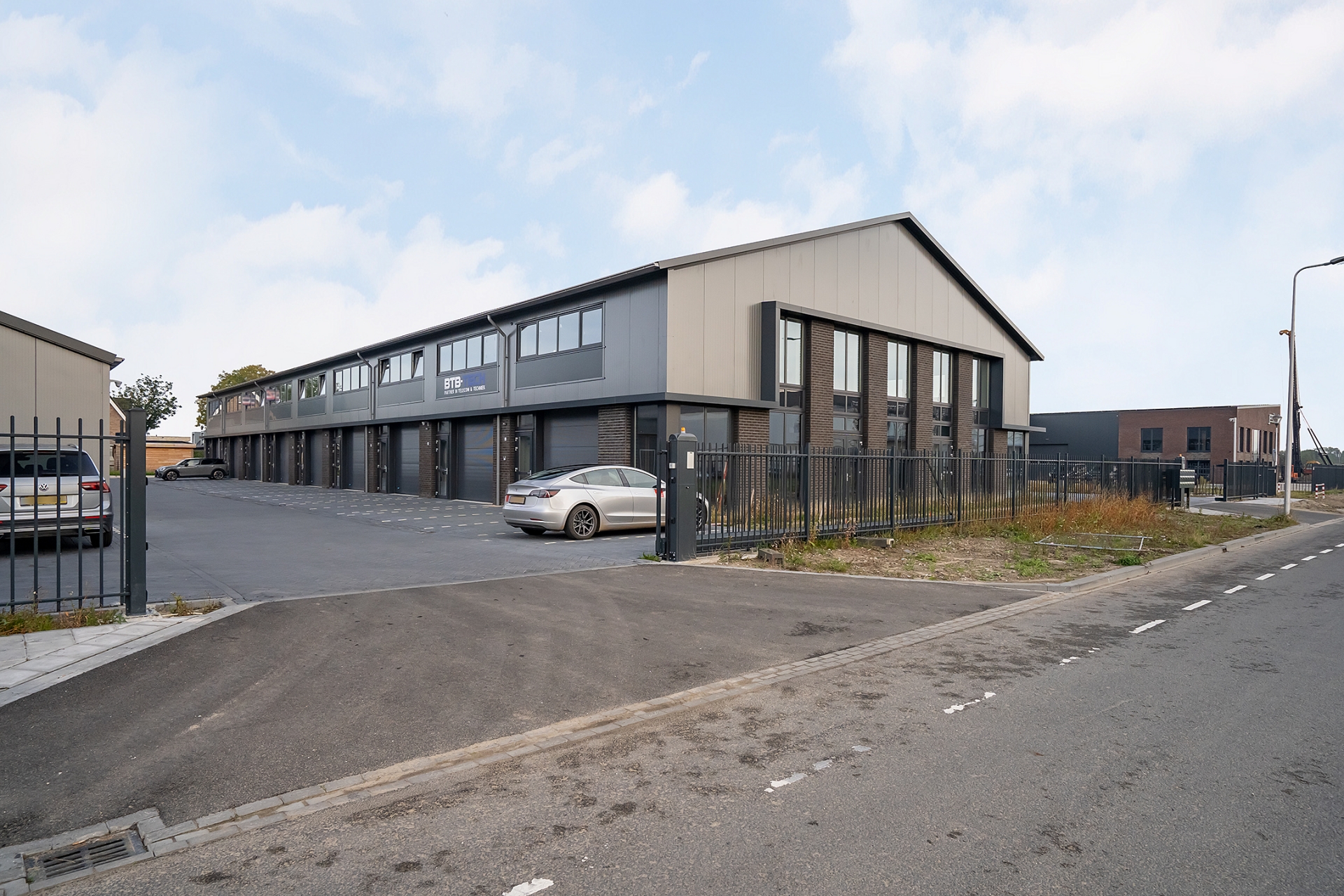 - de inritten van het bedrijventerrein worden voorzien van een tweetal automatische schuifhekken;