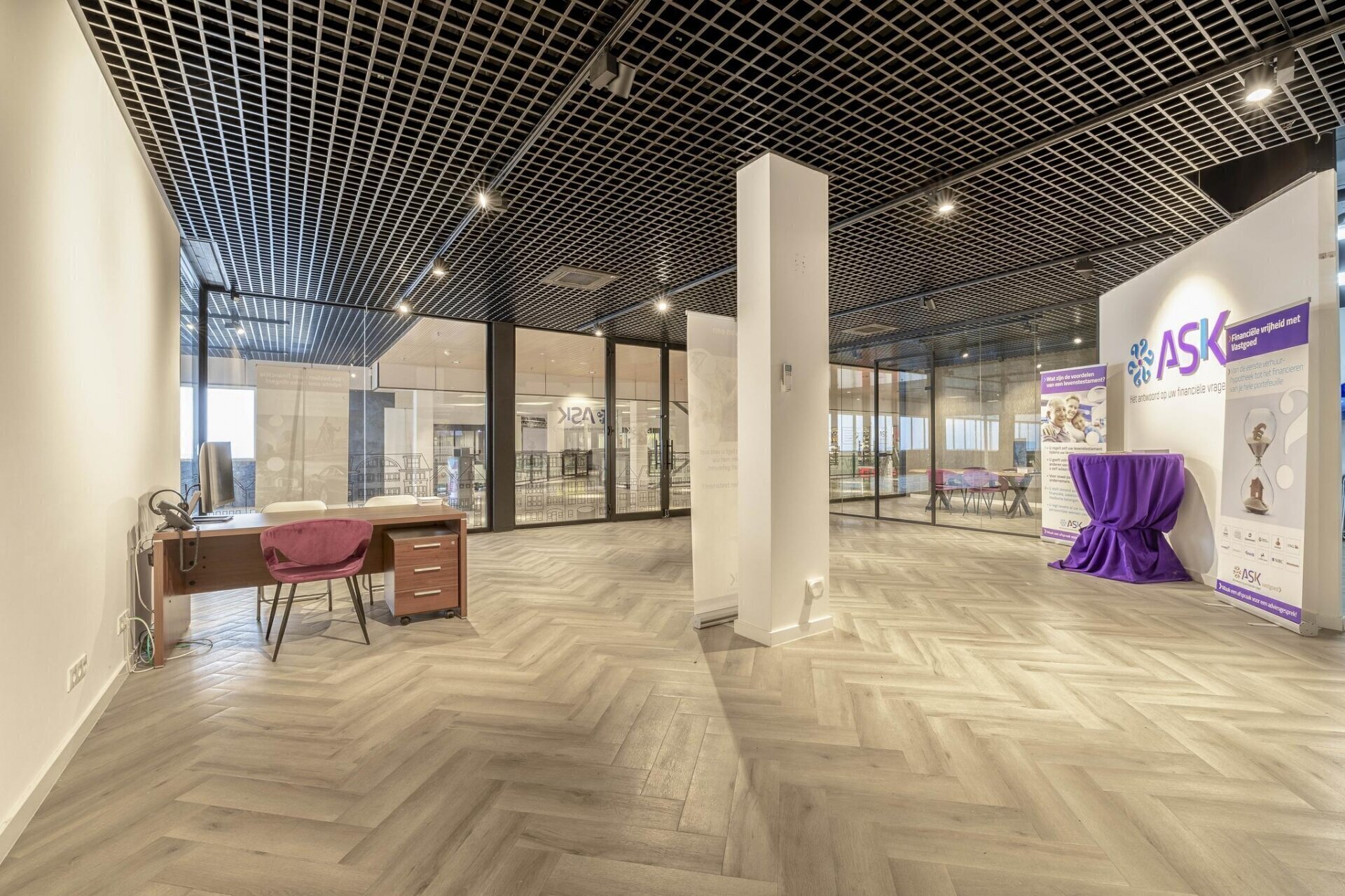 De commerciële ruimte is gelegen op de eerste verdieping. De ruimte is o.a. voorzien van zelfstandige nutsaansluitingen (elektra en water), airconditioning voor verwarmen en koelen, pantry, toiletruimte en verlichting. Door de raampartij aan de voorgevel valt royaal licht naar binnen.