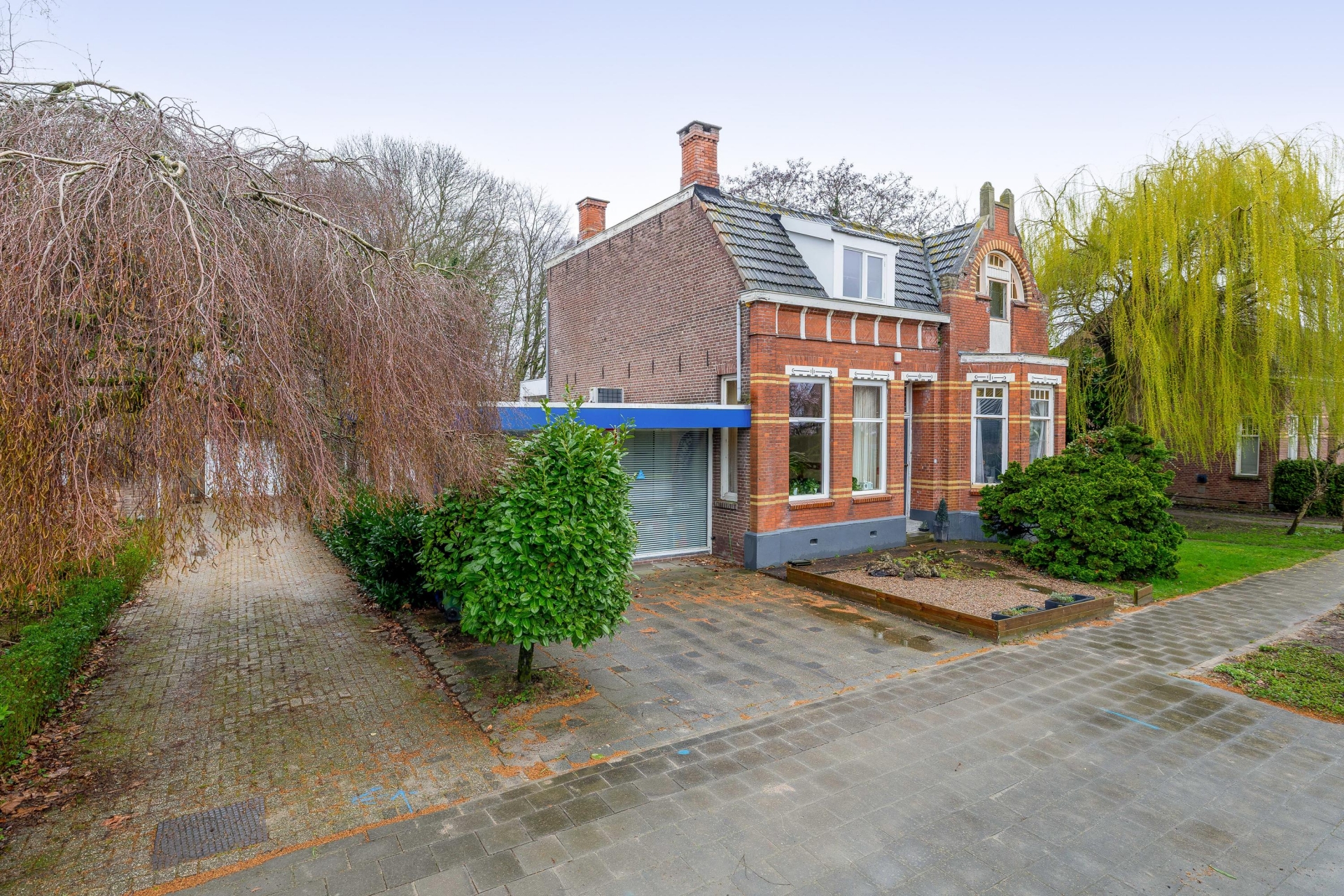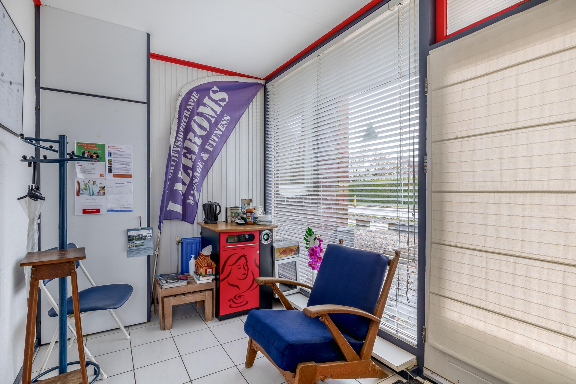 De grote raampartijen aan de voorzijde geven het object niet alleen een open uitstraling, maar zorgen ook voor goede zichtbaarheid vanaf de straat — ideaal voor een praktijk of dienstverlening waarbij herkenbaarheid belangrijk is.