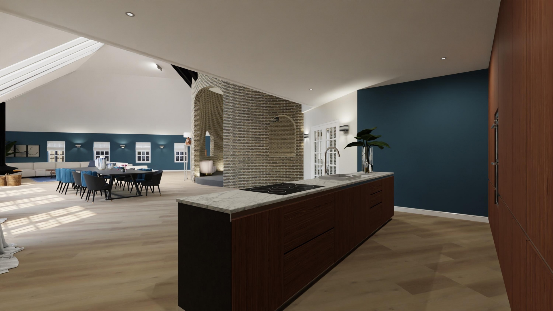 De linkervleugel heeft wel een plafond, in deze vleugel is de professionele keuken gebouwd, met daarachter een mooie kamer/serre. Vanuit alle ruimtes heeft u uitzicht op de Hollandsche IJssel.
