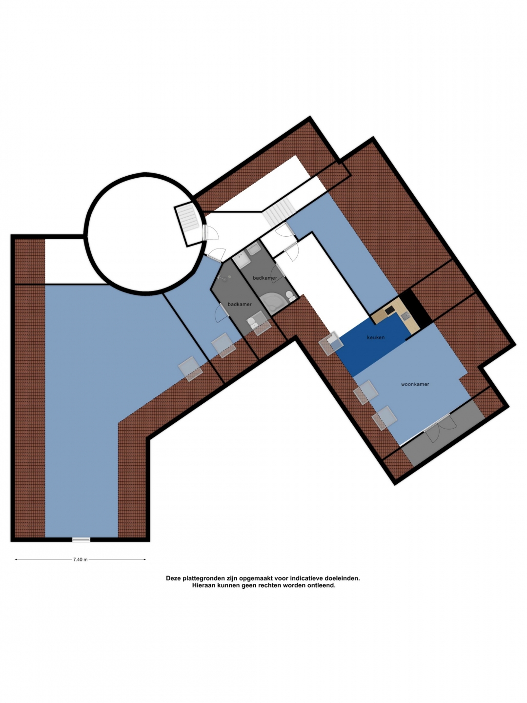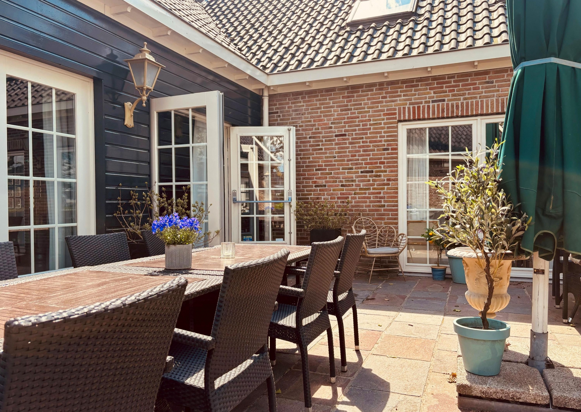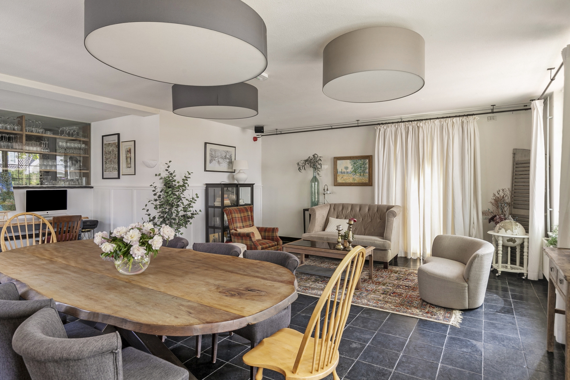 De rechtervleugel is een open ruimte waarbij u tot in de nok kunt kijken, wat een zeer ruimtelijk effect geeft mede door de vele raampartijen.