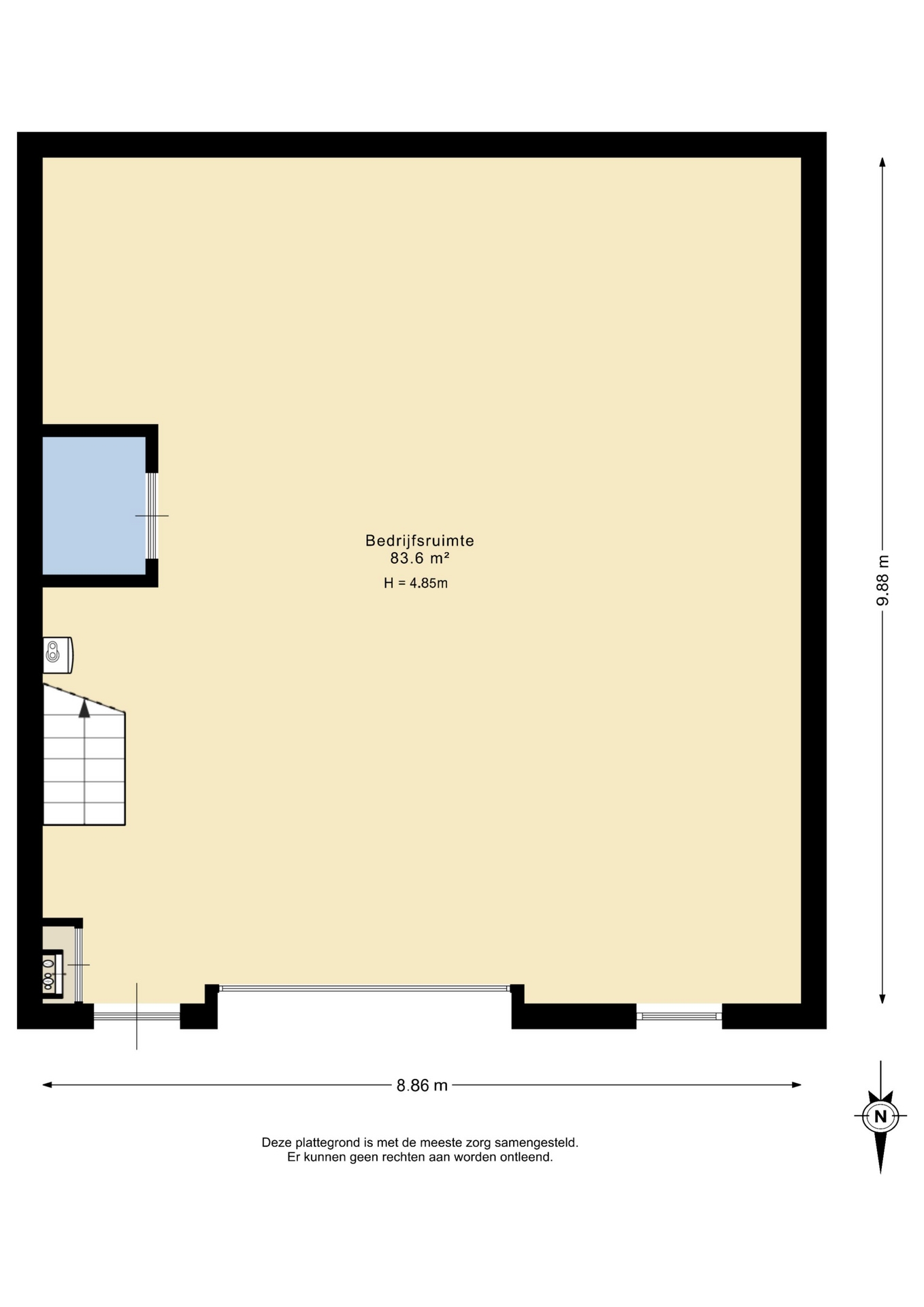 - vrije hoogte onder de verdiepingsvloer van ca. 4,6 meter;
