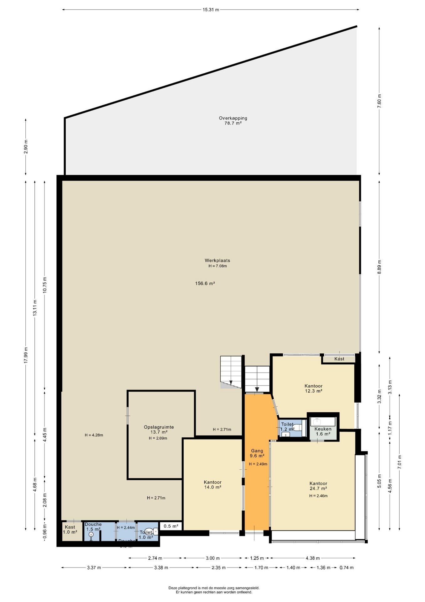 Het totale object is ca. 531 m² groot met een verhard buitenterrein van ca. 630 m².