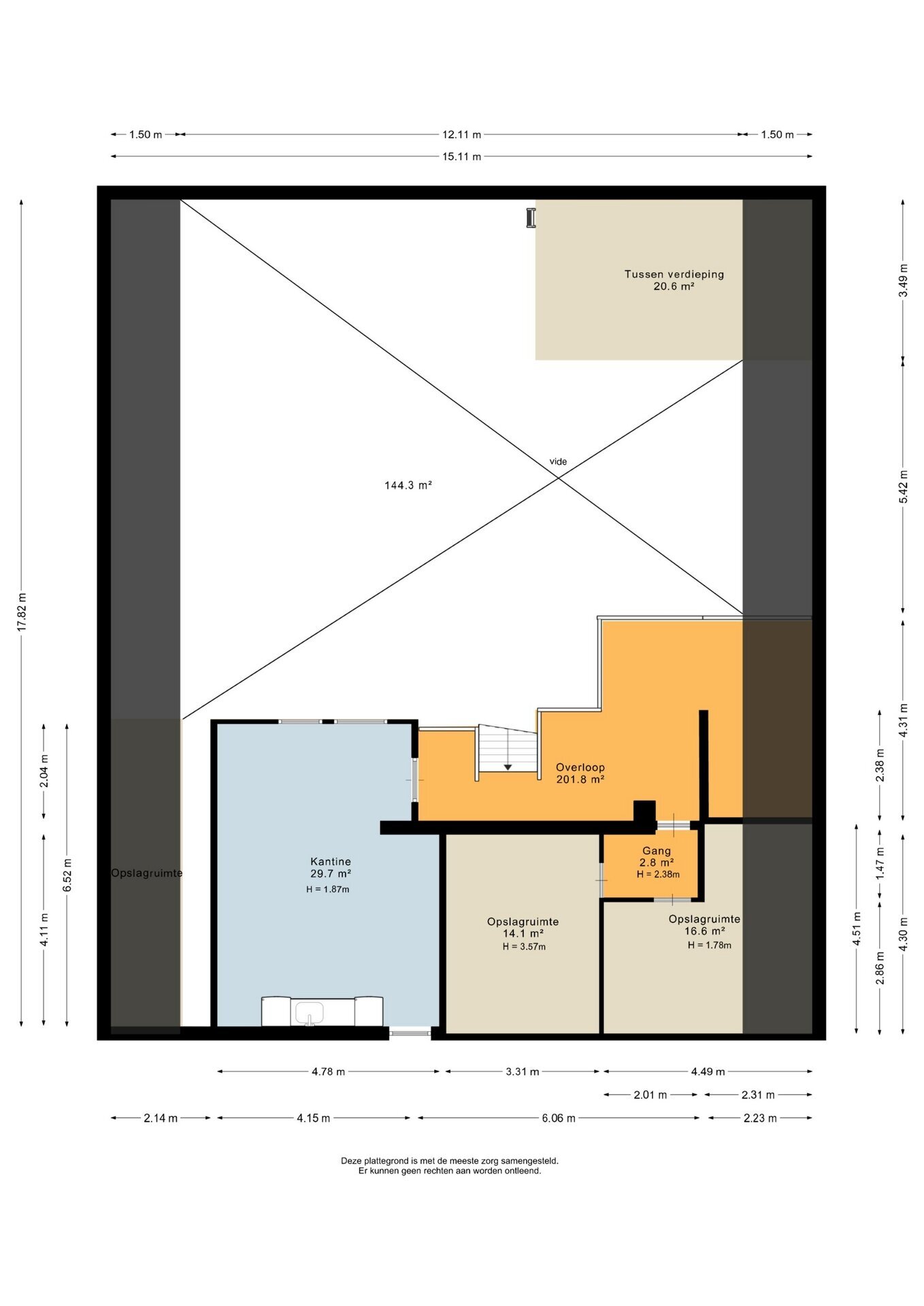 1e verdieping met kantine en magazijn: ca. 83 m²