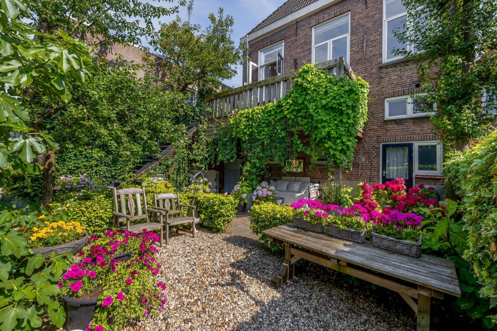 - Achtertuin van ca. 113 m² op noordwesten met achterom;