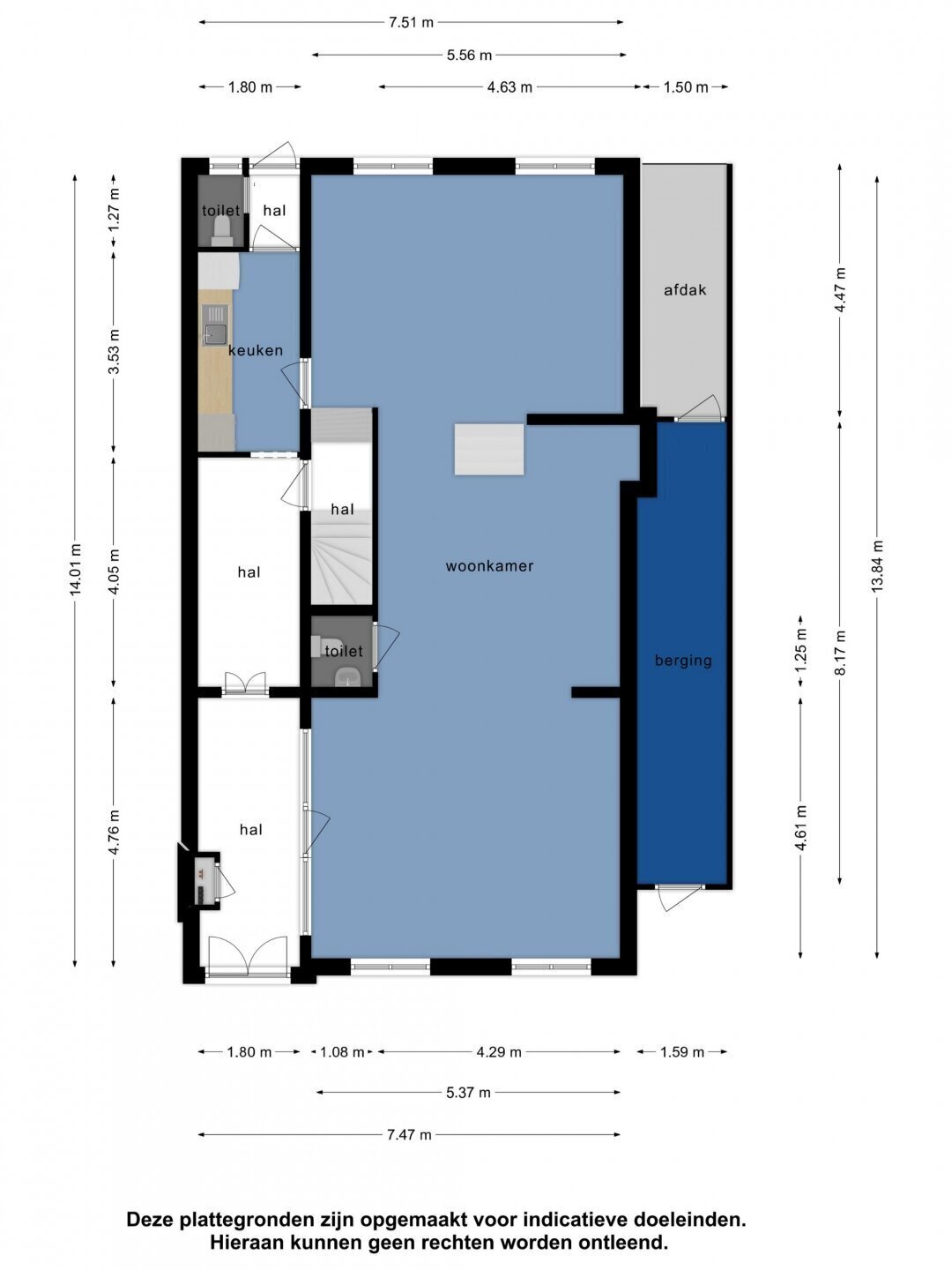 De voorzijde van het pand beschikt over een etalage en ruime open ruimte van circa 95 m², geschikt voor diverse bedrijfsactiviteiten. Aan de achterzijde bevindt zich een praktische keukenruimte, compleet met basisvoorzieningen.