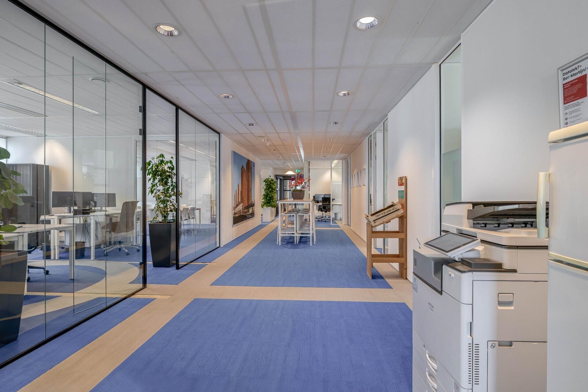 - moderne en complete kantoorinventaris, kantoorbeplanting etc. kan tegen nader overeen te komen condities van de huidige huurder overgenomen worden.