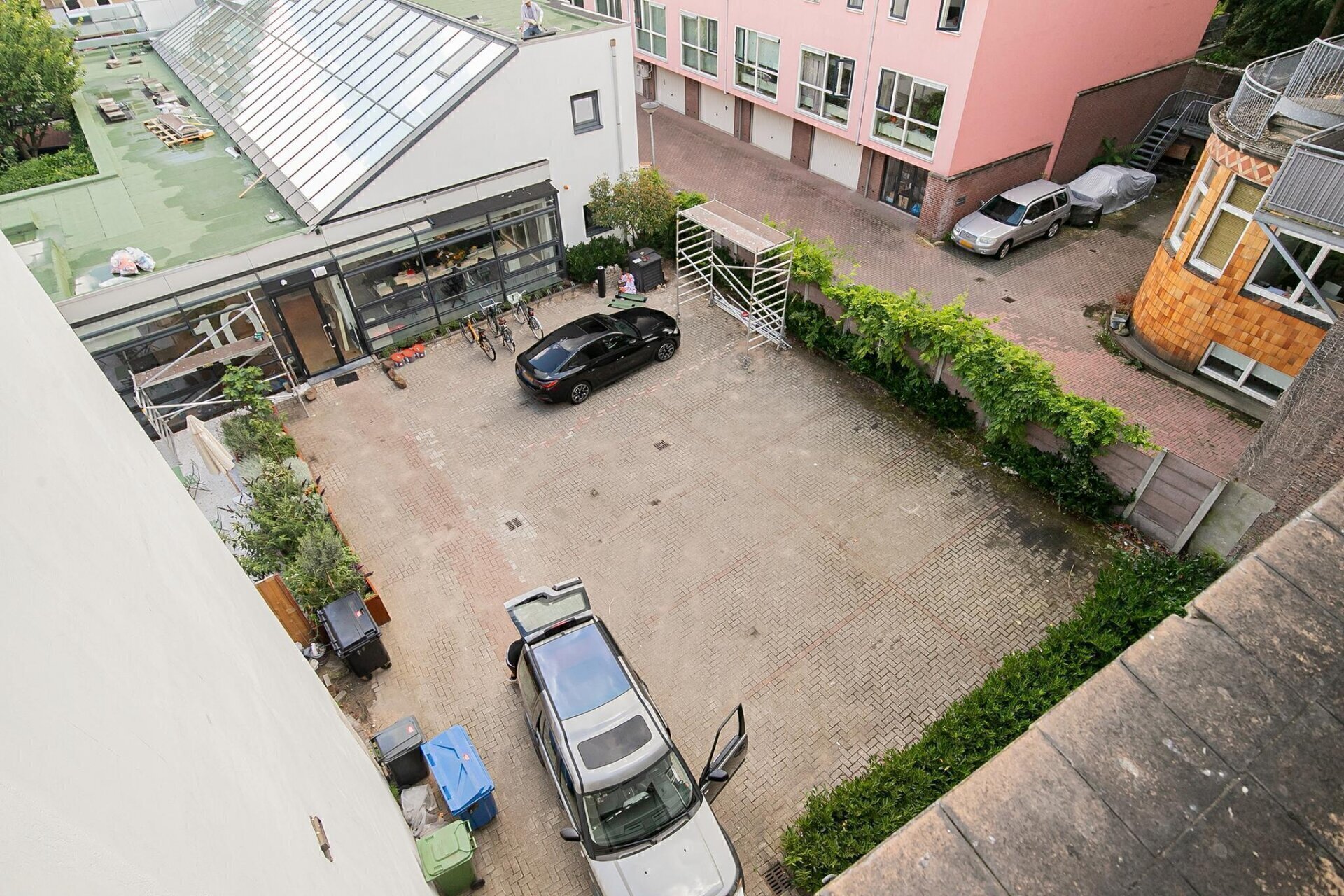 Op de foto op pagina 11 is zichtbaar hoe de auto's geparkeerd kunnen worden. Er is plaats voor twee auto's welke parallel aan de achtergevel achter elkaar geparkeerd kunnen worden. In de omgeving is het betaald parkeren.
