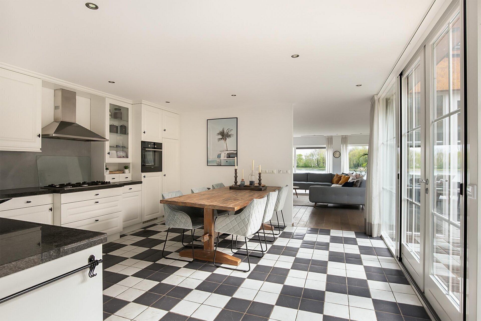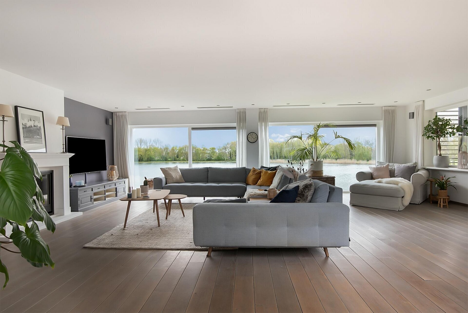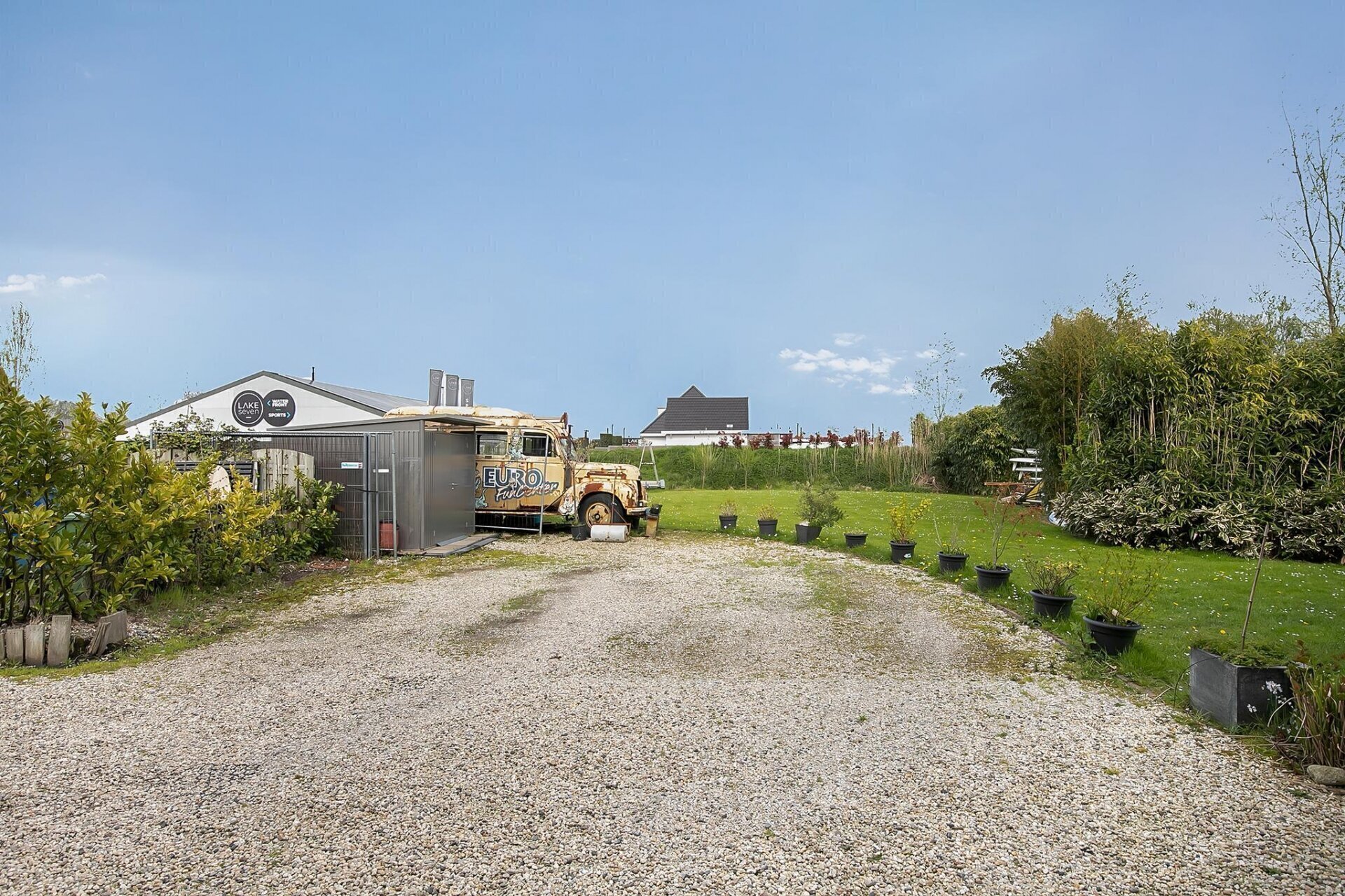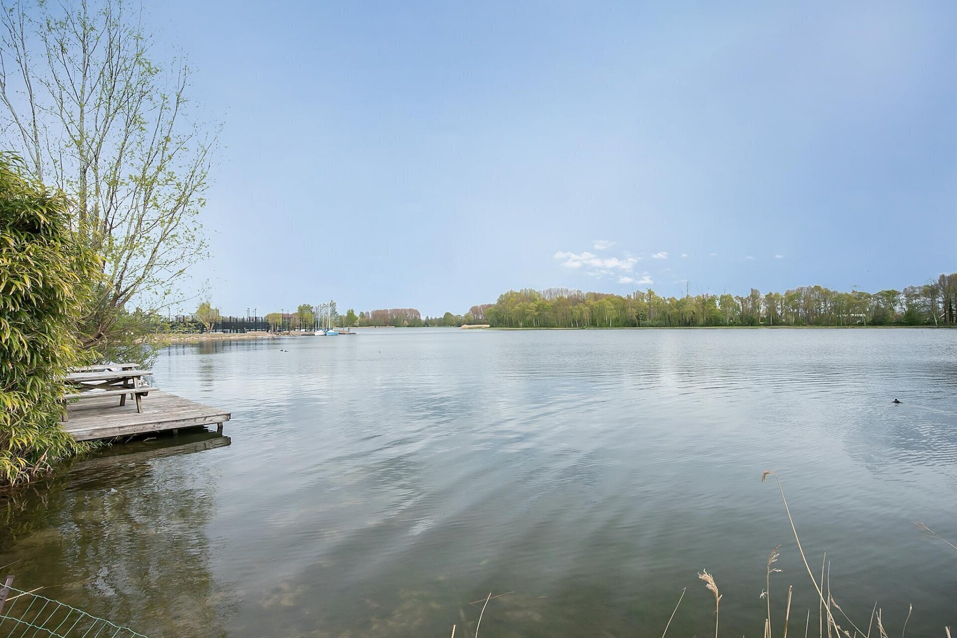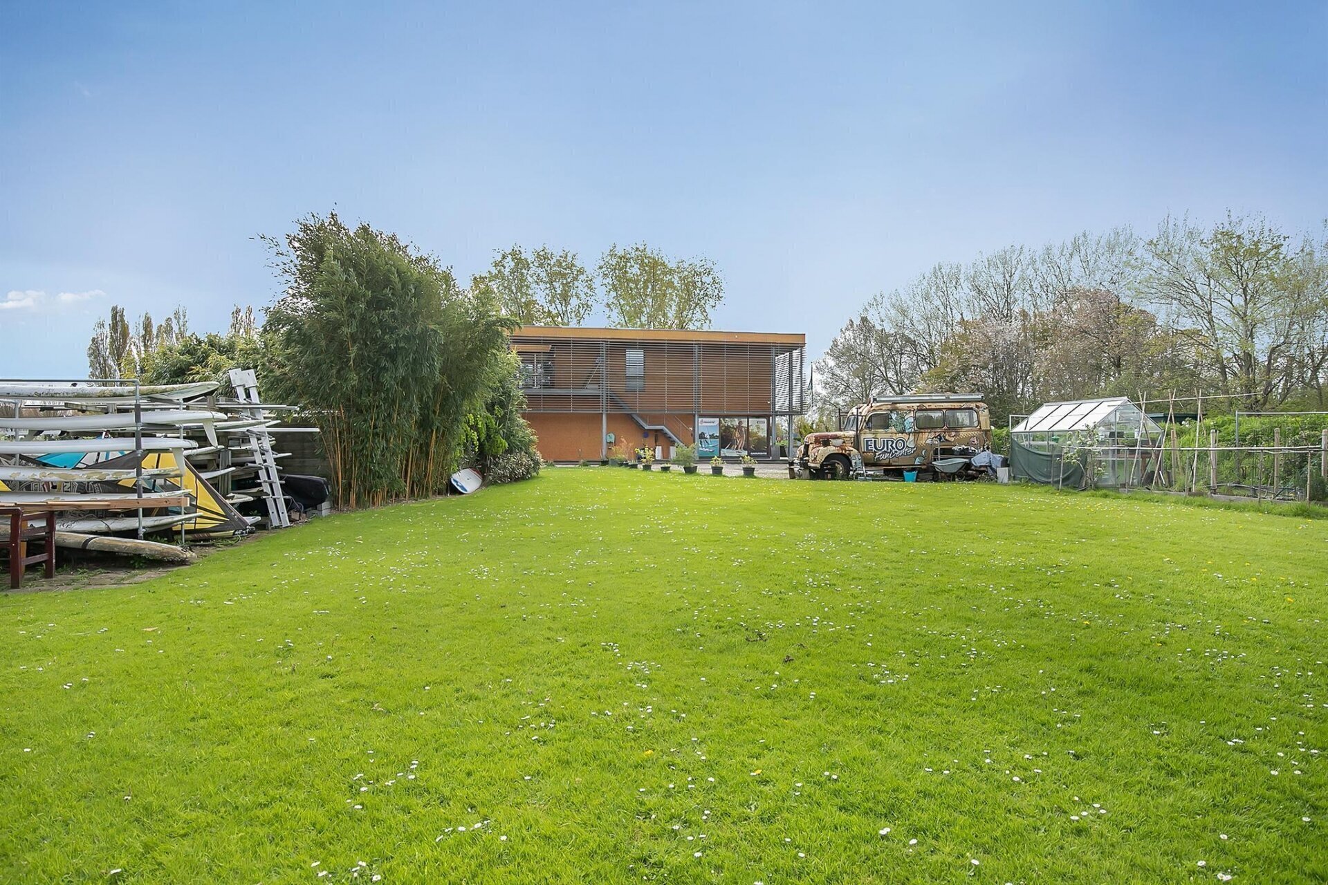 De hele kavel grenst aan het water, met een steiger en zelfs een stukje strand! Denkt u aan alle mogelijkheden van recreatie, sport en ontspanning die hier te realiseren zijn.