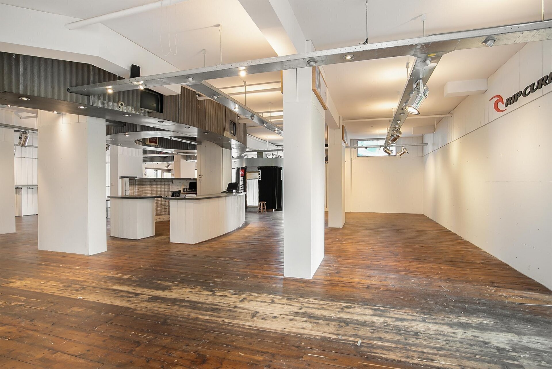 Strandweg 29 begane grond 383 m². Thans is het een mooie lichte ruimte met twee kantoren en magazijn.