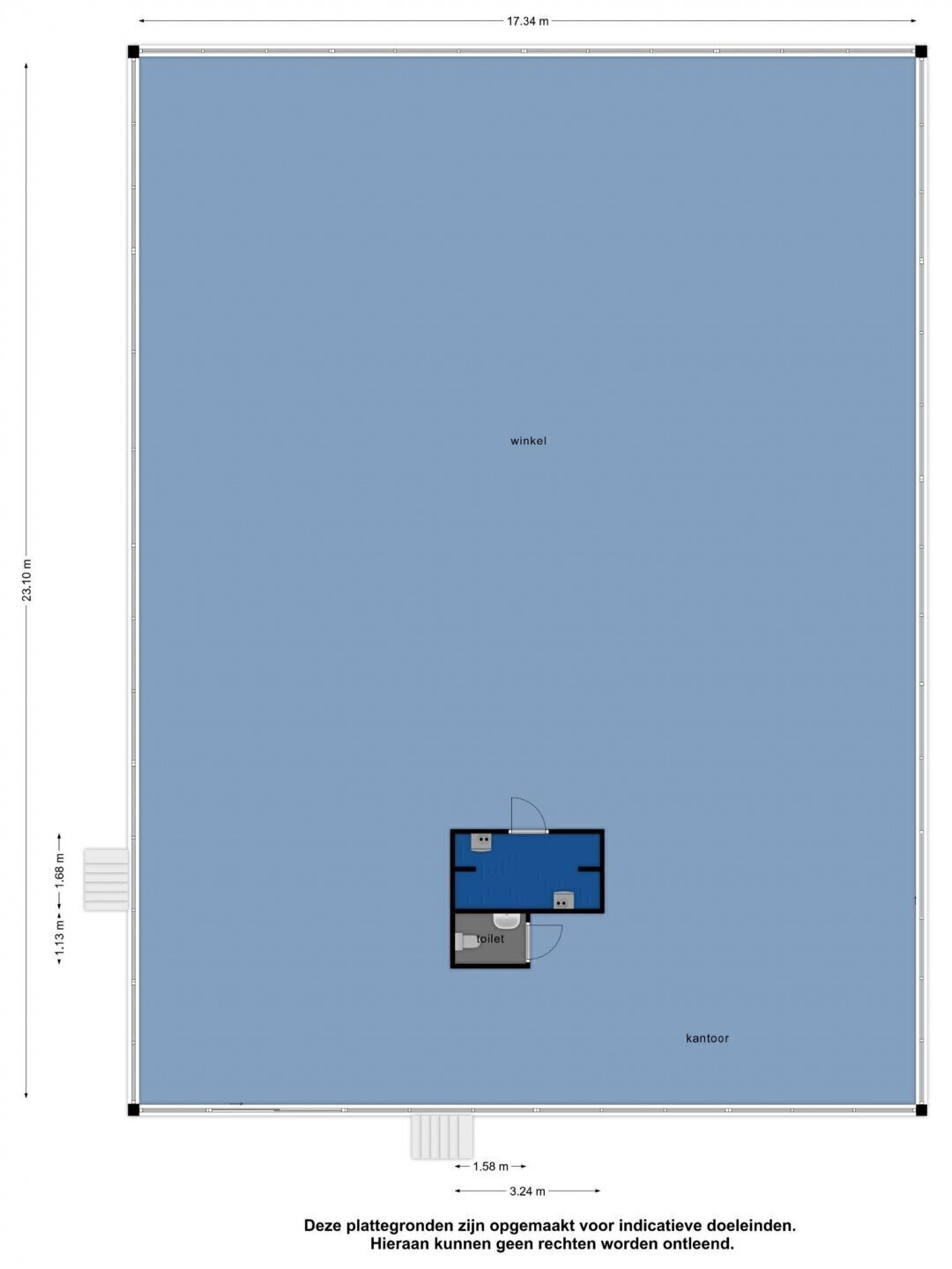 - Oppervlakte winkel ca. 725 m2