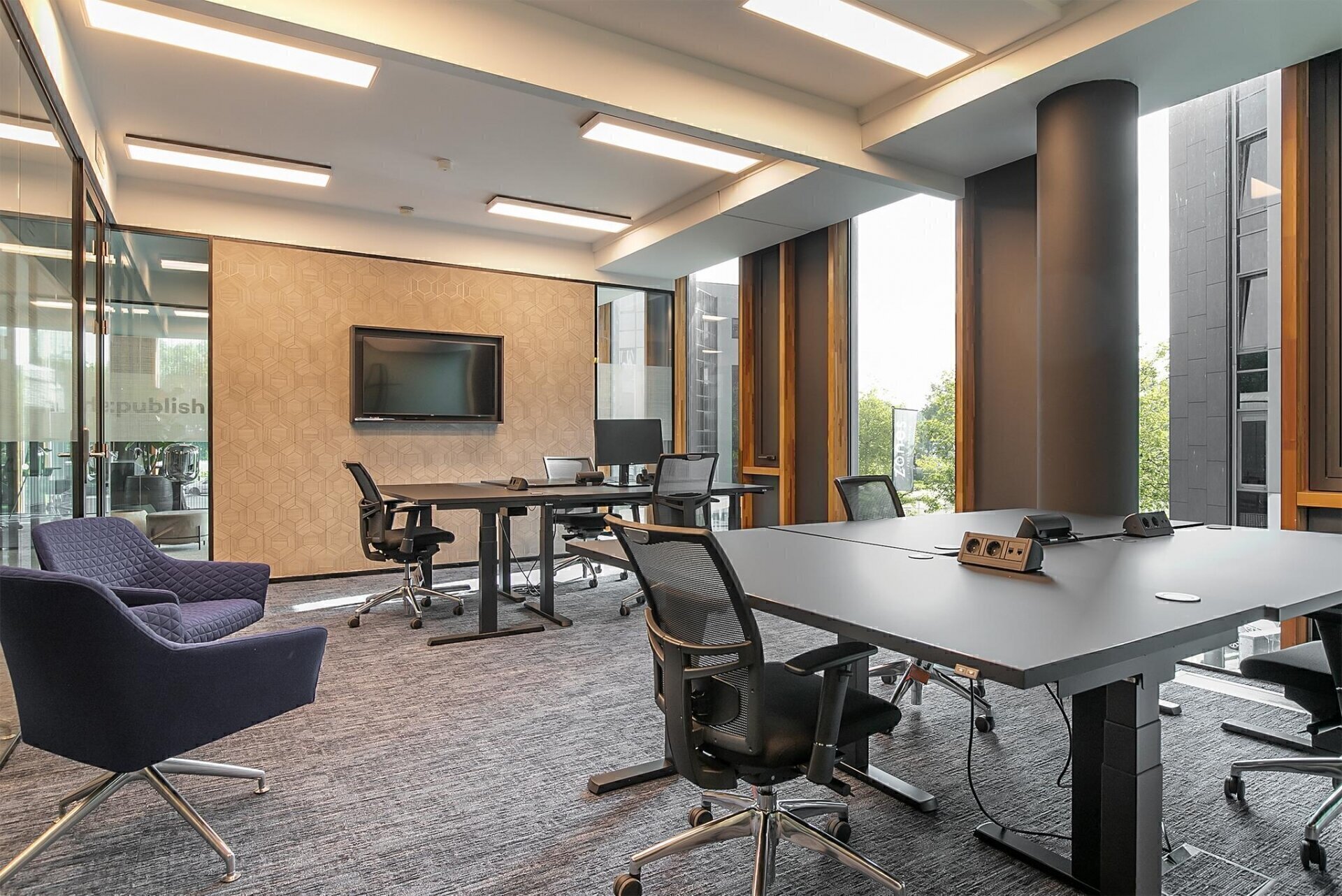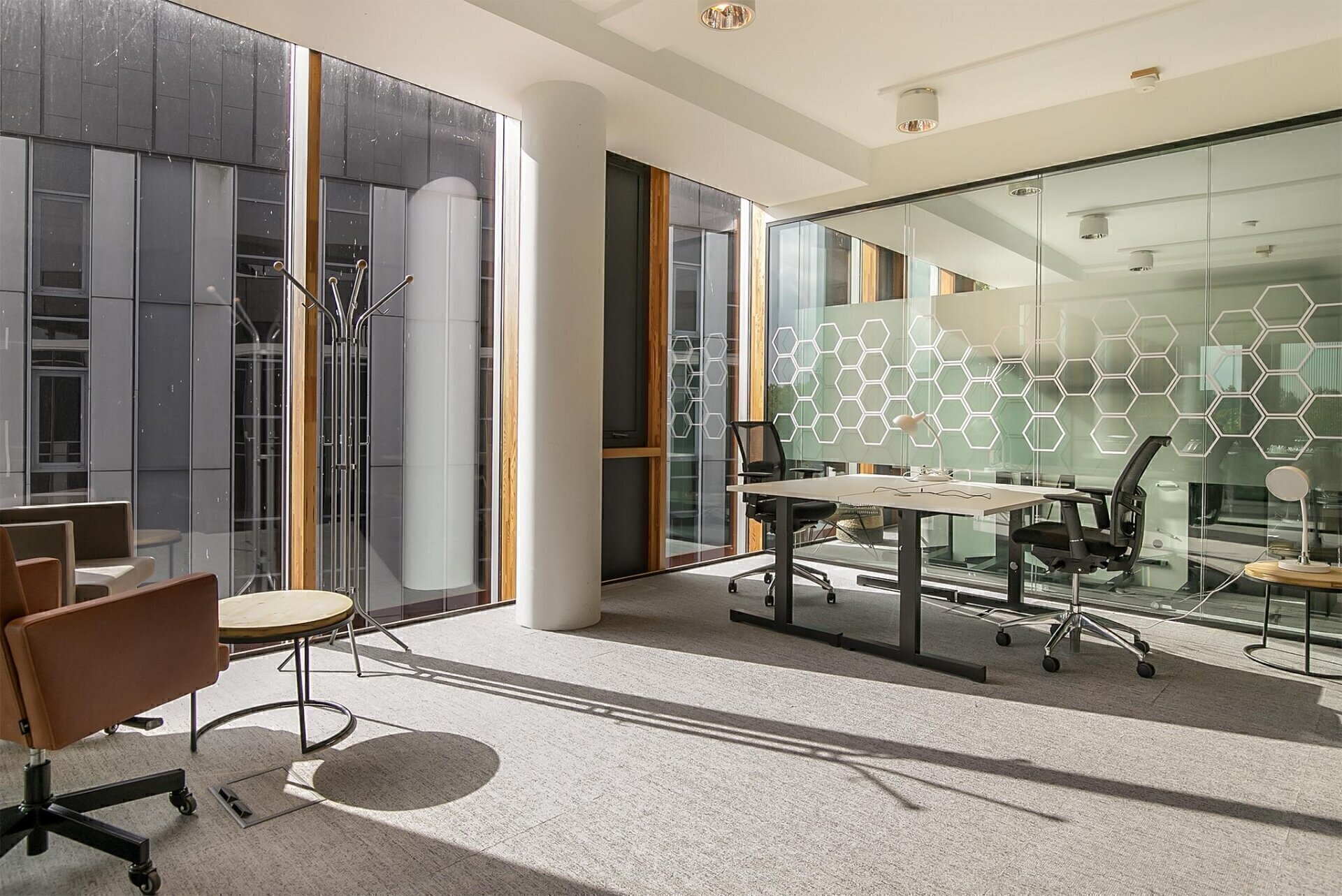 Opleveringsniveau: de begane grond is ingericht met een receptie en kleine ontvangstlobby. Op de begane grond worden kantoorruimtes ingericht met een kant en klaar opleveringsniveau. Bezoek kan, indien gewenst, opgevangen worden of worden doorverwezen. Additionele receptiediensten (zoals telefoon-/postservice) zijn in overleg af te nemen. De kern van het gebouw biedt ruimte aan een trappenhuis met lift en 2 separate sanitaire groepen. Trap en lift zijn luxe afgewerkt met bamboe treden en balustrades van glas. De kern loopt door tot in de ondergrondse parkeergarage, waardoor het kantoorpand via de parkeergarage direct bereikbaar is.