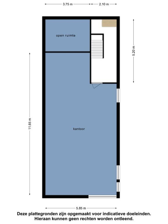 Deze kantoorruimte biedt genoeg plaats om 8 werkplekken te realiseren. Ook is er een kleine keuken met kookplaat, koelkast etc. Aan drie zijden zijn er ramen, er is airco en mechanische ventilatie, naast een traditionele CV installatie. Een fijne werkplek met veel lichtinval.