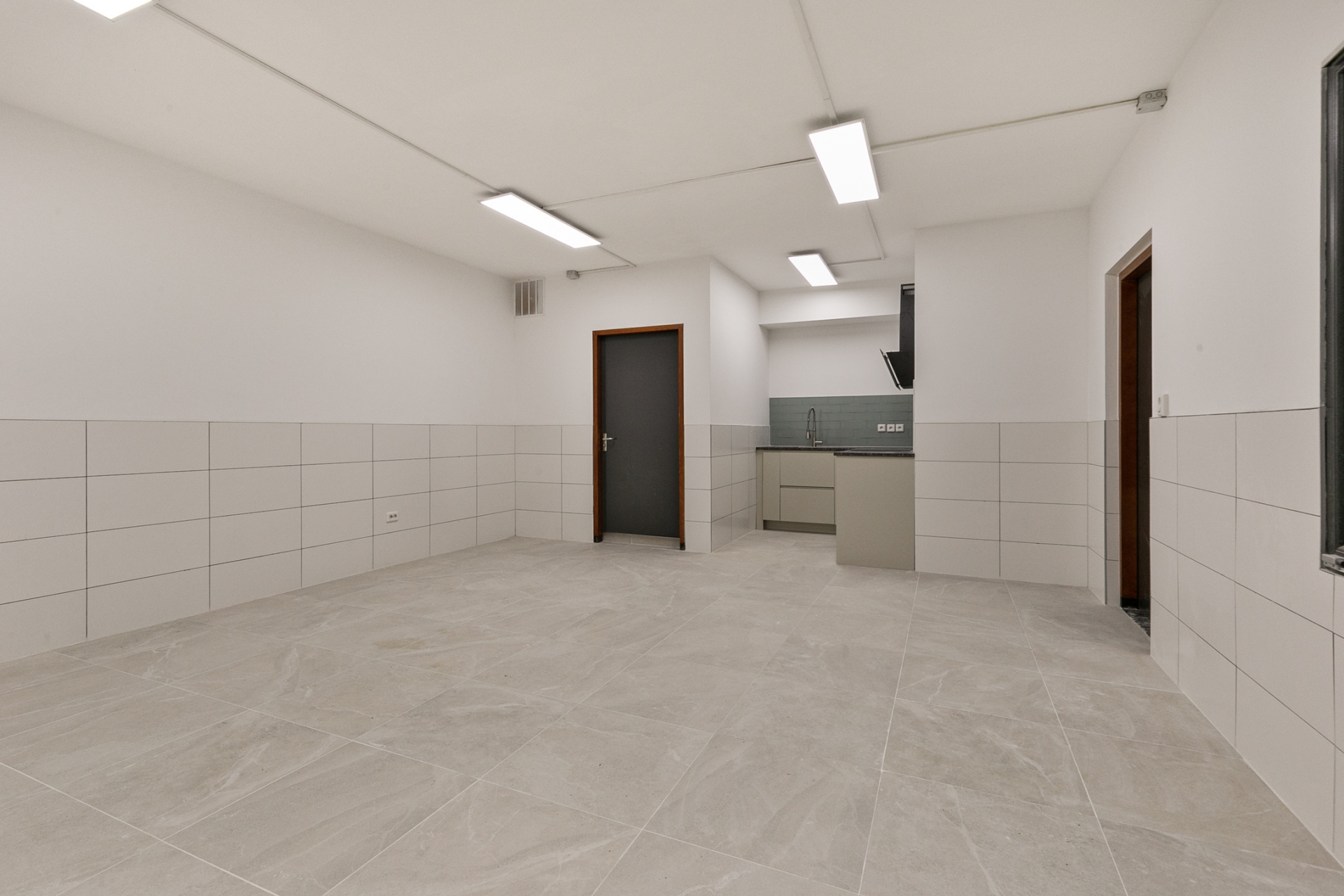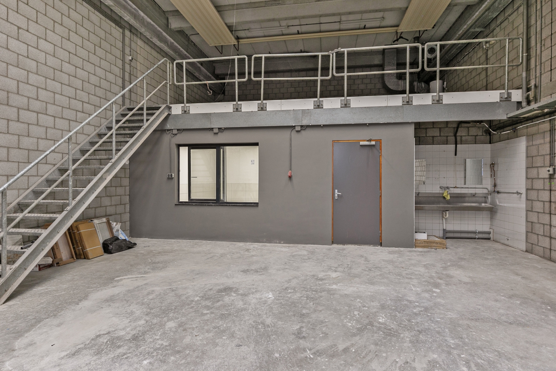 Praktisch ingerichte bedrijfsruimte voorzien van een gekeurde bovenloopkraan met een draagvermogen van maximaal 1.000 kg, met twee eigen parkeerplaatsen voor de deur op afgesloten terrein.