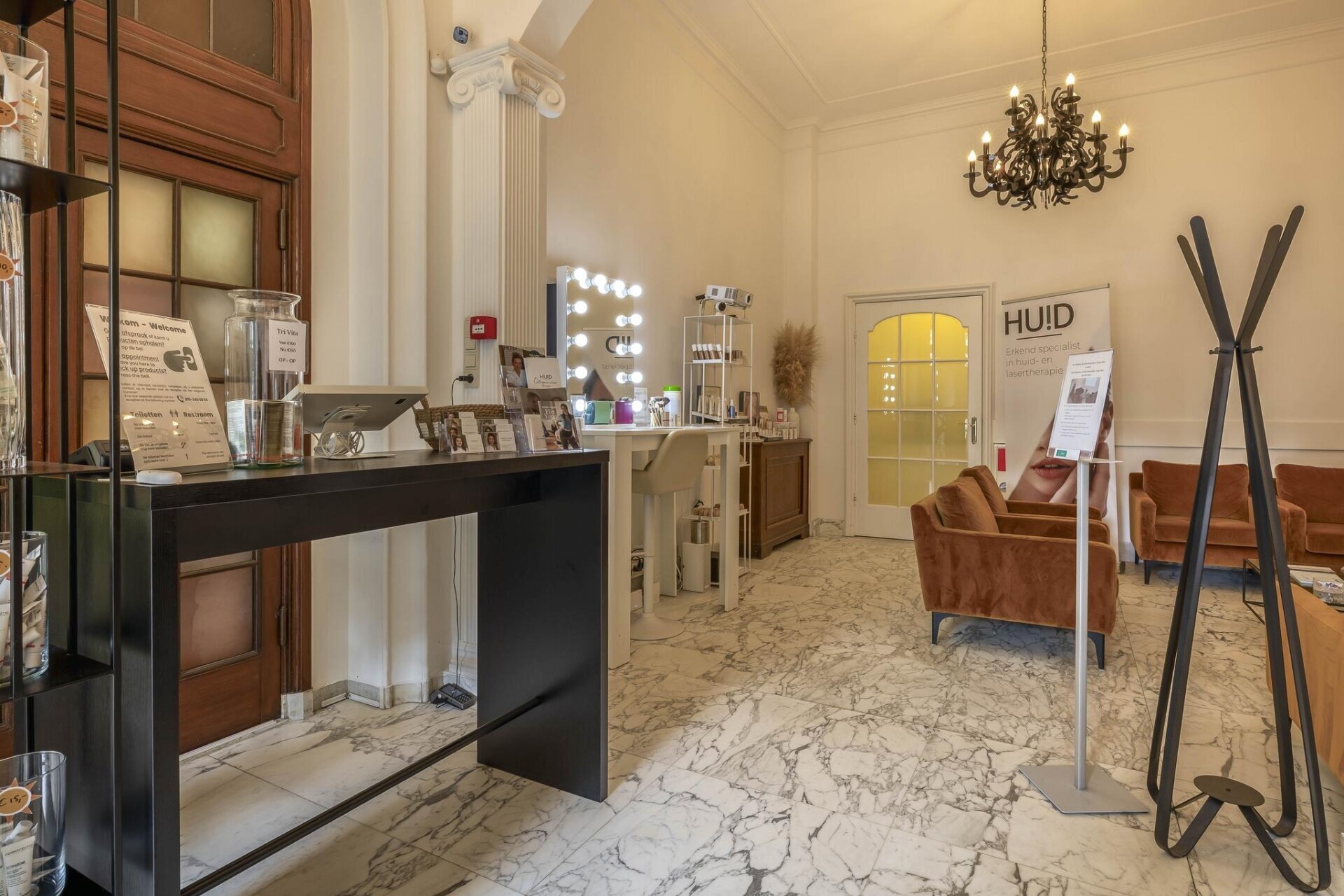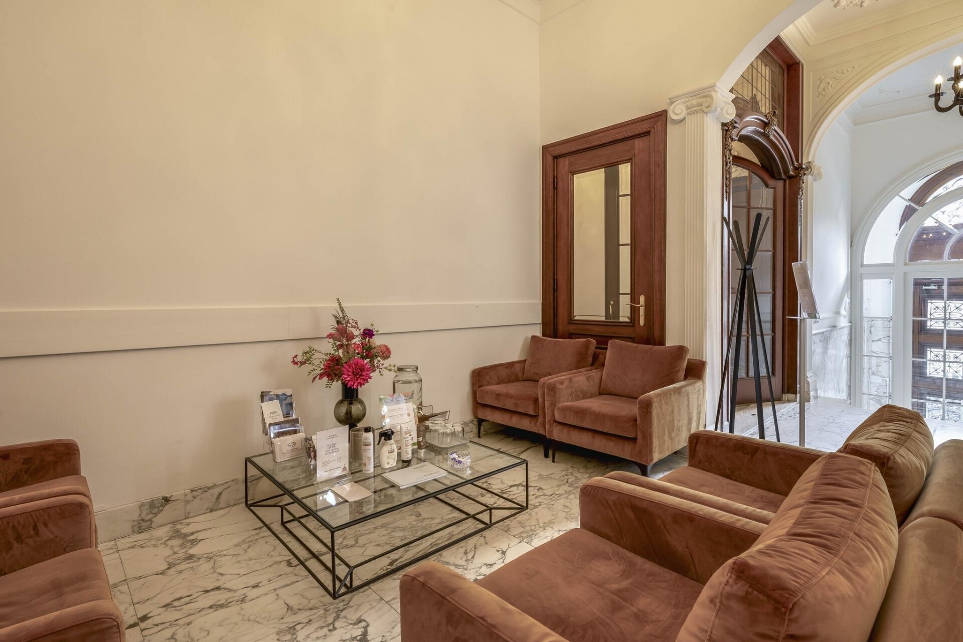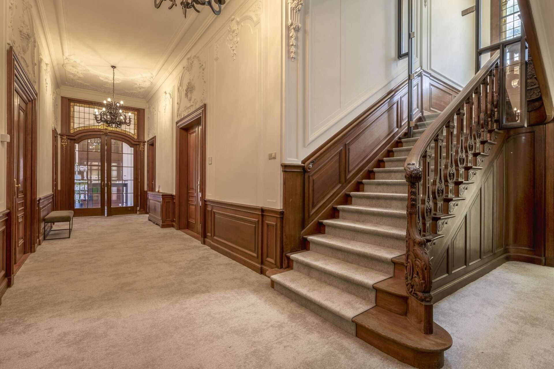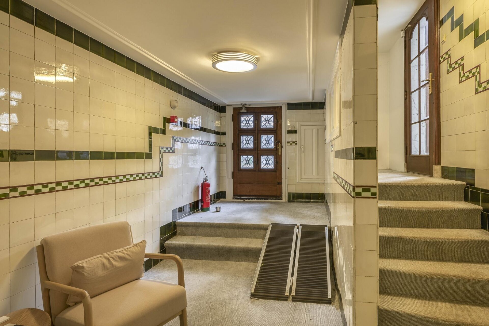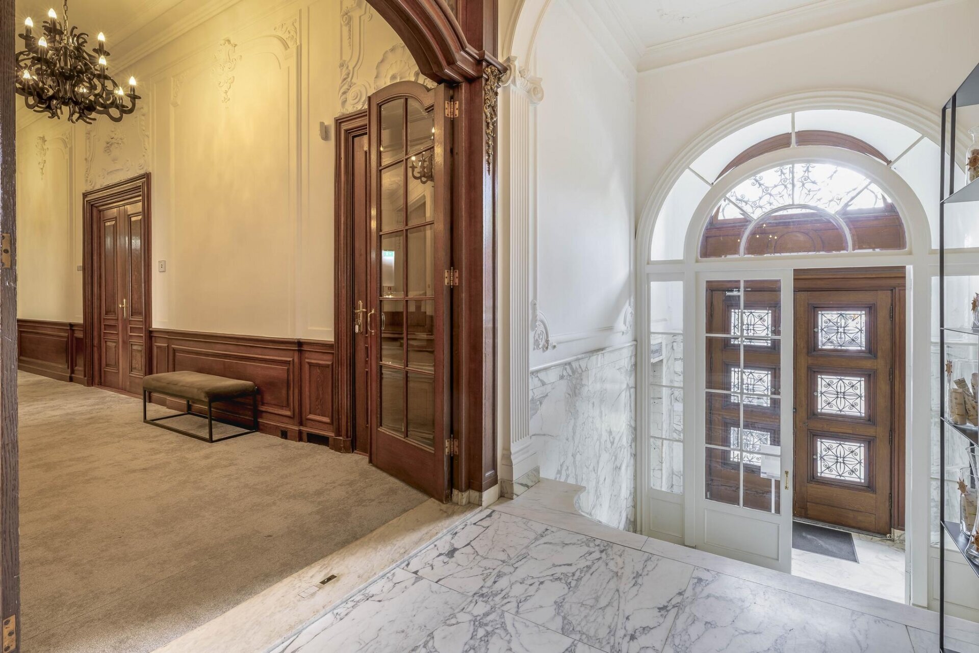 – representatieve entree met marmeren vloer en glas in lood;