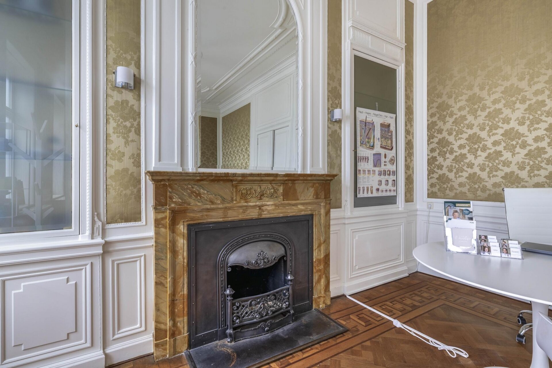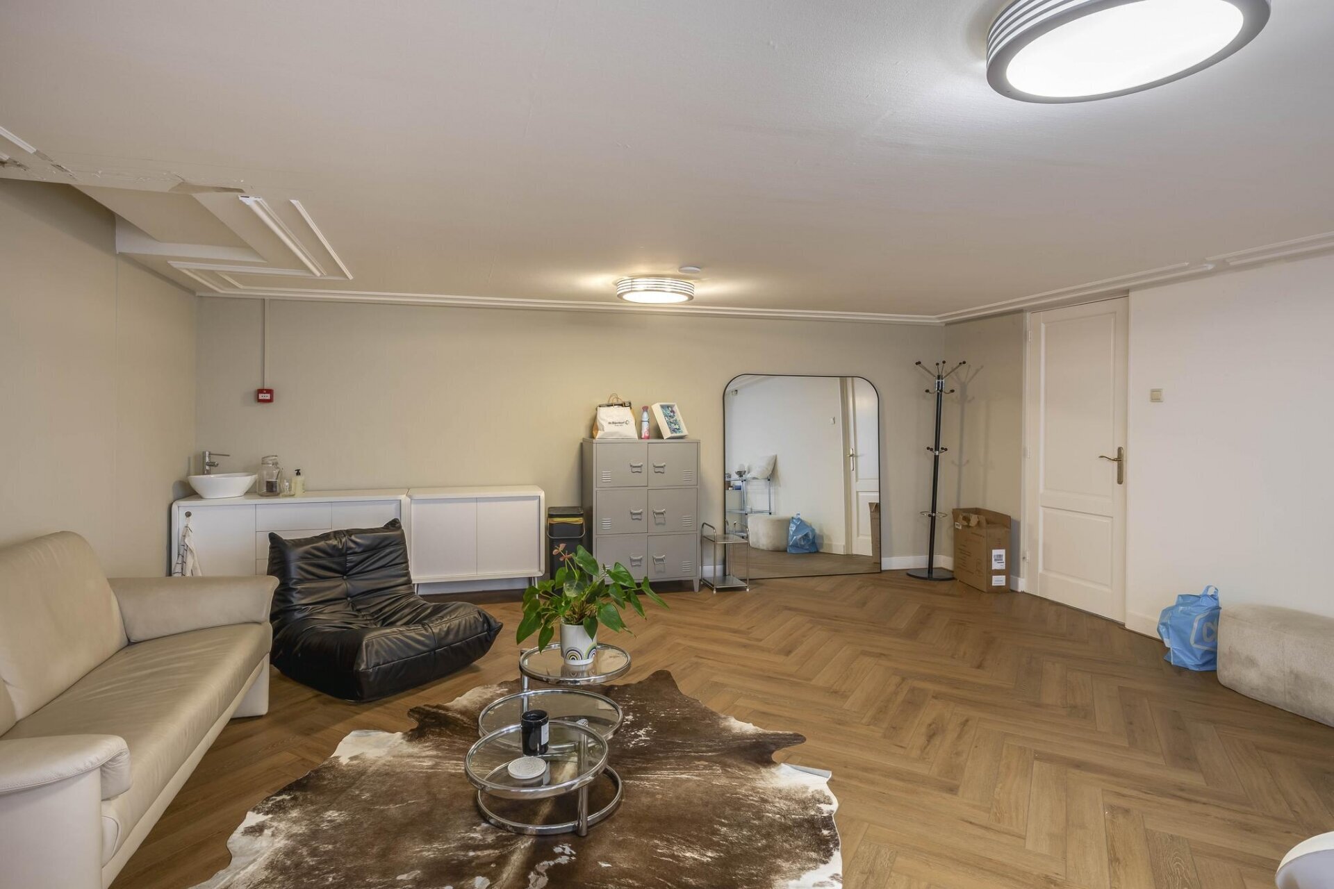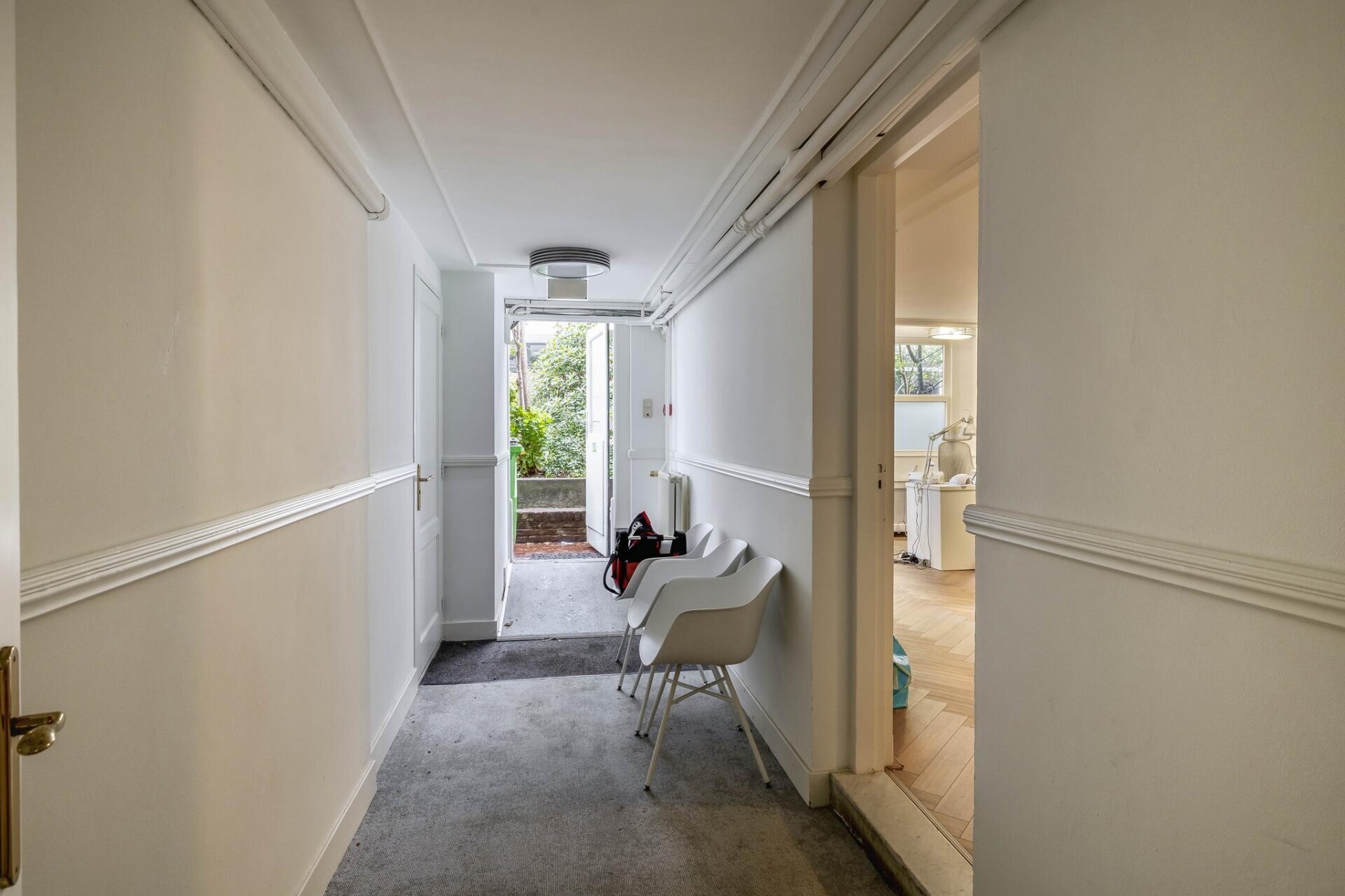 – aanwezige vloerbedekking (deels tapijt en deels parket);