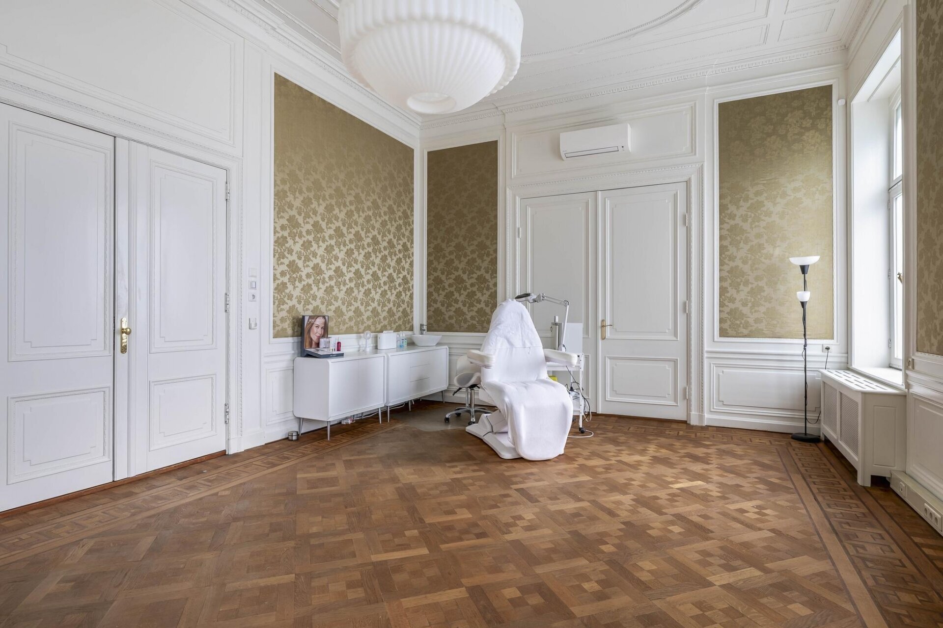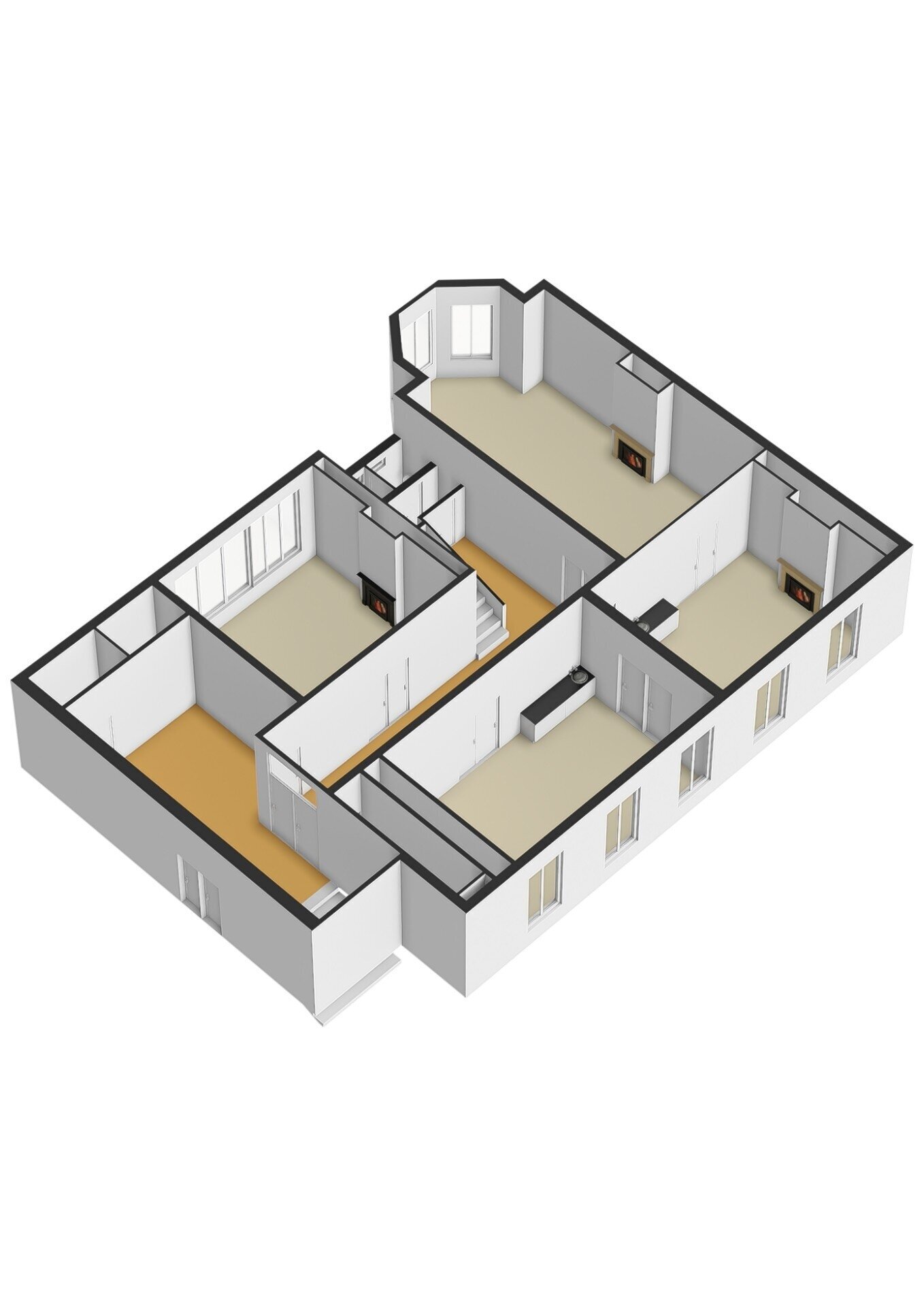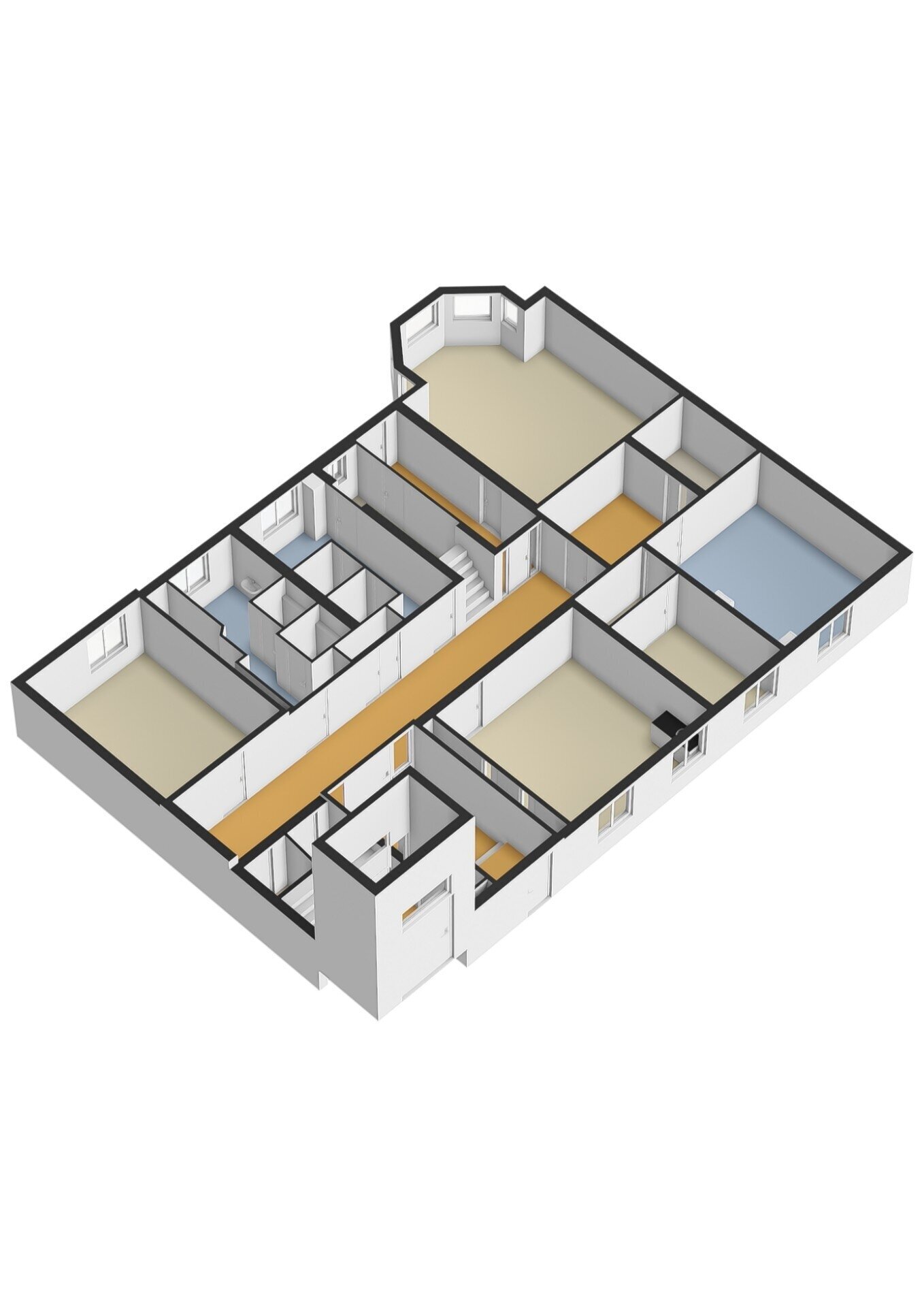– aanwezige vloerbedekking (deels tapijt en deels parket);