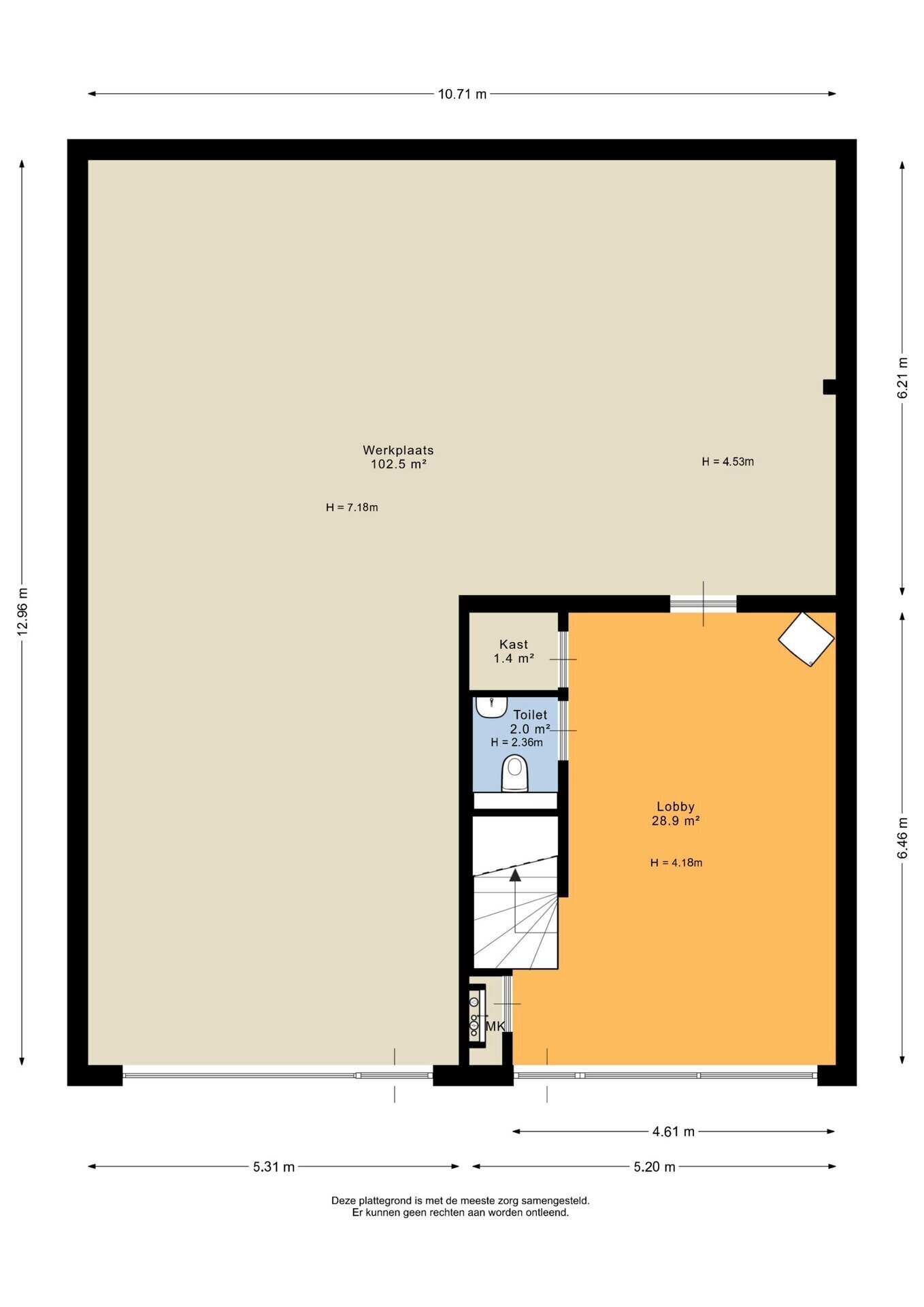 De bedrijfsruimte bestaat uit: