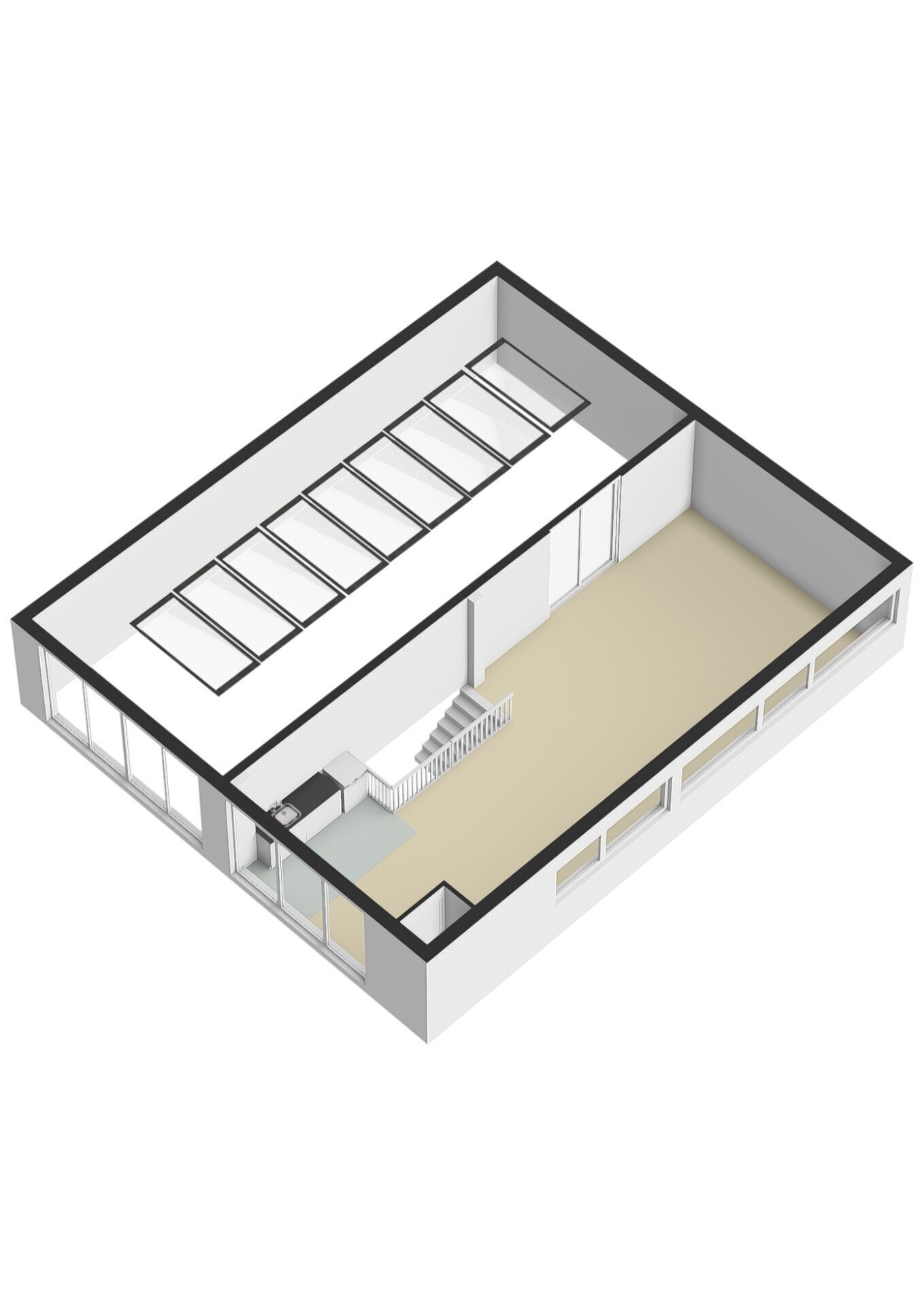 Er is een mogelijkheid om de verdiepingsvloer volledig door te leggen, waardoor er aanzienlijk meer vloeroppervlakte wordt gecreëerd.