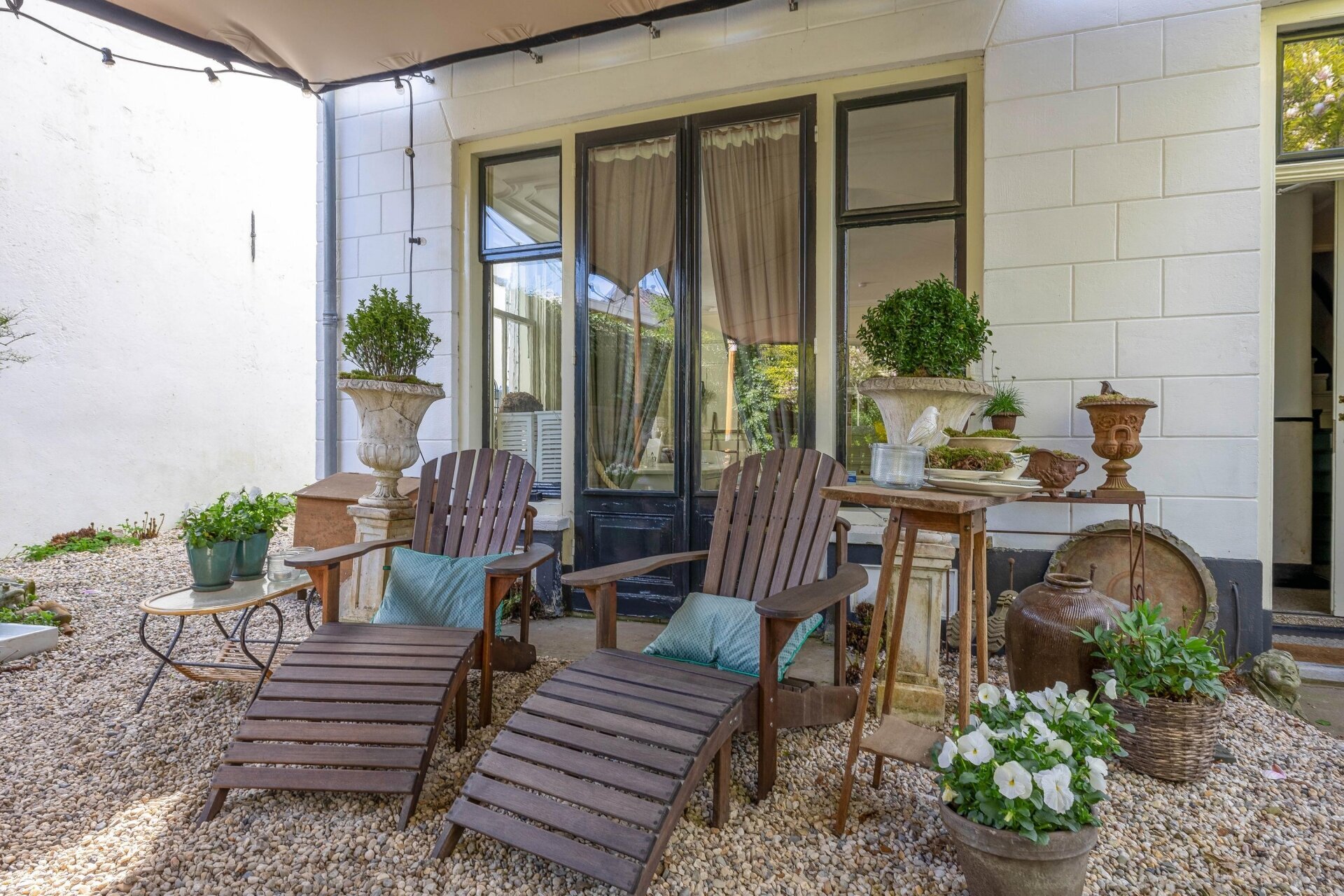 De ommuurde tuin is een oase van rust en harmonie, helemaal in lijn met de grandeur van het huis. Karaktervolle kastanjebomen, kronkelende grindpaden, een vijver en meerdere terrassen zorgen voor een unieke beleving. Achter in de tuin staat een Finse cottage met open haard — een heerlijke plek om te ontspannen of gasten te ontvangen. De tuin heeft bovendien een praktische zijuitgang naar naastgelegen parkeerplaatsen en het voetpad naar winkels en scholen.