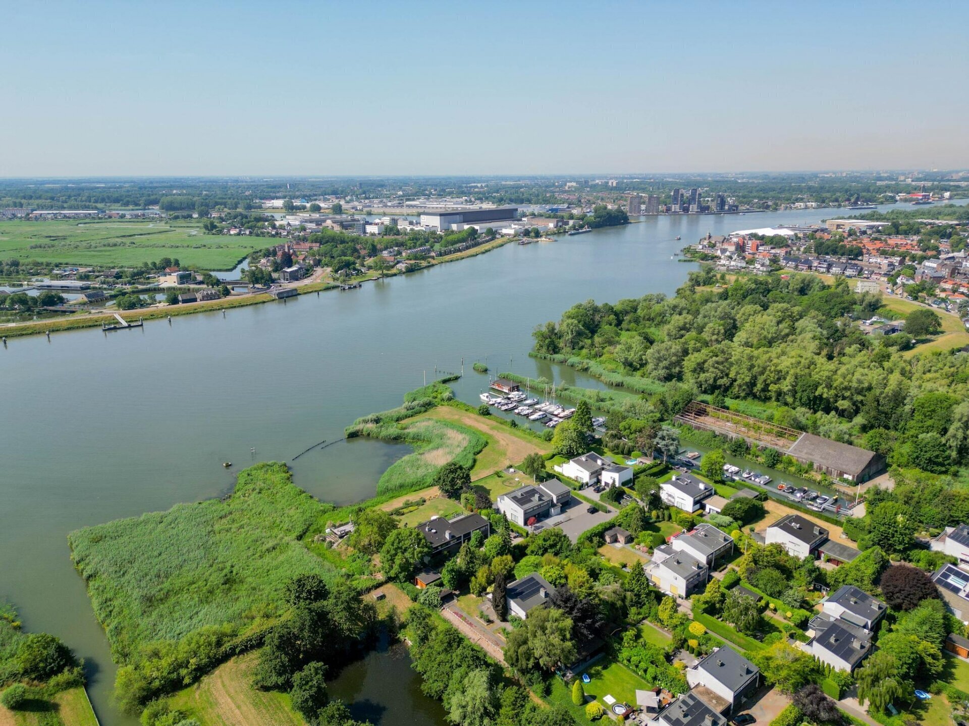 The lush garden offers plenty of opportunities for gardening enthusiasts and is equally perfect for those who just want to relax in peace and quiet. Set within an exclusive, small-scale residential park outside the dike, the location provides a unique sense of privacy, minimal traffic, and freedom. From the expansive rooftop terrace on the first floor, you can enjoy stunning views over the River Lek and the iconic windmills of Kinderdijk.