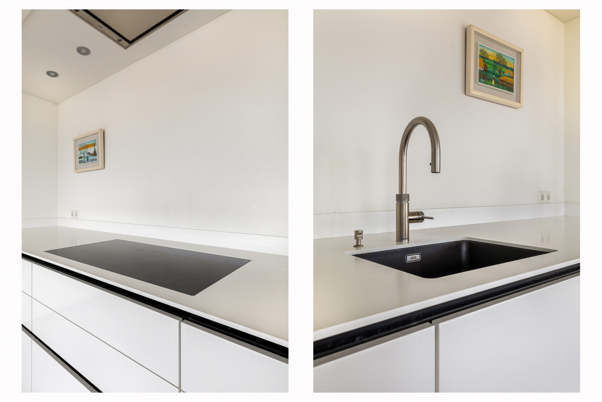 Aansluitend bevindt zich de zeer royale leefkeuken, een plek die uitnodigt tot lange diners en gezellige momenten. De Siematic keuken is strak, tijdloos en van alle gemakken voorzien. Met hoogwaardige Gaggenau apparatuur, veel werkruimte en een praktische indeling is dit een keuken waar koken vanzelf gaat. Of je nu uitgebreid wilt uitpakken of juist comfortabel dagelijks gebruik zoekt: hier zit je goed.
