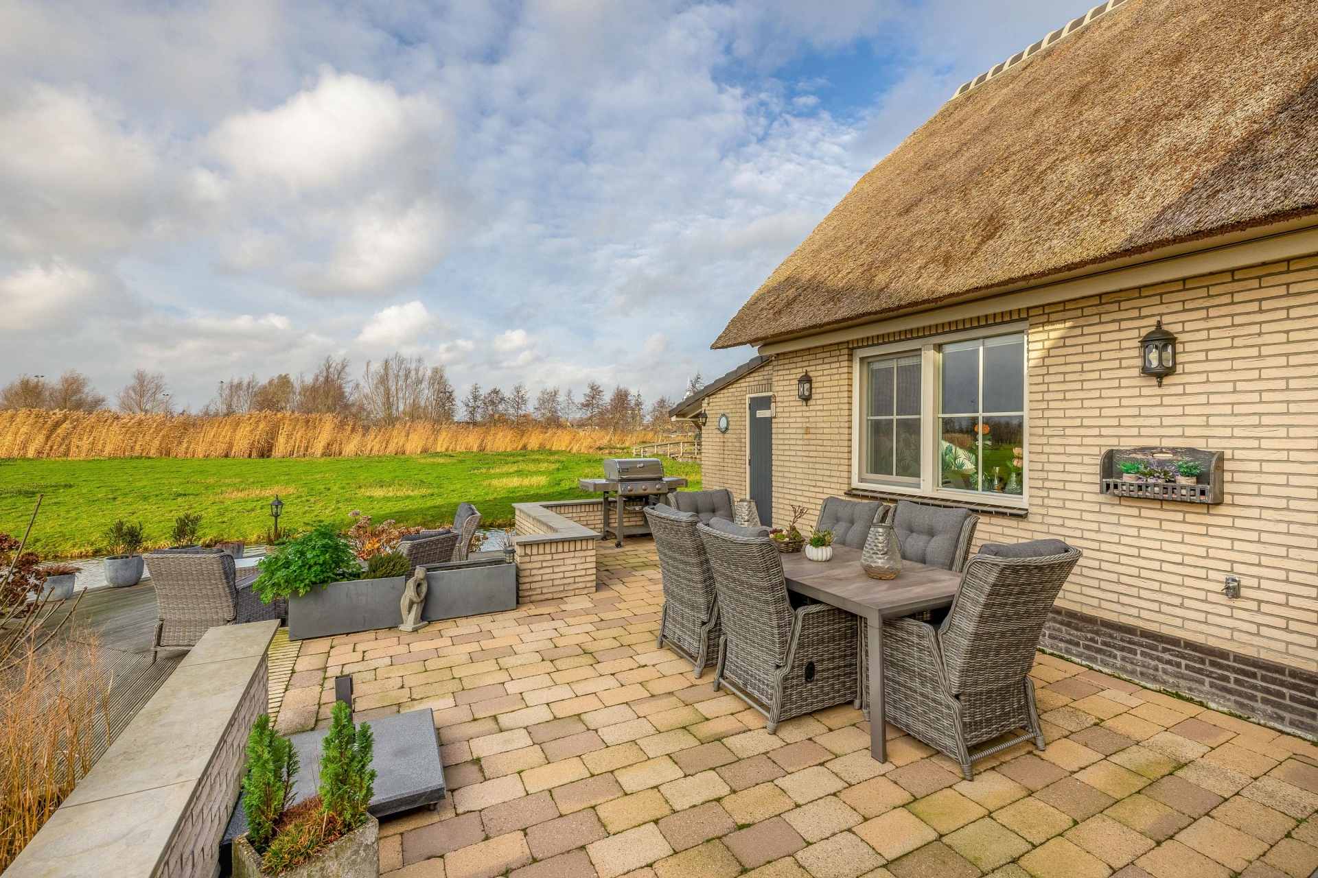 De tuin is sfeervol en met zorg aangelegd. Aan de achterzijde bevindt zich een groot onderheid terras, ideaal voor een eettafel of loungeset. In 2024 is hier een nieuw houten vlonderterras geplaatst direct aan het water, waar je kunt genieten van volledige privacy en schitterend uitzicht over de landerijen. Aan de voorzijde bevindt zich een brug over het water, die leidt naar de oprit met plek voor meerdere auto’s. De praktische berging is uitstekend geschikt voor het stallen van fietsen of motor en is te bereiken vanaf tuin en parkeerplaats. Aan de voorzijde van de woning is er een laadaansluiting aanwezig voor het laden van een elektrische auto.