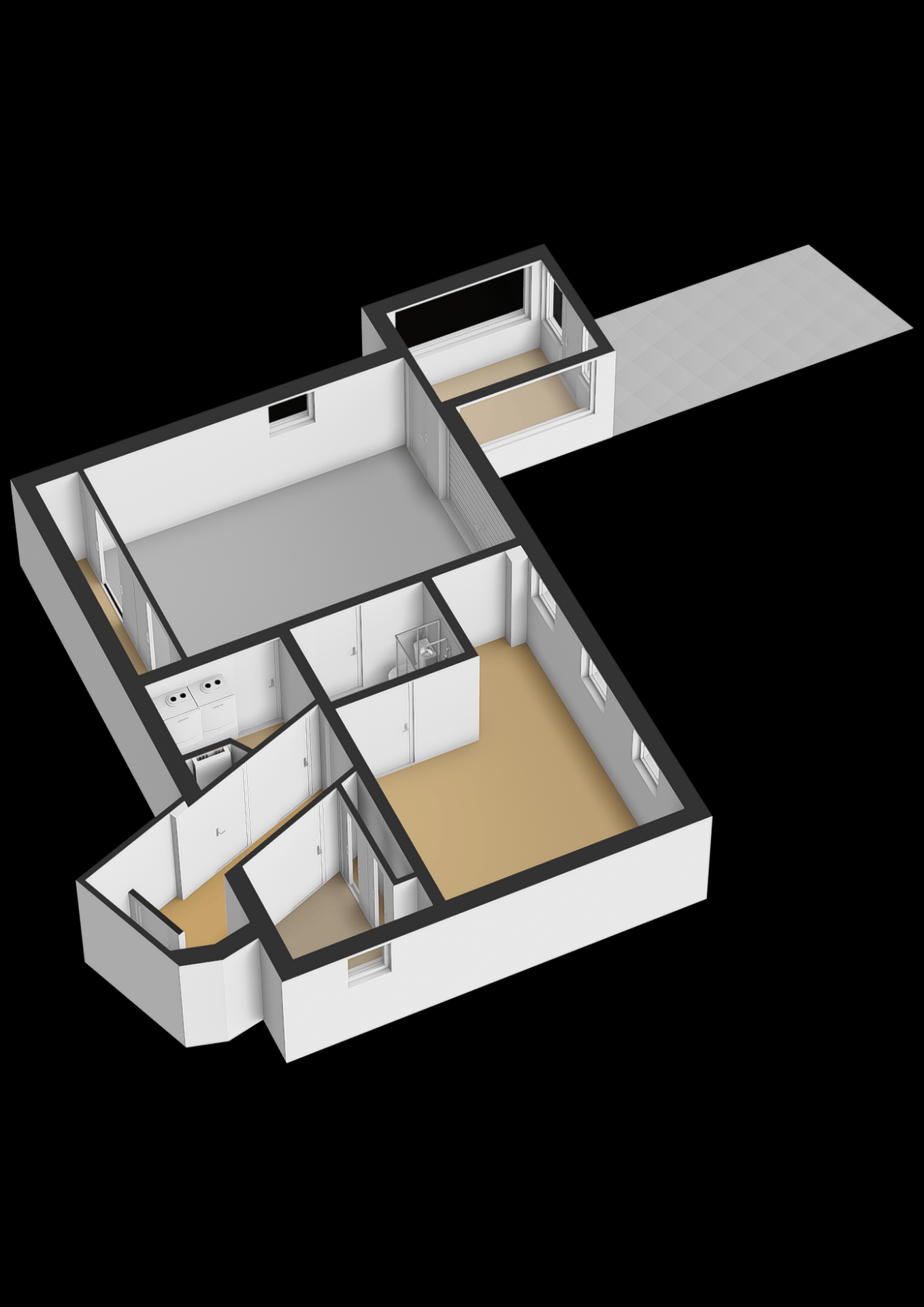 De woonkamer is royaal en statig, voorzien van een haard en een erker met groot raam. Door de verhoogde ligging van de woning kijk je aan twee kanten uit over het park. Het licht valt rijkelijk naar binnen dankzij de grote raampartijen aan de zonzijde. Aansluitend bevindt zich de eetkamer met deur naar terras en naar de keuken. De dichte keuken is uitgevoerd in hoekopstelling en beschikt over inbouwapparatuur en vaste kastruimte.
