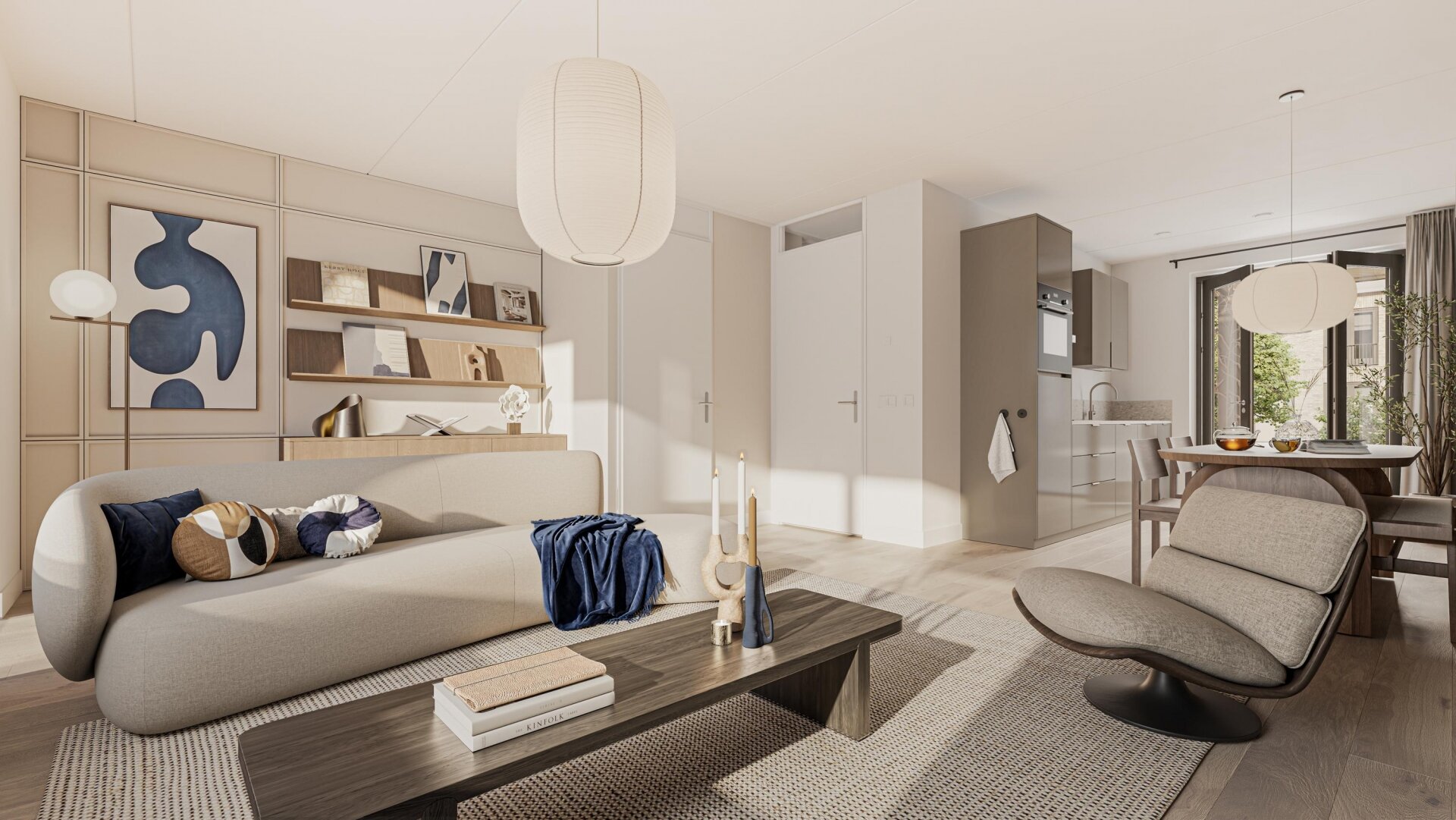 • L-vormige woonkamer met keuken