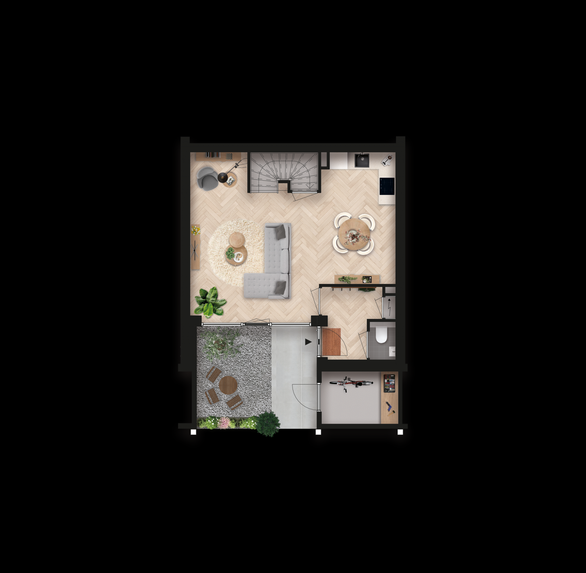 Hier woont u voor nu én voor later.. De woningen hebben energielabel A+++ en maken gebruik van innovatieve technieken zoals een warmteterugwinningssysteem, bodemwarmtepomp, zonnepanelen en triple glas. Elke woning heeft een veranda aan de voorzijde en een privé buitenruimte aan de achterzijde met een pergola voor extra privacy. Geniet van verkoeling onder een groen bladerdak op warme zomerdagen.