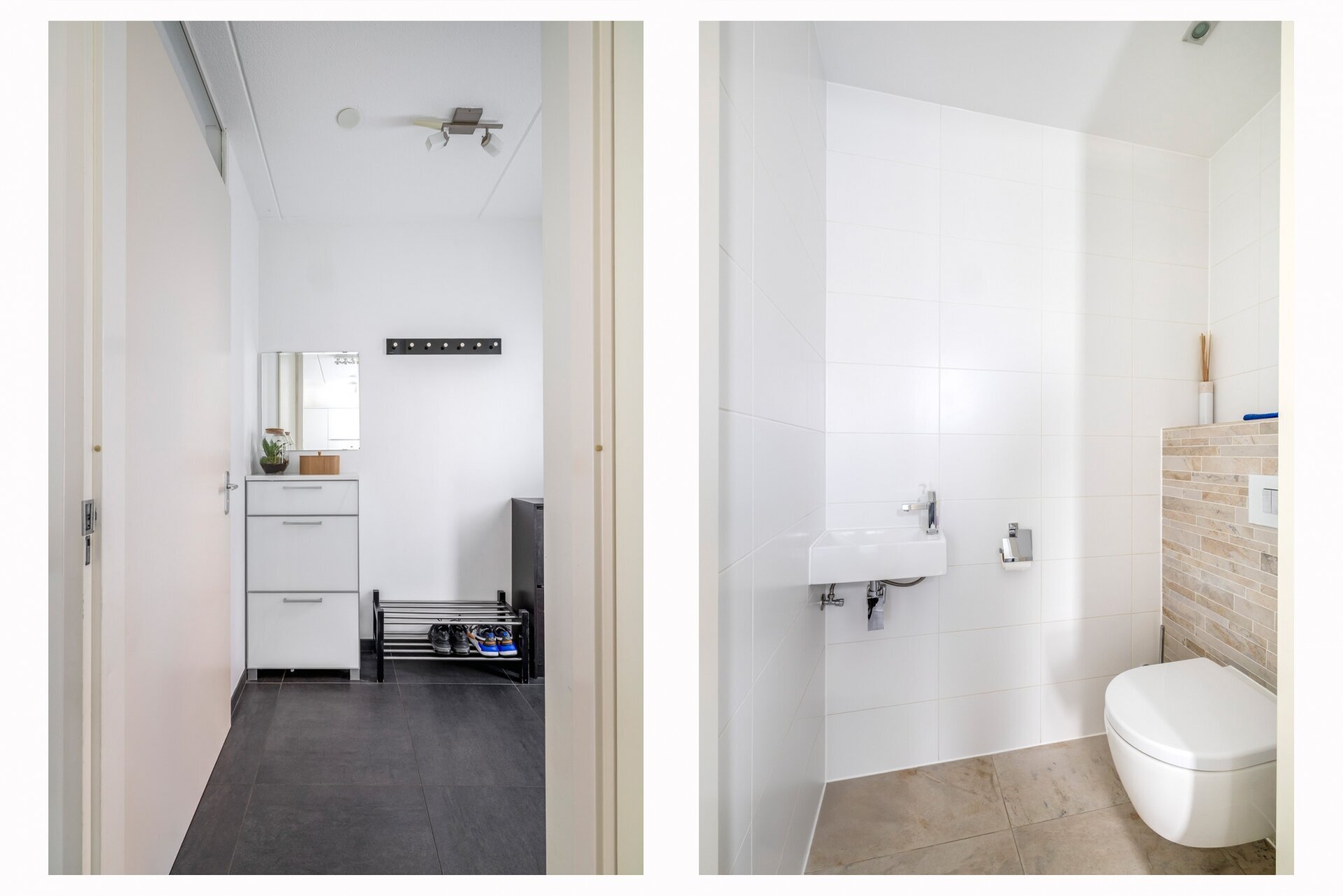 Via de fraai aangelegde voortuin betreedt u de woning. Vanuit de hal zijn alle vertrekken eenvoudig bereikbaar. Direct bij binnenkomst vindt u het toilet met fonteintje.