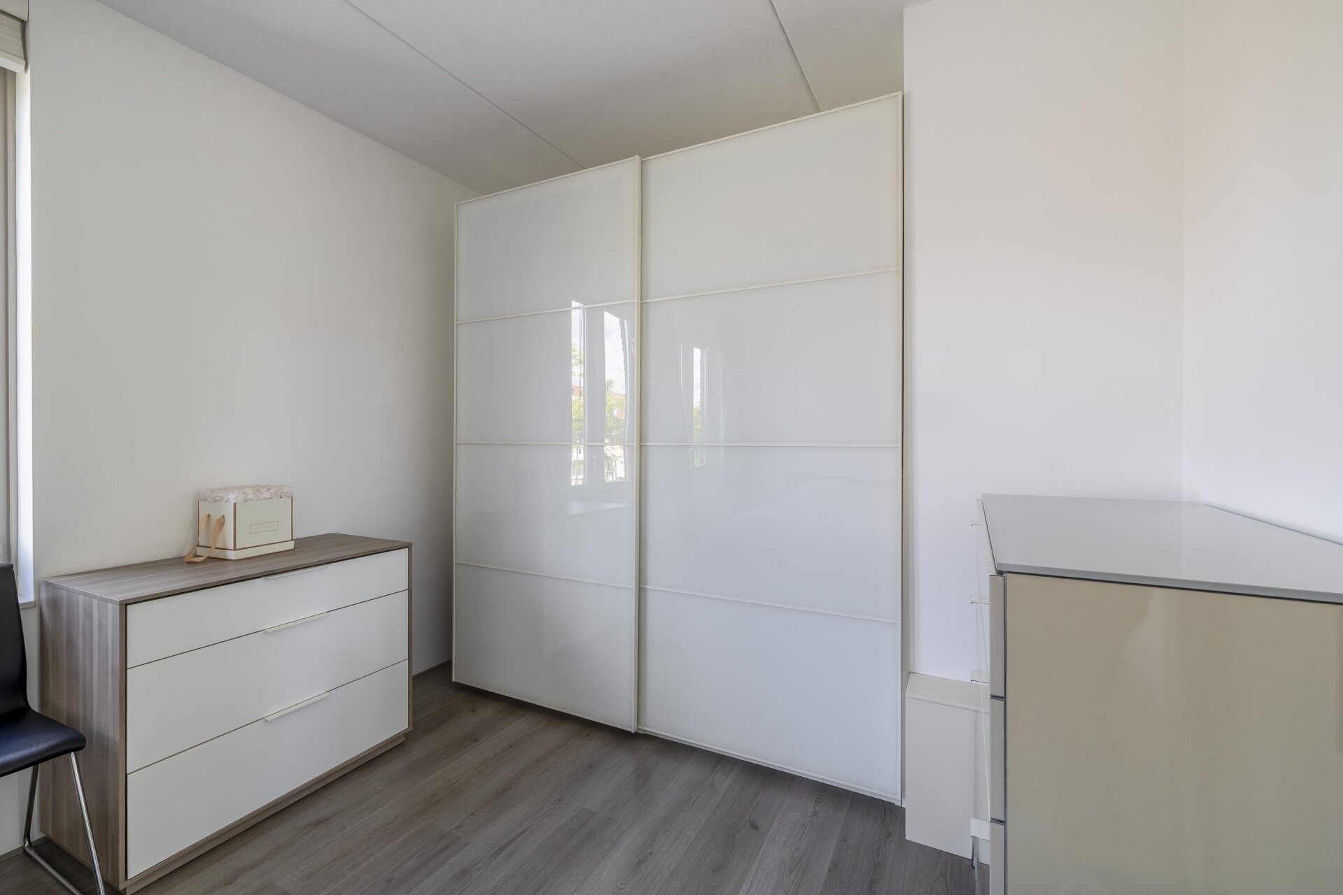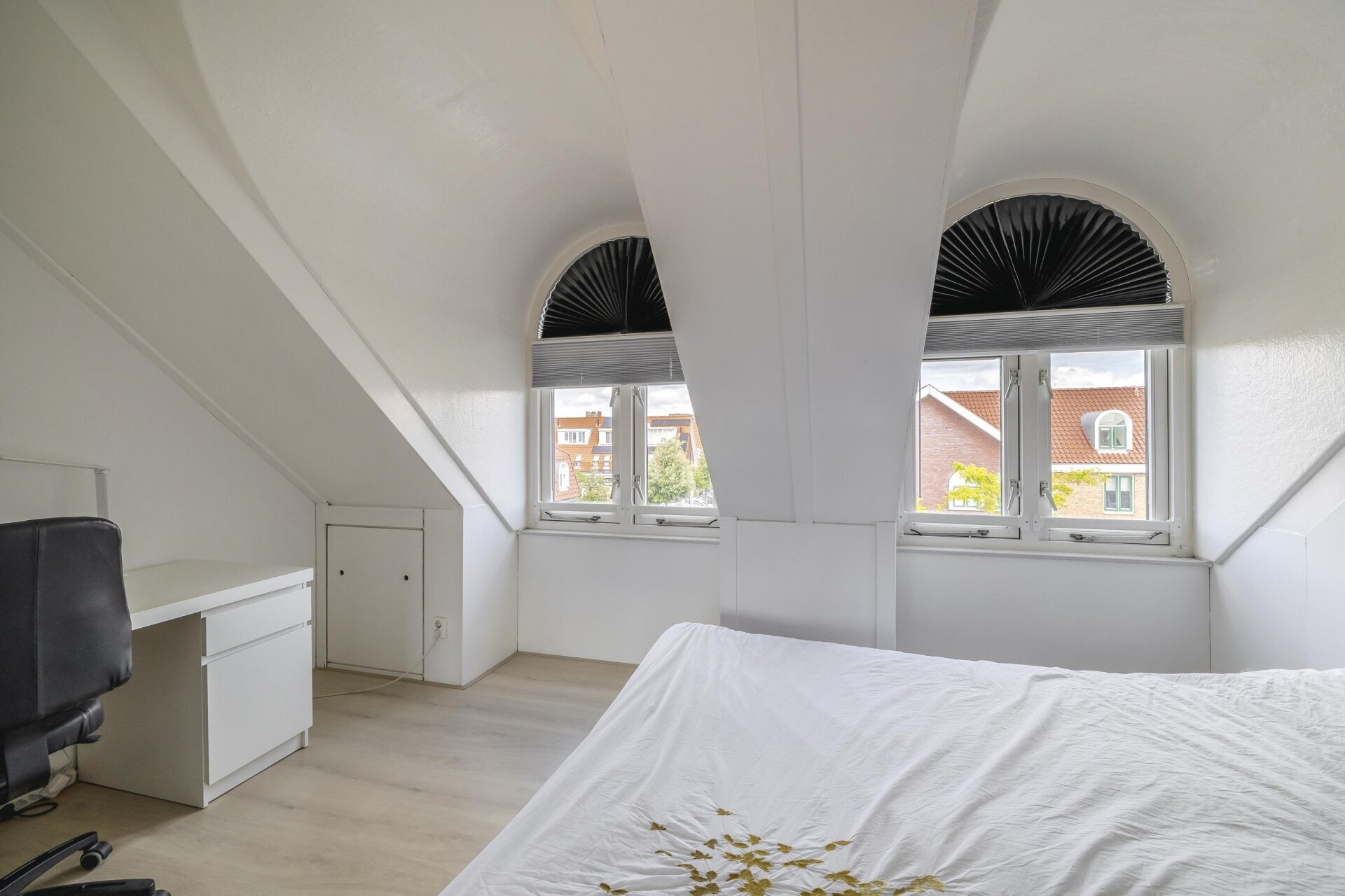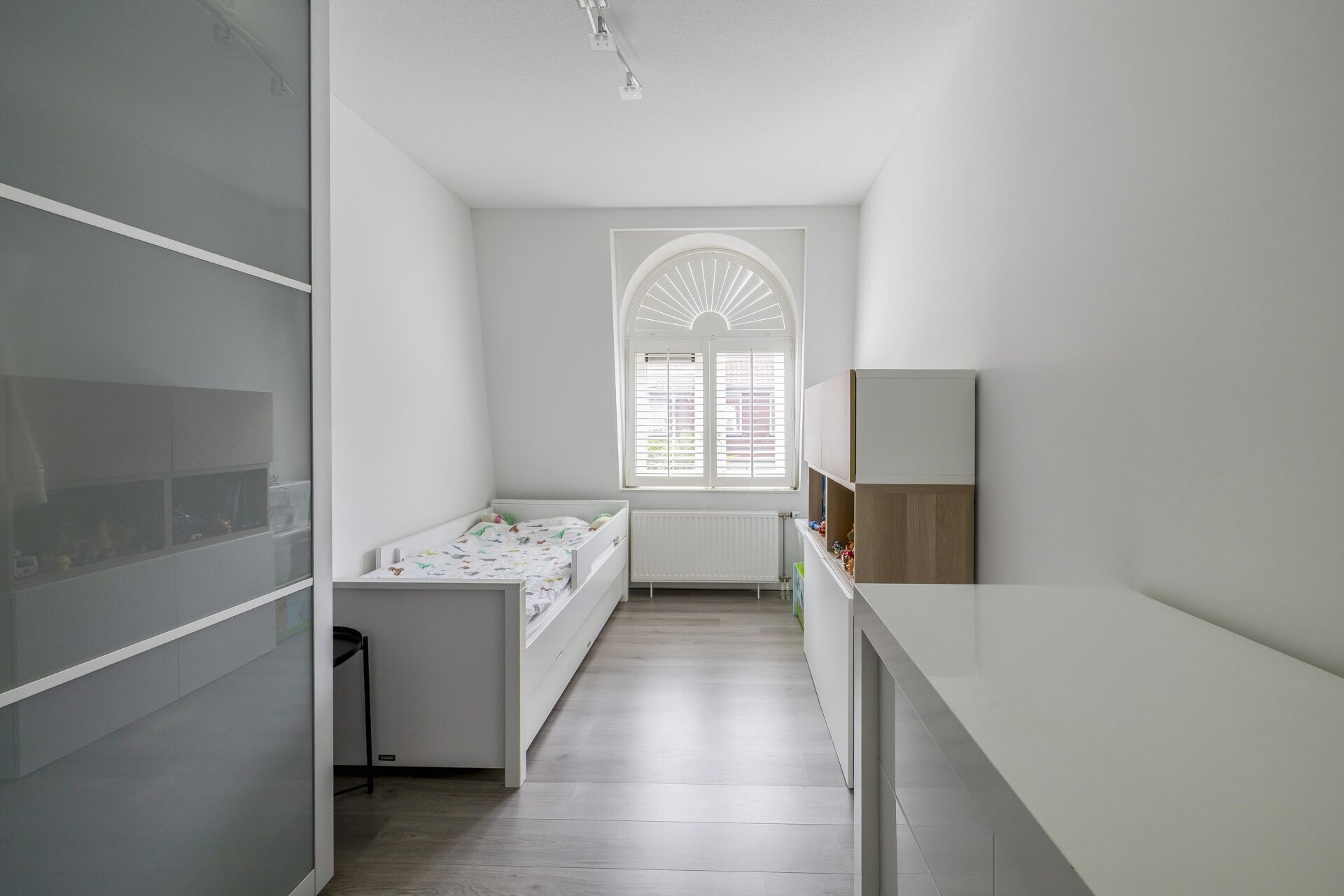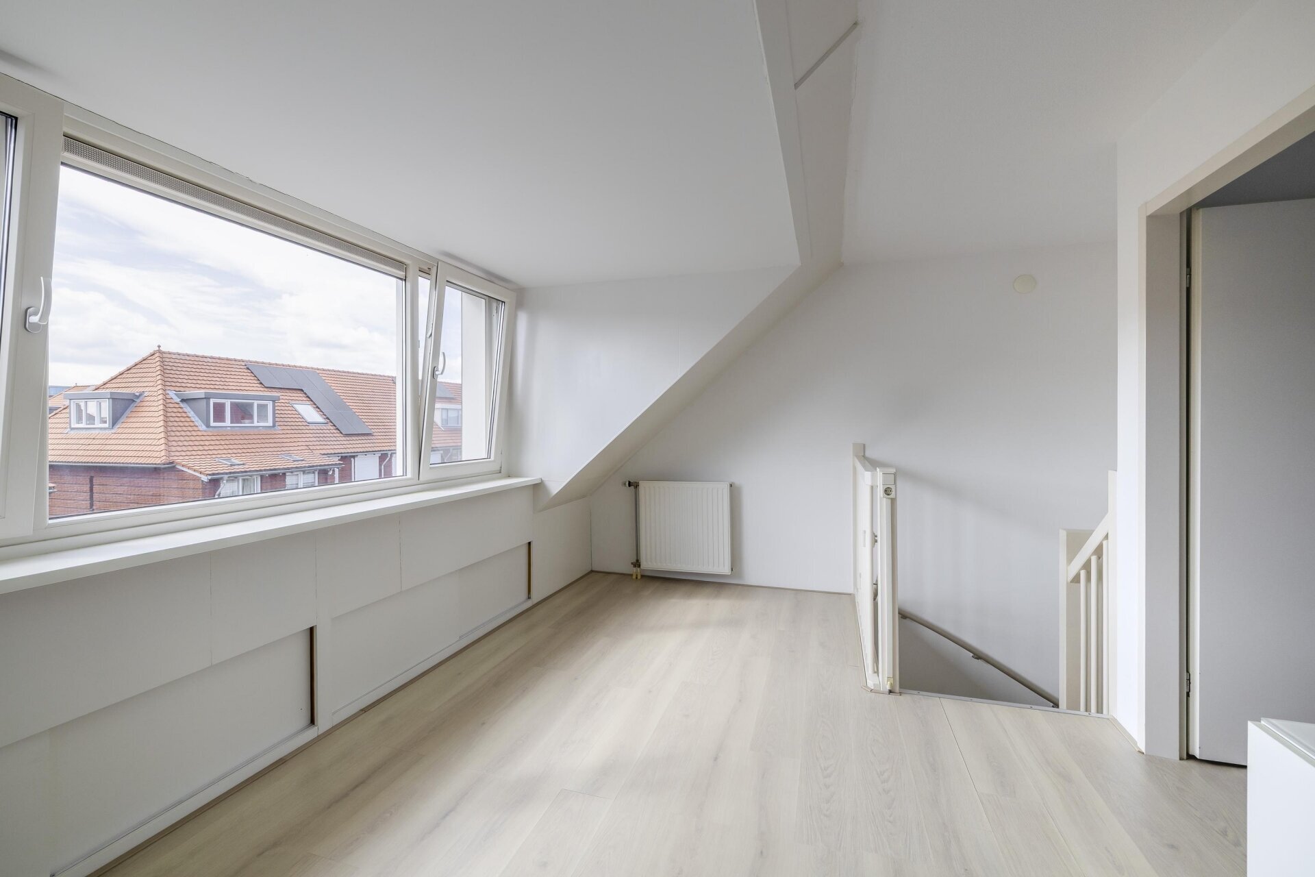 Op de tweede verdieping bevindt zich een ruime overloop met een praktische bergkast, ideaal voor het plaatsen van de wasmachine en droger. Daarnaast is op deze verdieping nog een extra slaapkamer aanwezig, gelegen aan de voorzijde van de woning.