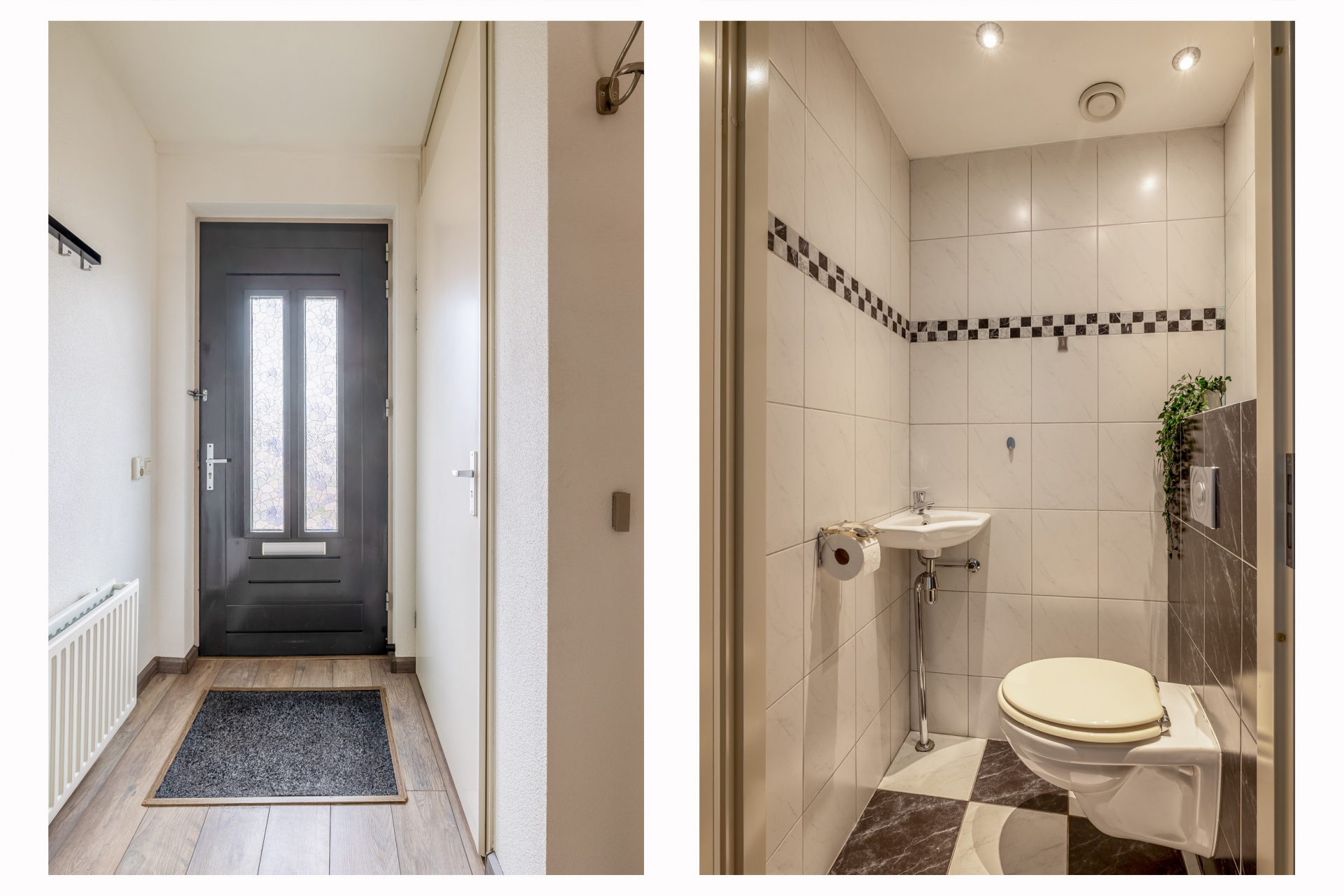 Via de entree met hal, meterkast en toilet met fonteintje betreedt u de lichte woonkamer. De woonkamer biedt volop ruimte voor een comfortabele zithoek en een eethoek en heeft directe toegang tot de zonnige achtertuin.