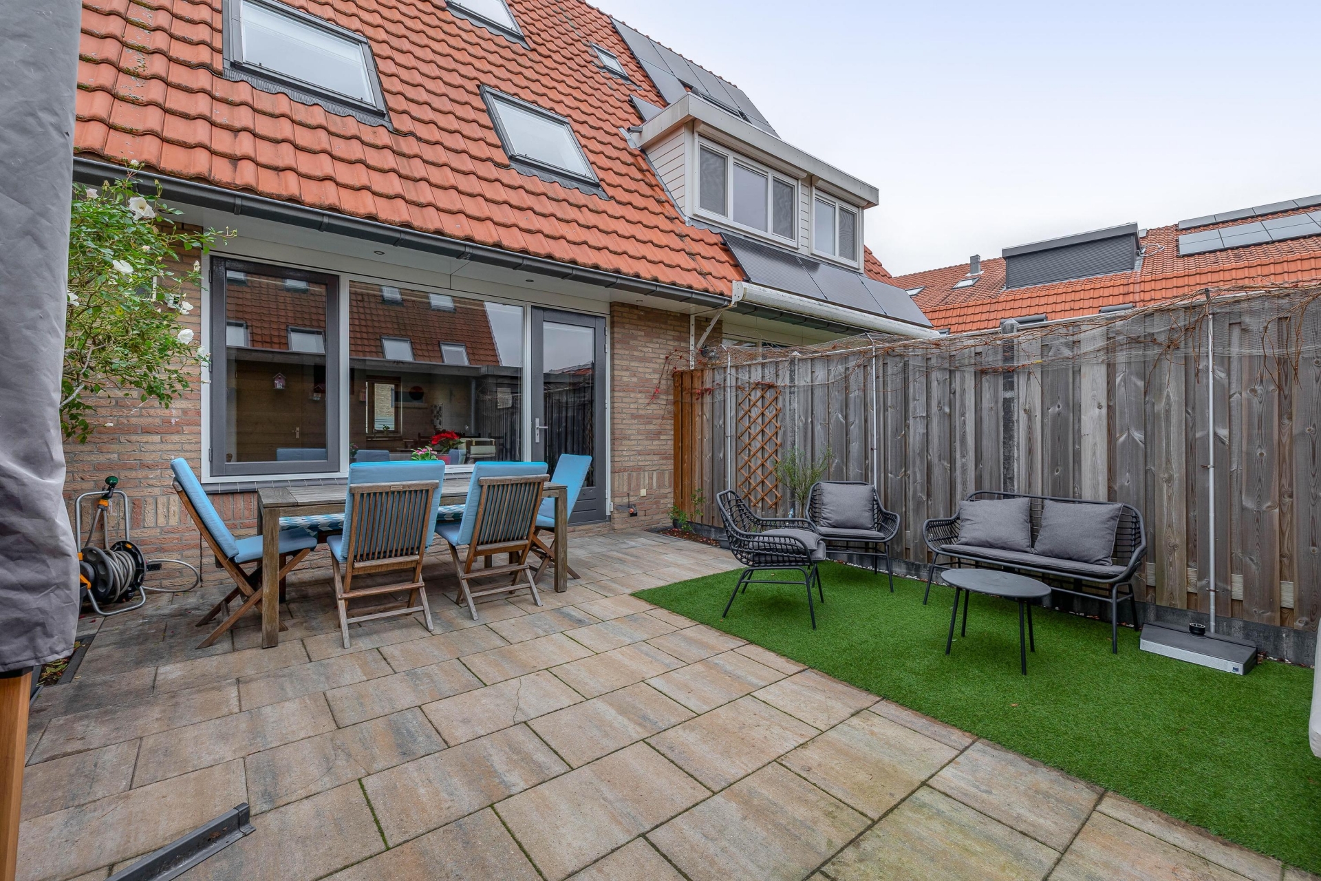 De achtertuin is gunstig gelegen en beschikt over een berging en een achterom, kortom een fijne plek om te ontspannen of gezellig buiten te zitten.