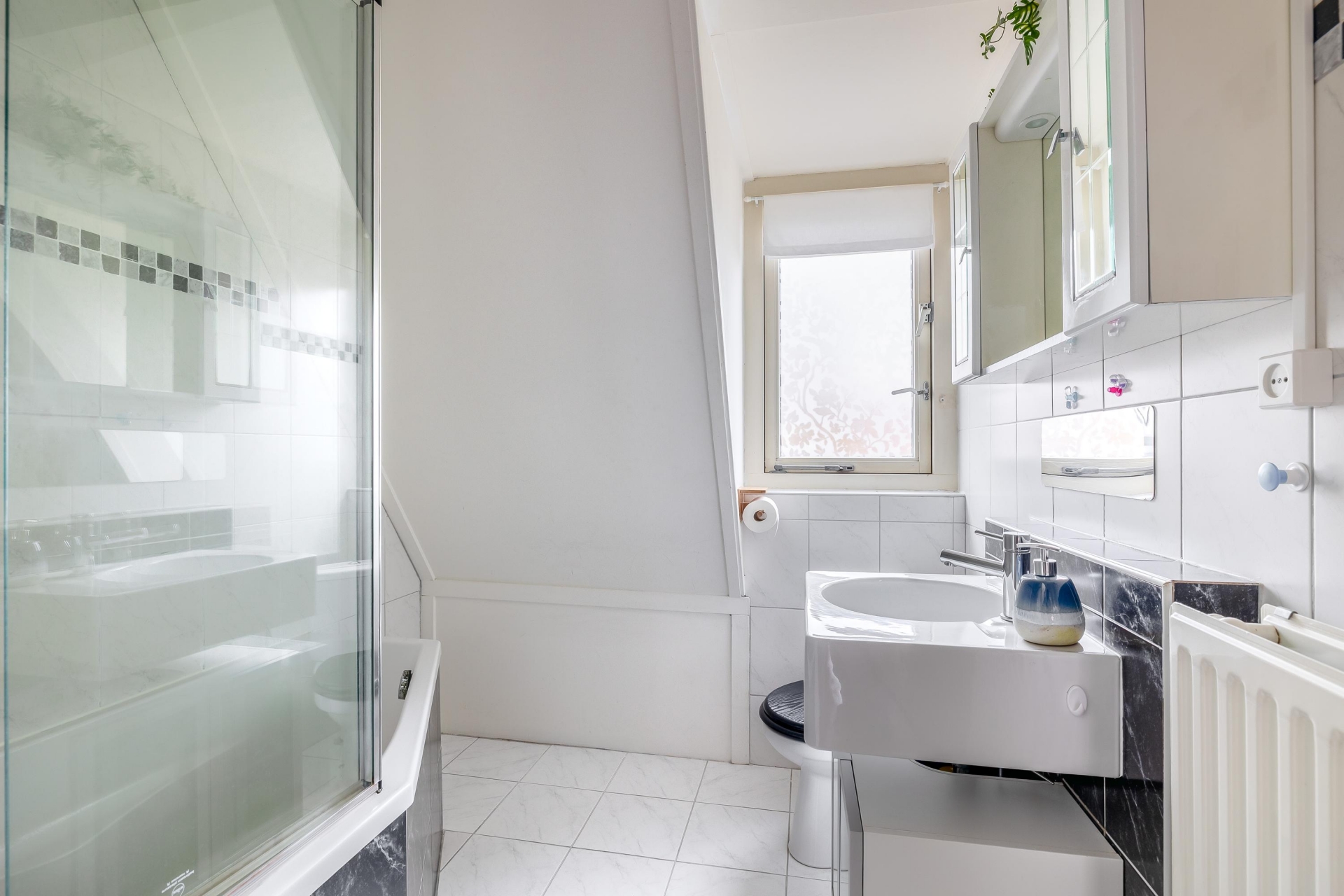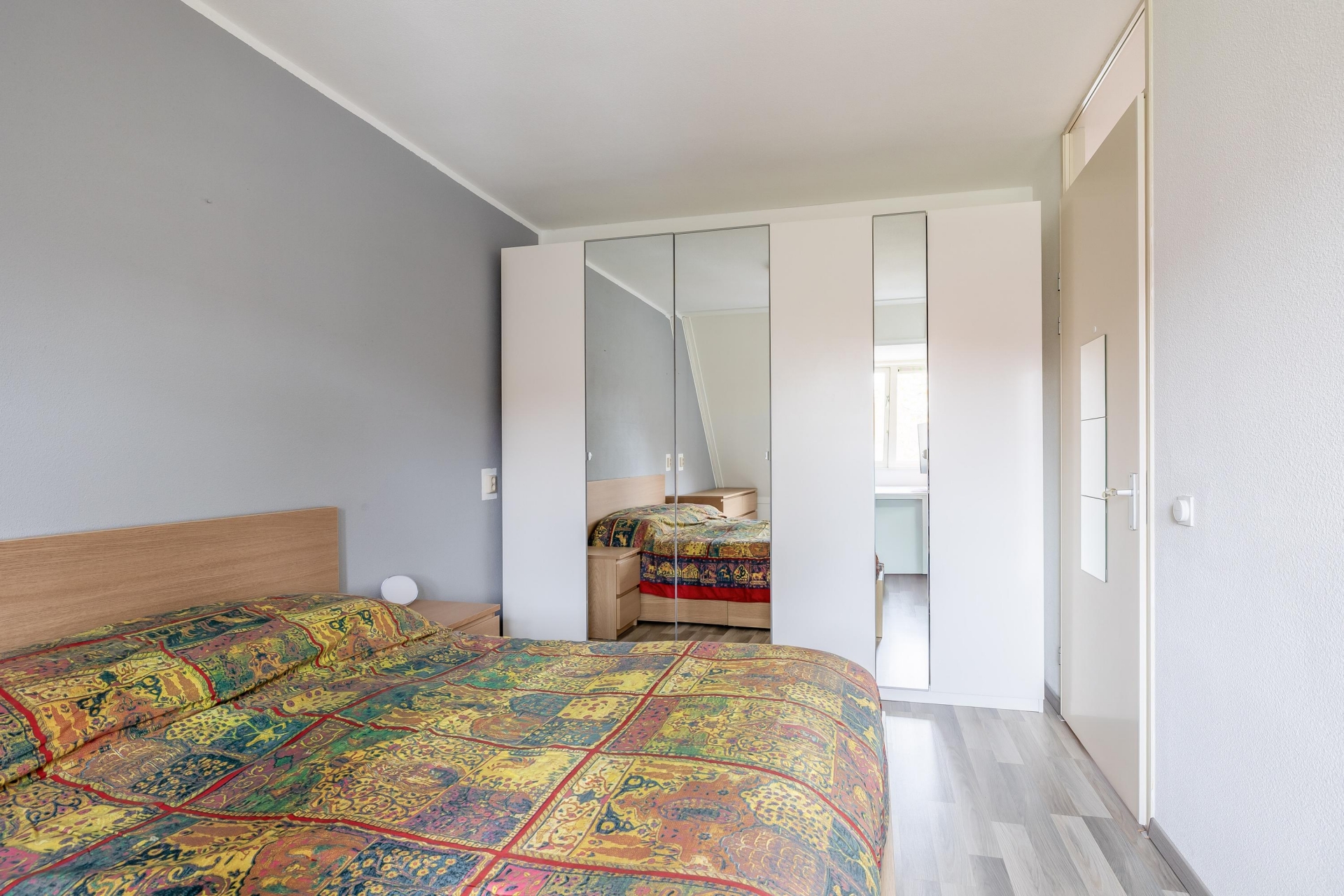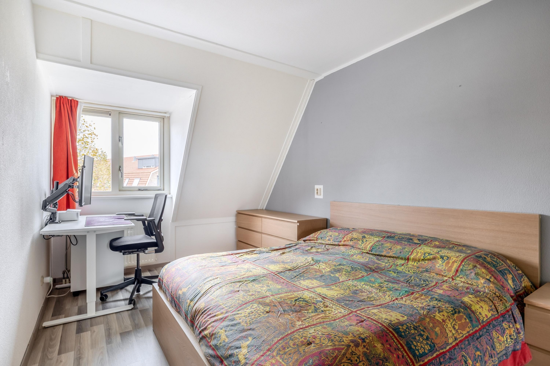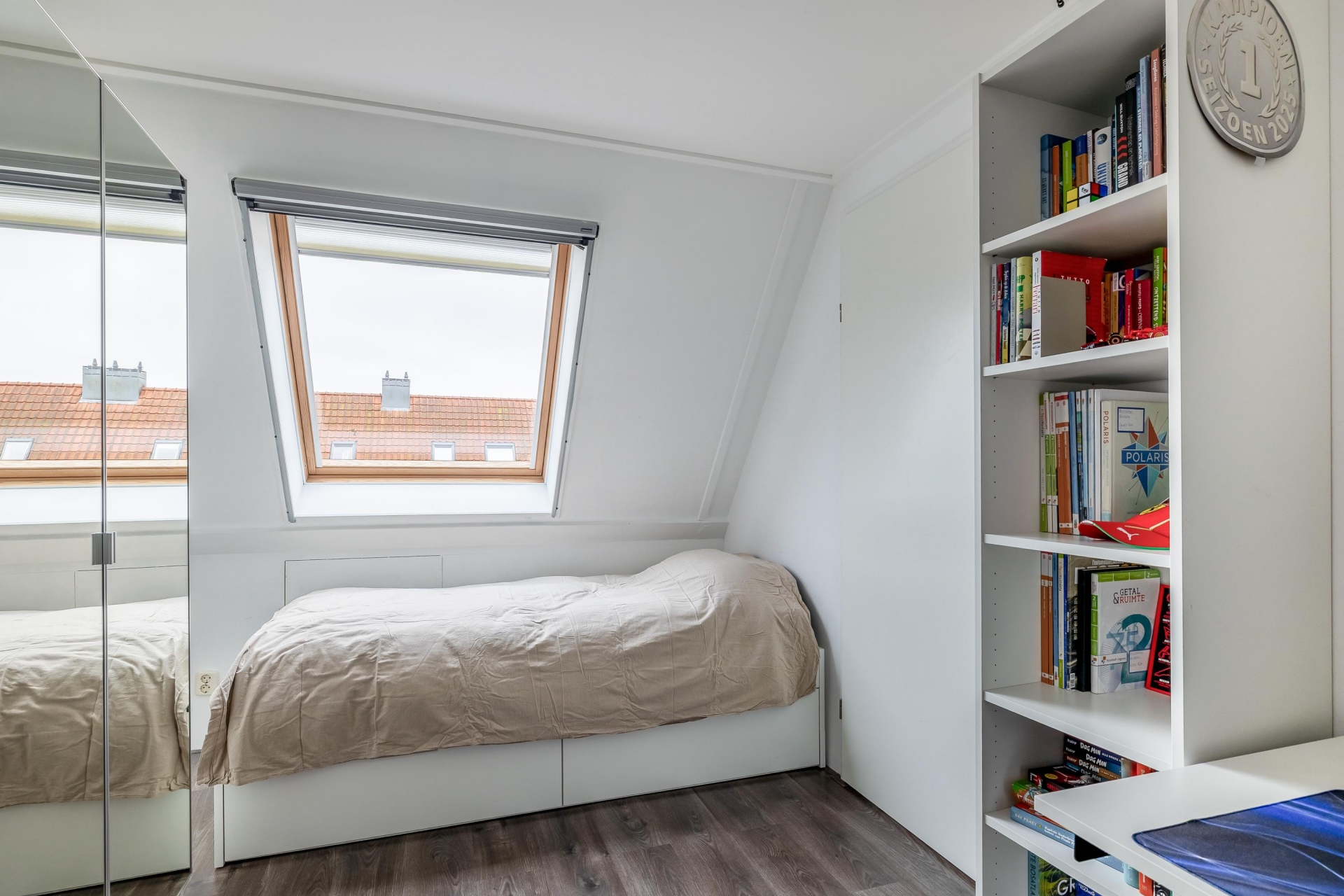 Aan de achterzijde bevindt zich de royale hoofdslaapkamer, die zich uitstrekt over de volledige breedte van de woning. Aan de voorzijde ligt de tweede slaapkamer, voorzien van een dakkapel. De badkamer, eveneens aan de voorzijde gelegen, is voorzien van een wastafelmeubel, een bad met douche en een tweede toilet. Ventilatie vindt plaats via een mechanisch ventilatiesysteem.