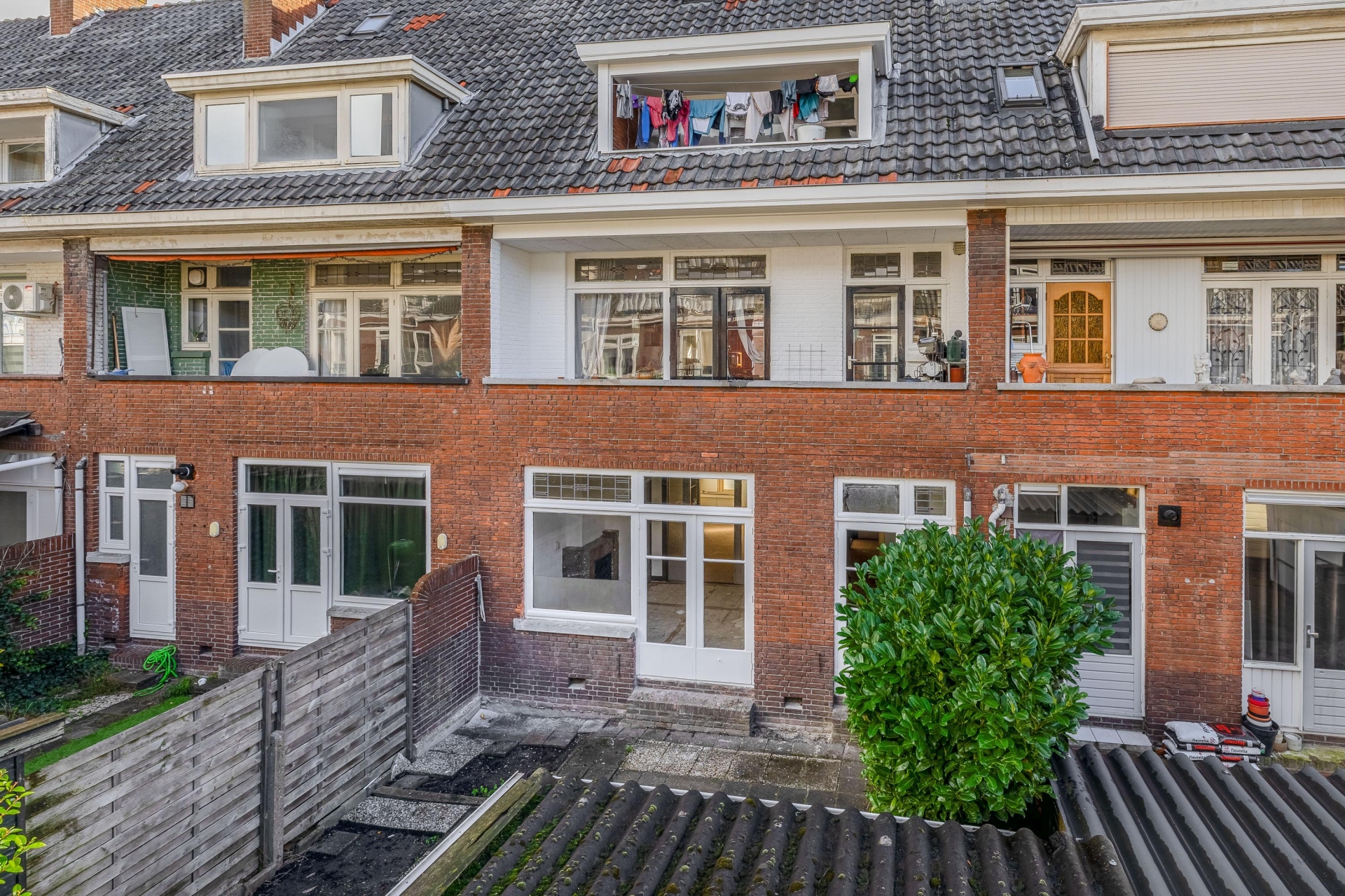 De achtertuin van circa 55 m² op het westen is werkelijk een parel van deze woning. Hier vang je de zonnestralen in de namiddag, organiseer je gezellige barbecues met vrienden of creëer je een groene oase helemaal naar eigen smaak. Of je nu houdt van een kleurrijke bloemenpracht, een moestuintje of gewoon een plek om rustig een boek te lezen: deze tuin geeft je de ruimte en rust die je in de stad bijna nergens vindt.