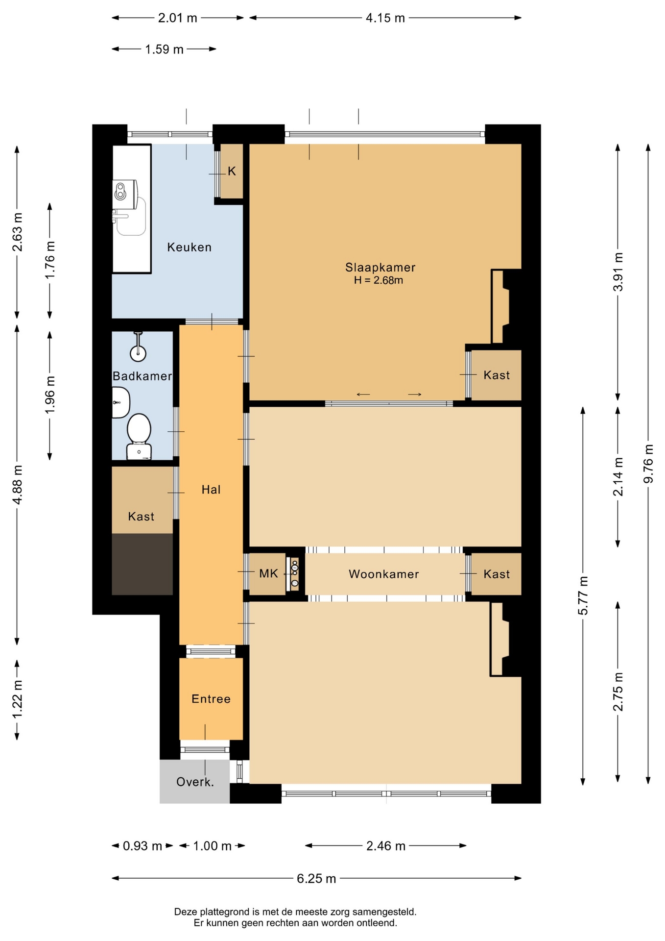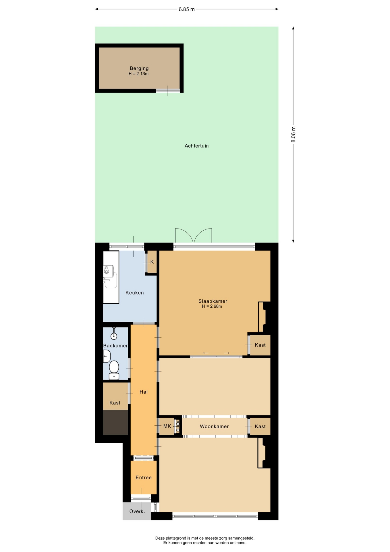 “Deze informatie is door ons met de nodige zorgvuldigheid samengesteld. Onzerzijds wordt echter geen enkele aansprakelijkheid aanvaard voor enige onvolledigheid, onjuistheid of anderszins, dan wel de gevolgen daarvan. Alle opgegeven maten en oppervlakten zijn indicatief.”