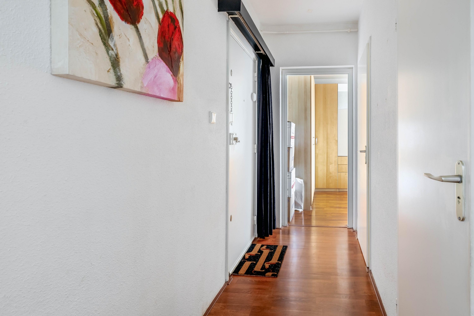 De woonkamer is licht en ruim opgezet en vormt het hart van het appartement. Dankzij de grote raampartijen valt het daglicht rijkelijk naar binnen en heb je direct zicht op de omgeving. Vanuit de woonkamer stap je zo het balkon op, gelegen op het westen. Hier geniet je in de middag en avond van de zon en een vrij uitzicht dat nooit verveelt. De afwerking is verzorgd en de warme vloer en inrichting zorgen voor een prettig en huiselijk gevoel.