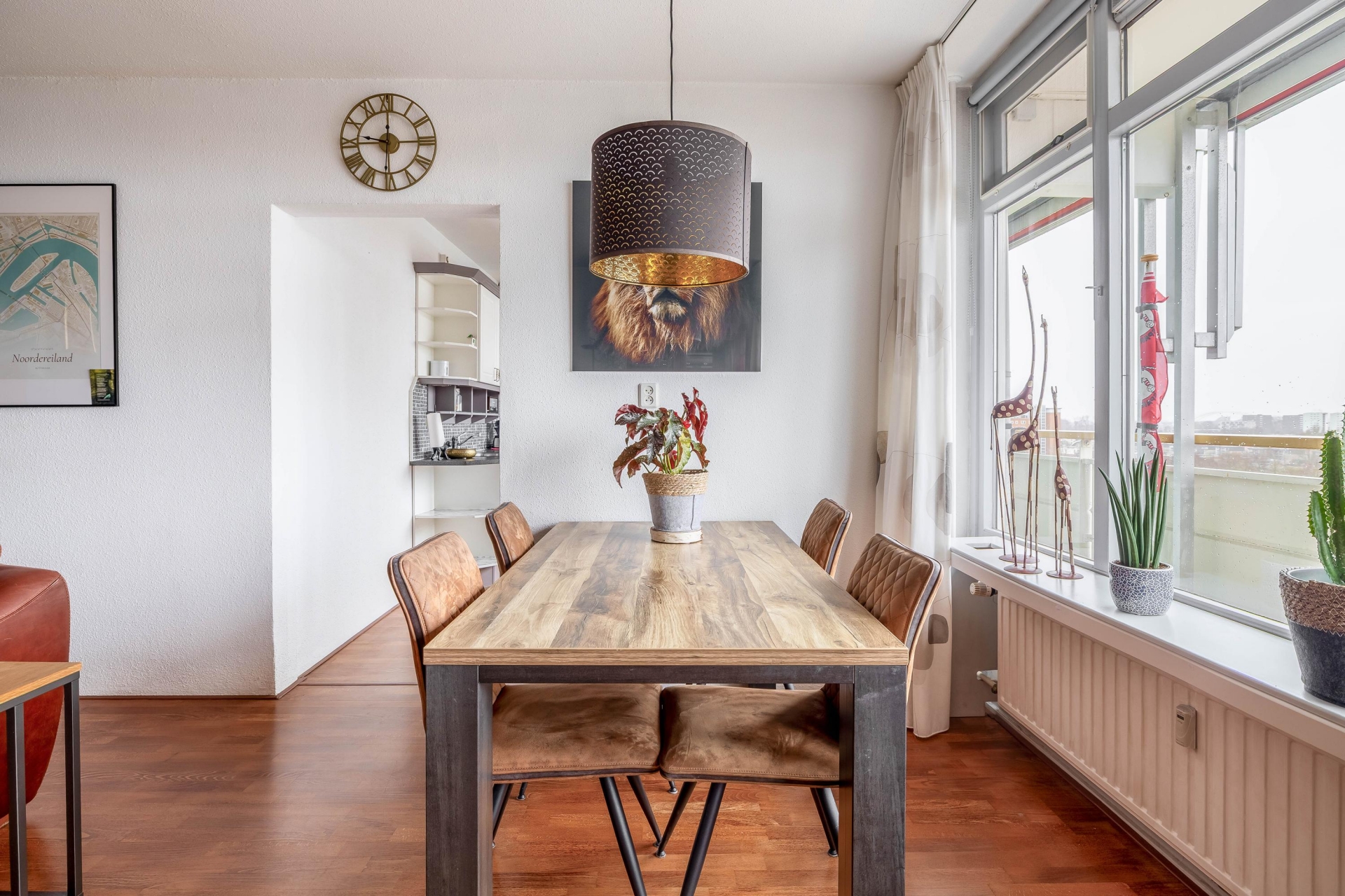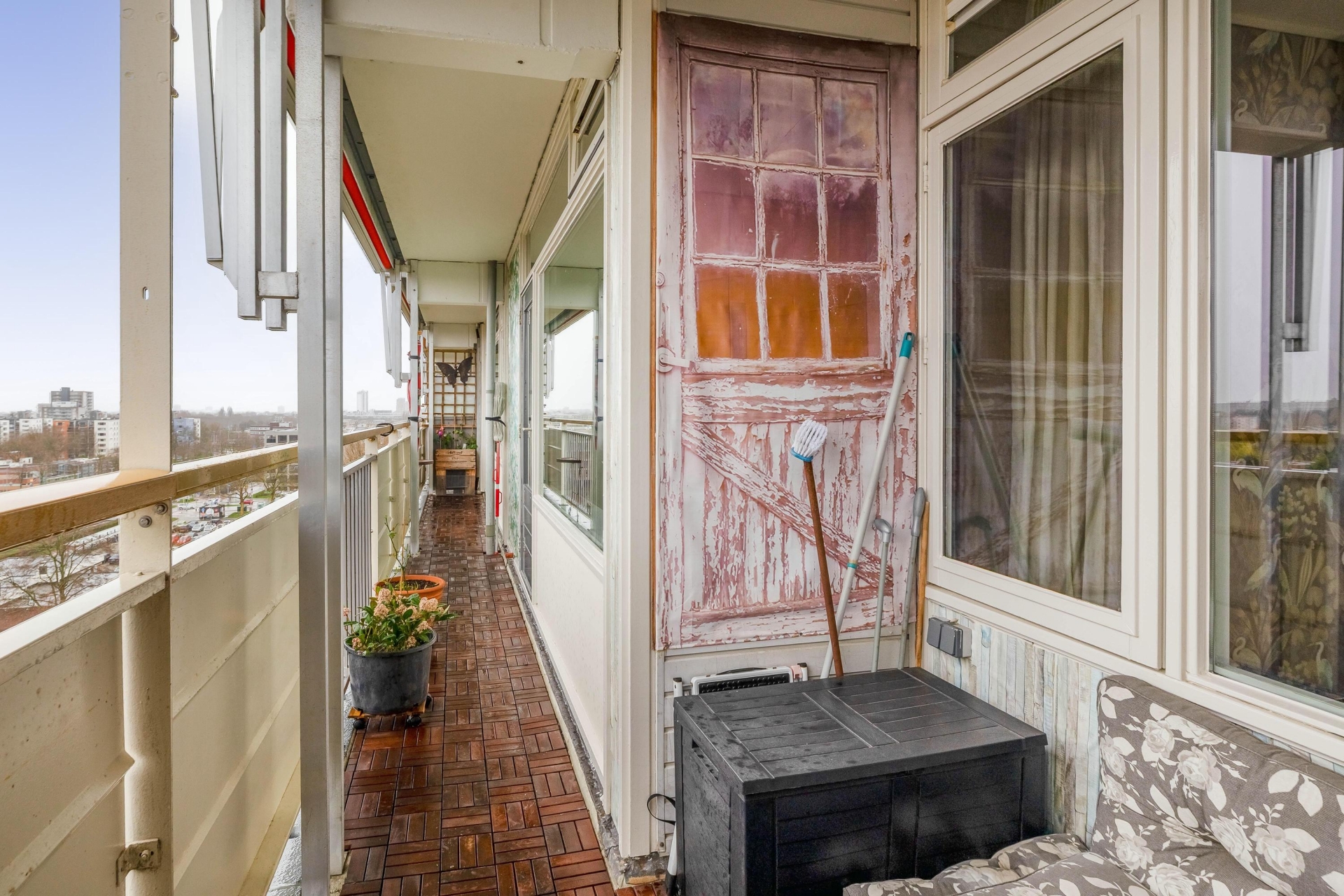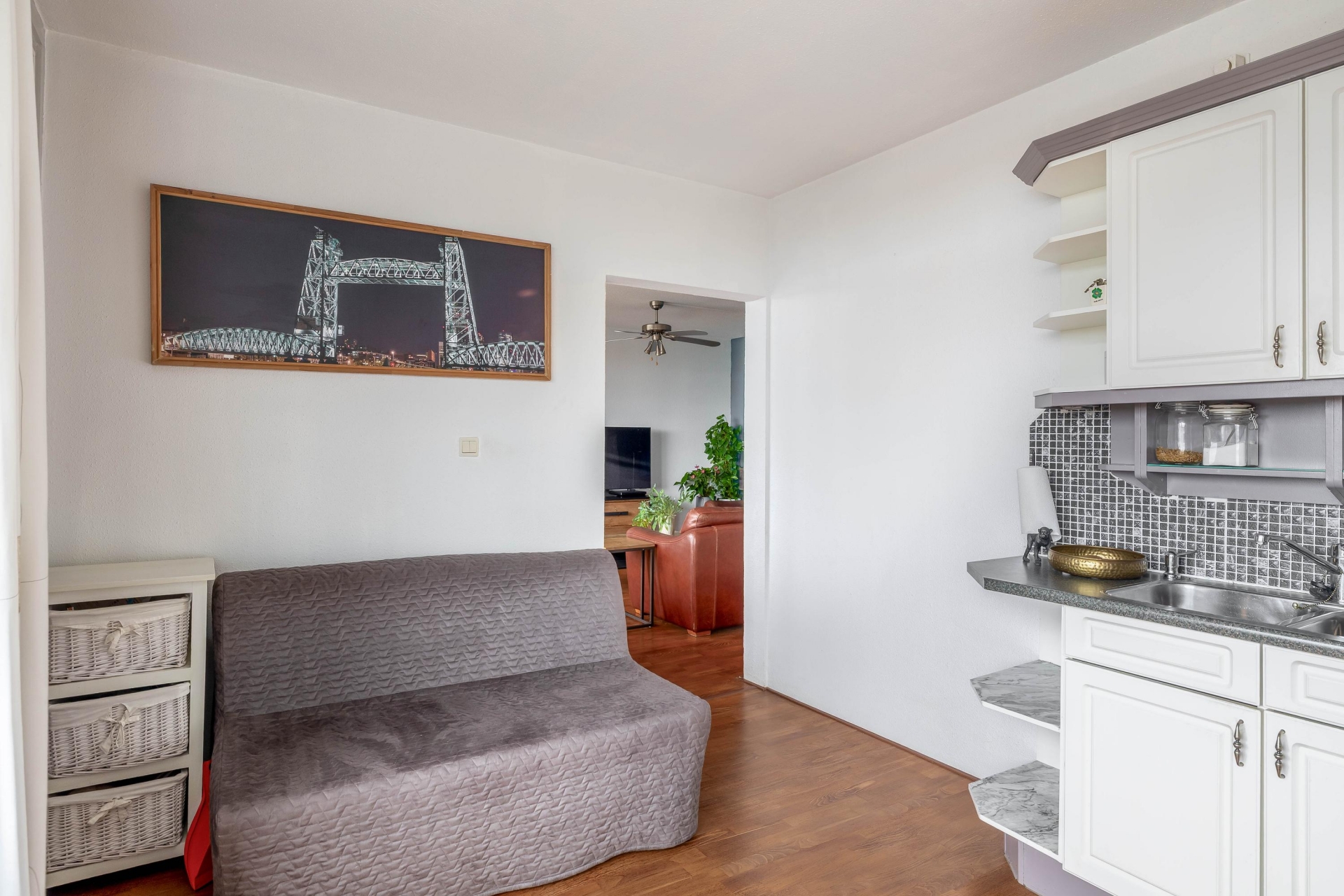 Wat dit appartement echt onderscheidt, is de combinatie van het vrije uitzicht en de centrale ligging. Vanuit de 9e verdieping kijk je ver weg over de omgeving, met als blikvanger de skyline van Rotterdam. Dit geeft een gevoel van ruimte en vrijheid dat je niet vaak tegenkomt.
