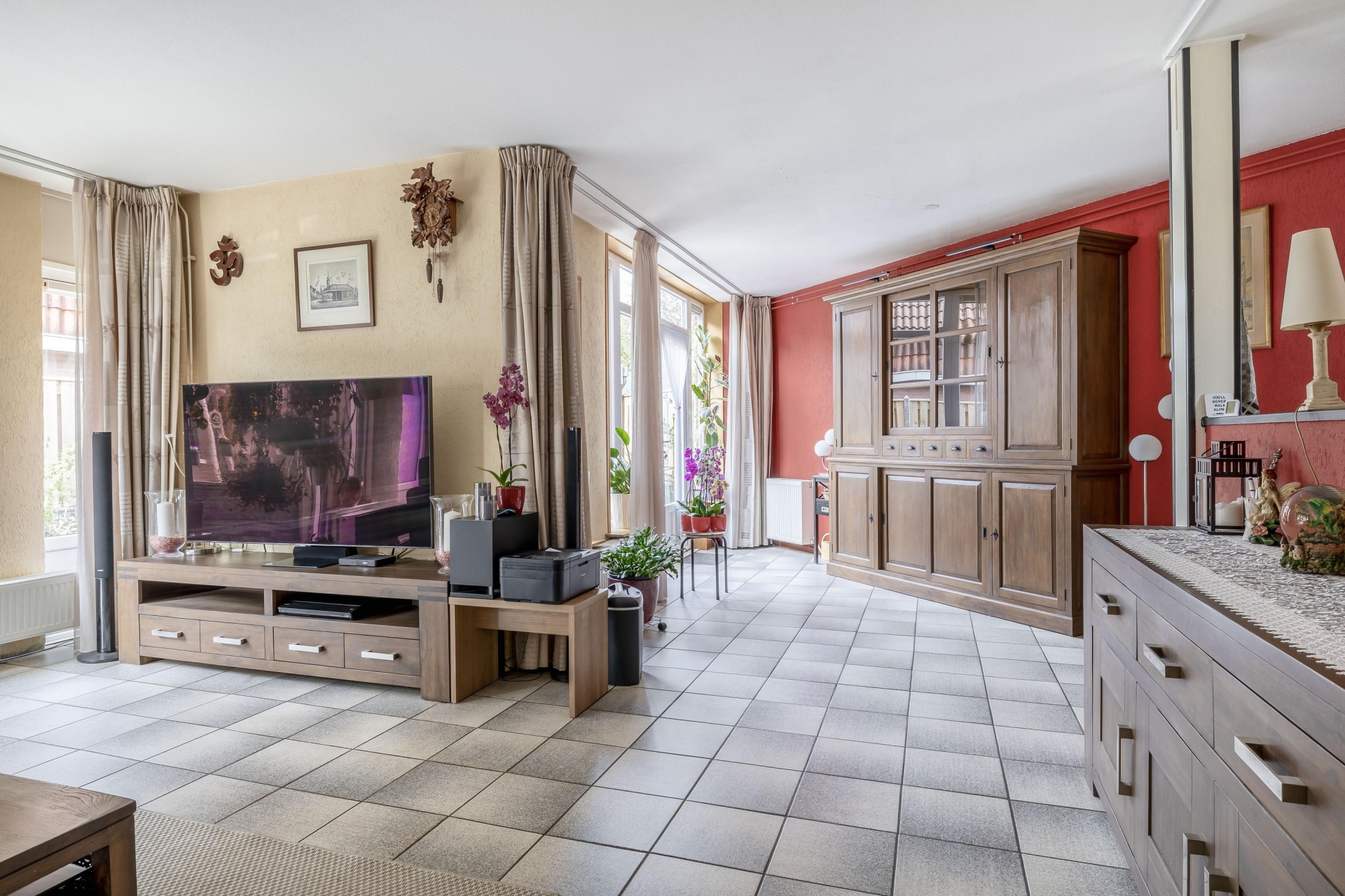 Zodra je binnenkomt, merk je direct dat dit huis verrassend veel ruimte biedt. De woonkamer is heerlijk licht dankzij de grote raampartijen en heeft een prettige indeling waar je eenvoudig een royale zithoek en een gezellige eethoek kwijt kunt. De open verbinding met de keuken zorgt voor een fijne leefruimte waarin alles logisch in elkaar overloopt.