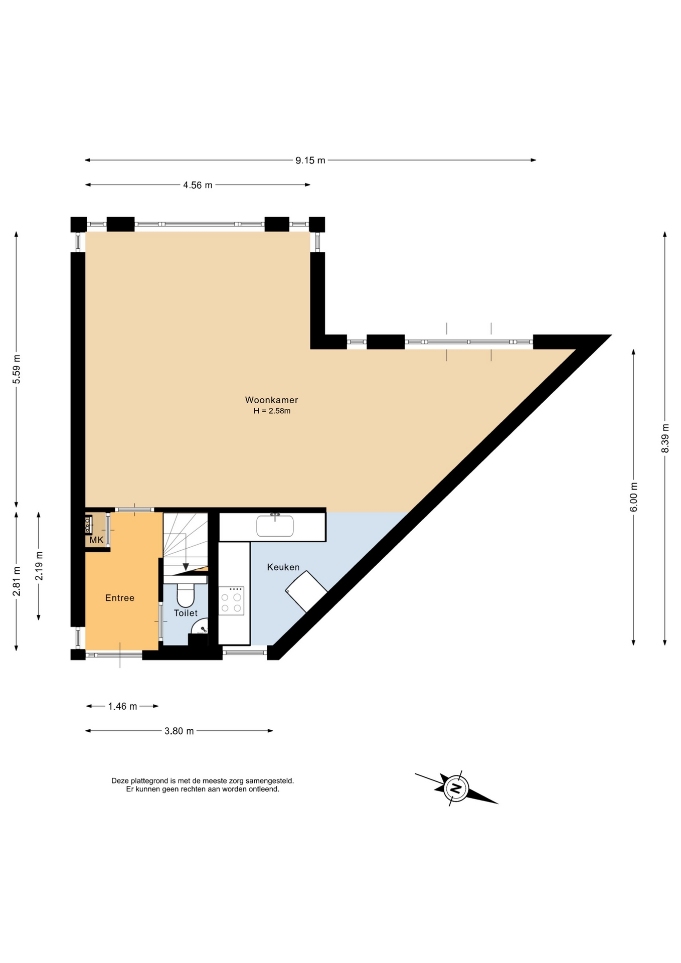 “Deze informatie is door ons met de nodige zorgvuldigheid samengesteld. Onzerzijds wordt echter geen enkele aansprakelijkheid aanvaard voor enige onvolledigheid, onjuistheid of anderszins, dan wel de gevolgen daarvan. Alle opgegeven maten en oppervlakten zijn indicatief.”