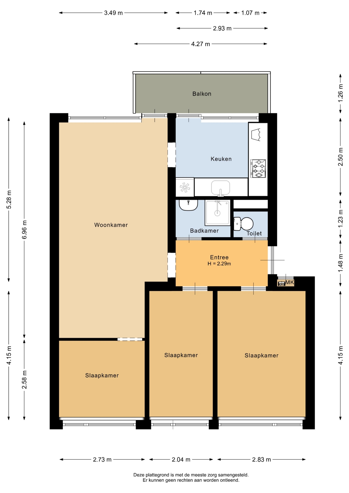 “Deze informatie is door ons met de nodige zorgvuldigheid samengesteld. Onzerzijds wordt echter geen enkele aansprakelijkheid aanvaard voor enige onvolledigheid, onjuistheid of anderszins, dan wel de gevolgen daarvan. Alle opgegeven maten en oppervlakten zijn indicatief.”