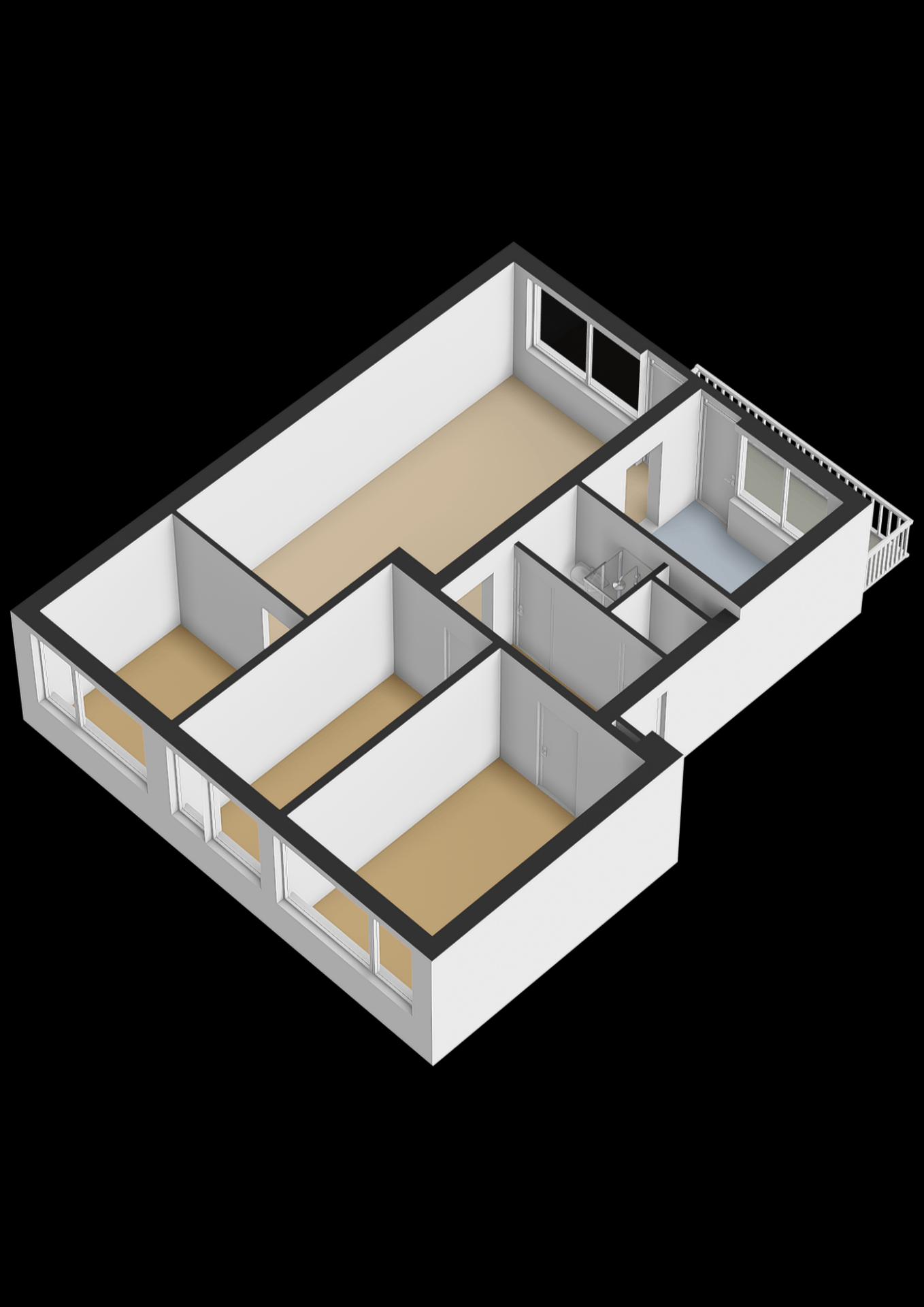 - Voorzien van 3 slaapkamers aan de voorzijde van het appartement;