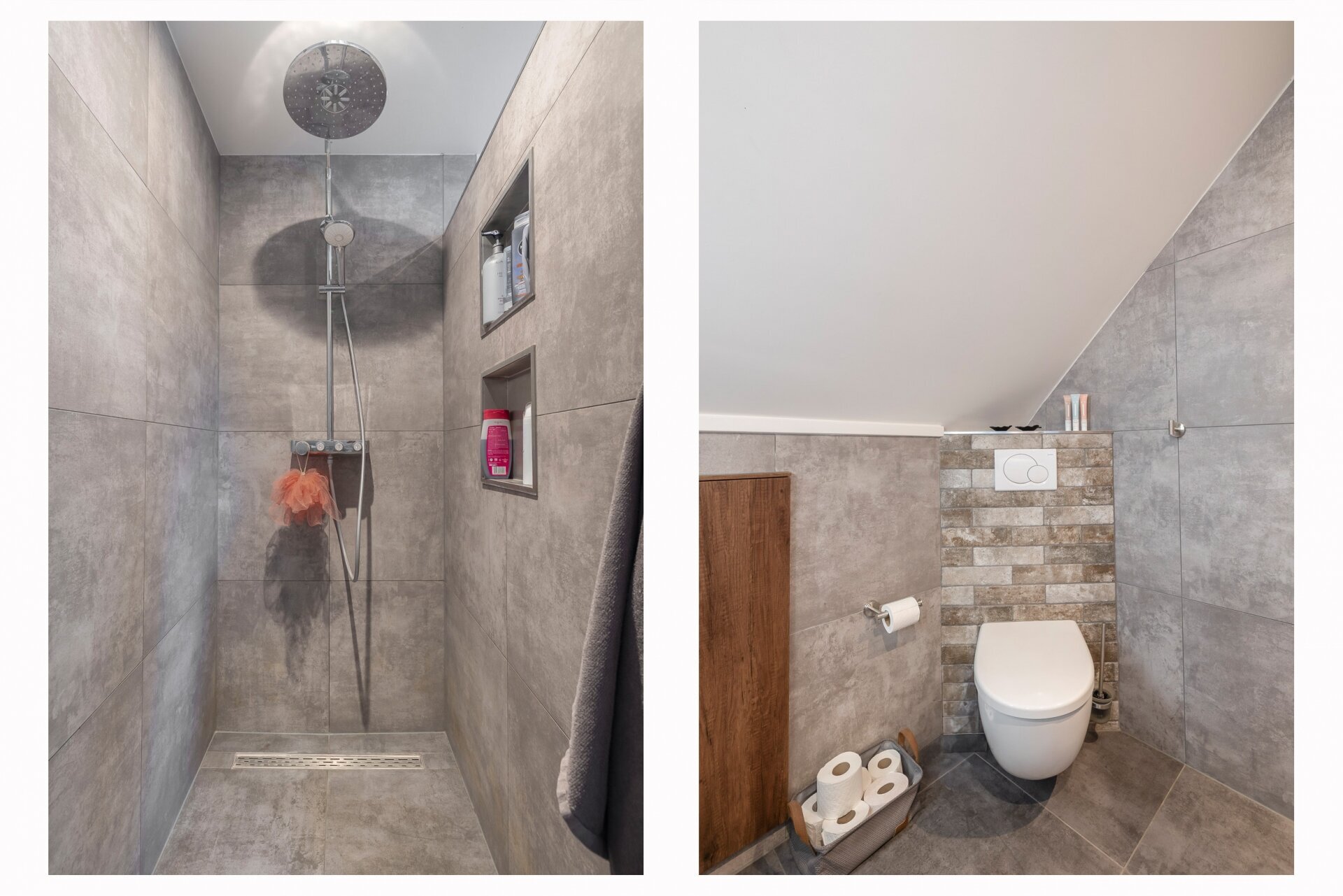 De badkamer is modern en luxe uitgevoerd. Denk aan een ruime inloopdouche, stijlvol wastafelmeubel en strak tegelwerk – helemaal instapklaar. Ook is er een tweede toilet aanwezig, wat natuurlijk ideaal is voor een groter huishouden.