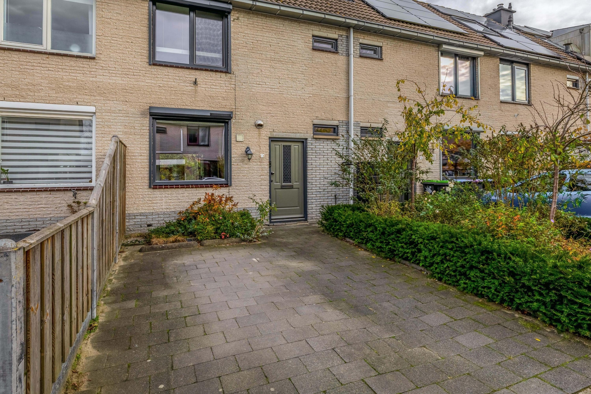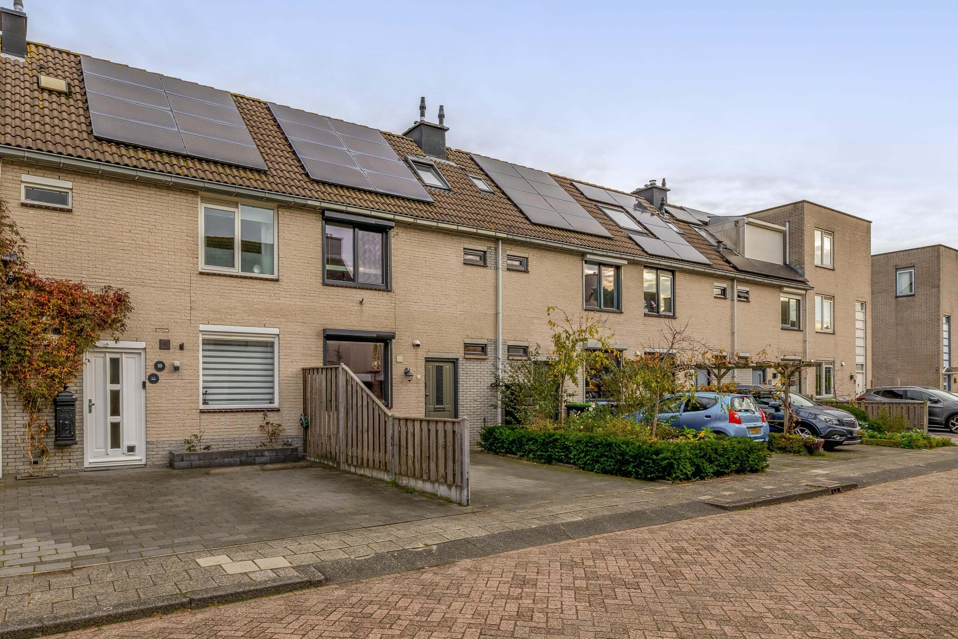 Ook de voortuin is netjes aangelegd en biedt parkeergelegenheid op eigen terrein. Dat is pas comfortabel thuiskomen.