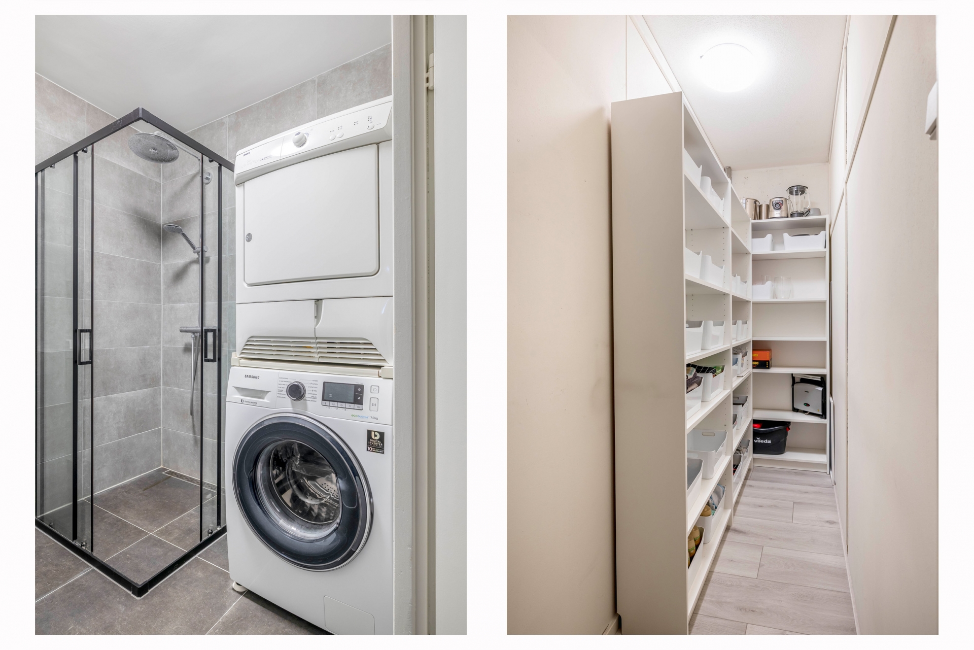 In de hal bevindt zich tevens een handige opbergkast die voor extra bergruimte zorgt.