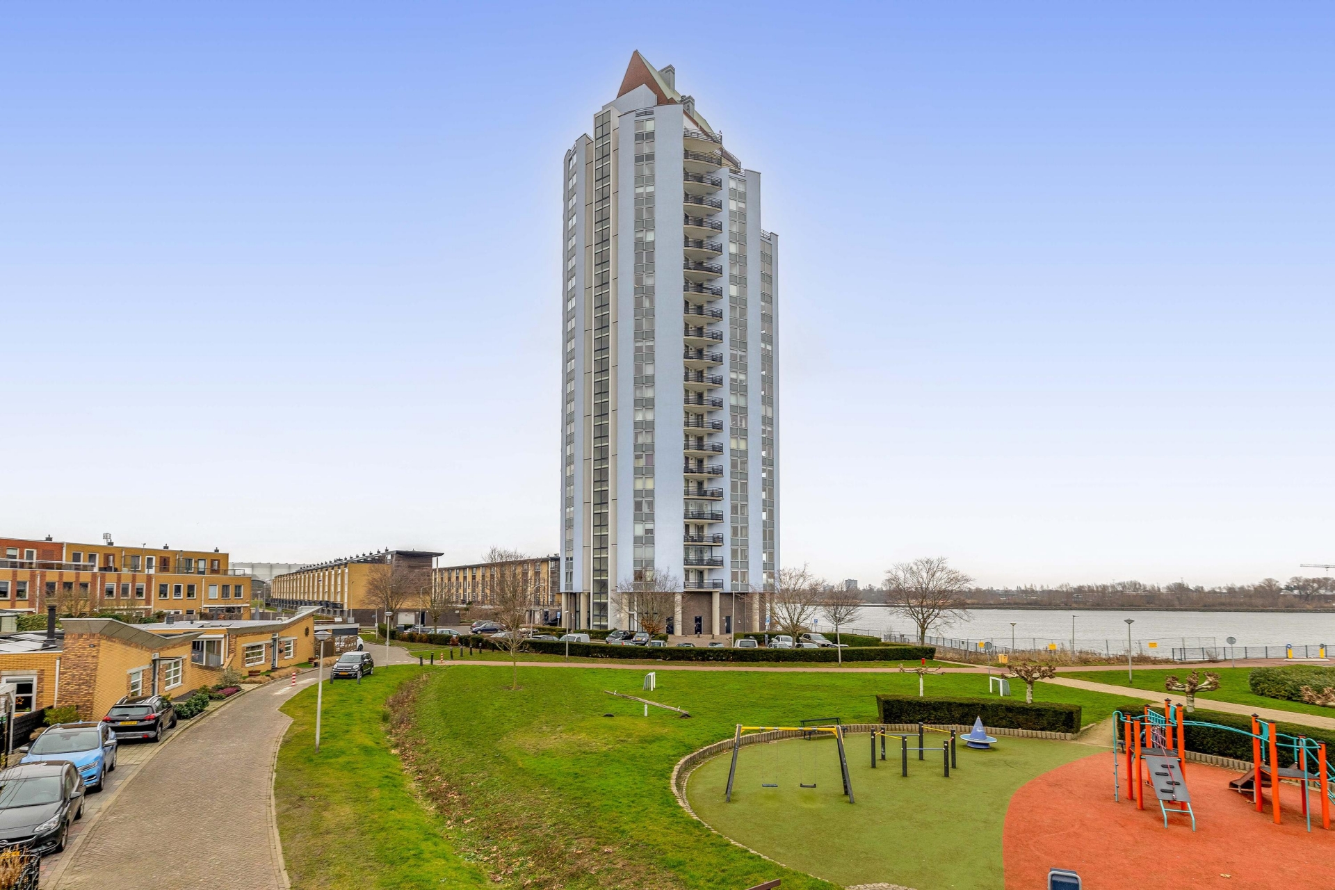 Wakker worden met een panoramisch uitzicht over de Nieuwe Maas, schepen die voorbijglijden en de skyline van Rotterdam aan de horizon. Dat is wonen in dit prachtige HOEKAPPARTEMENT op de 10e verdieping van het markante complex ‘De Toren’ in Ridderkerk-Bolnes.