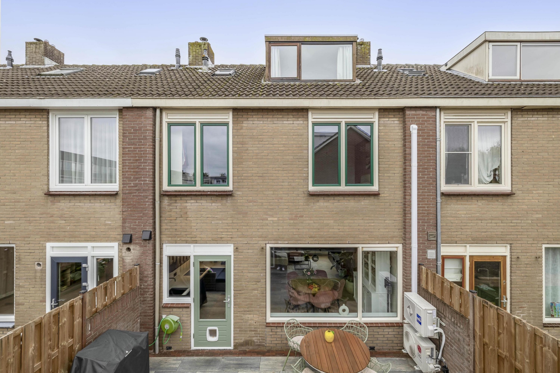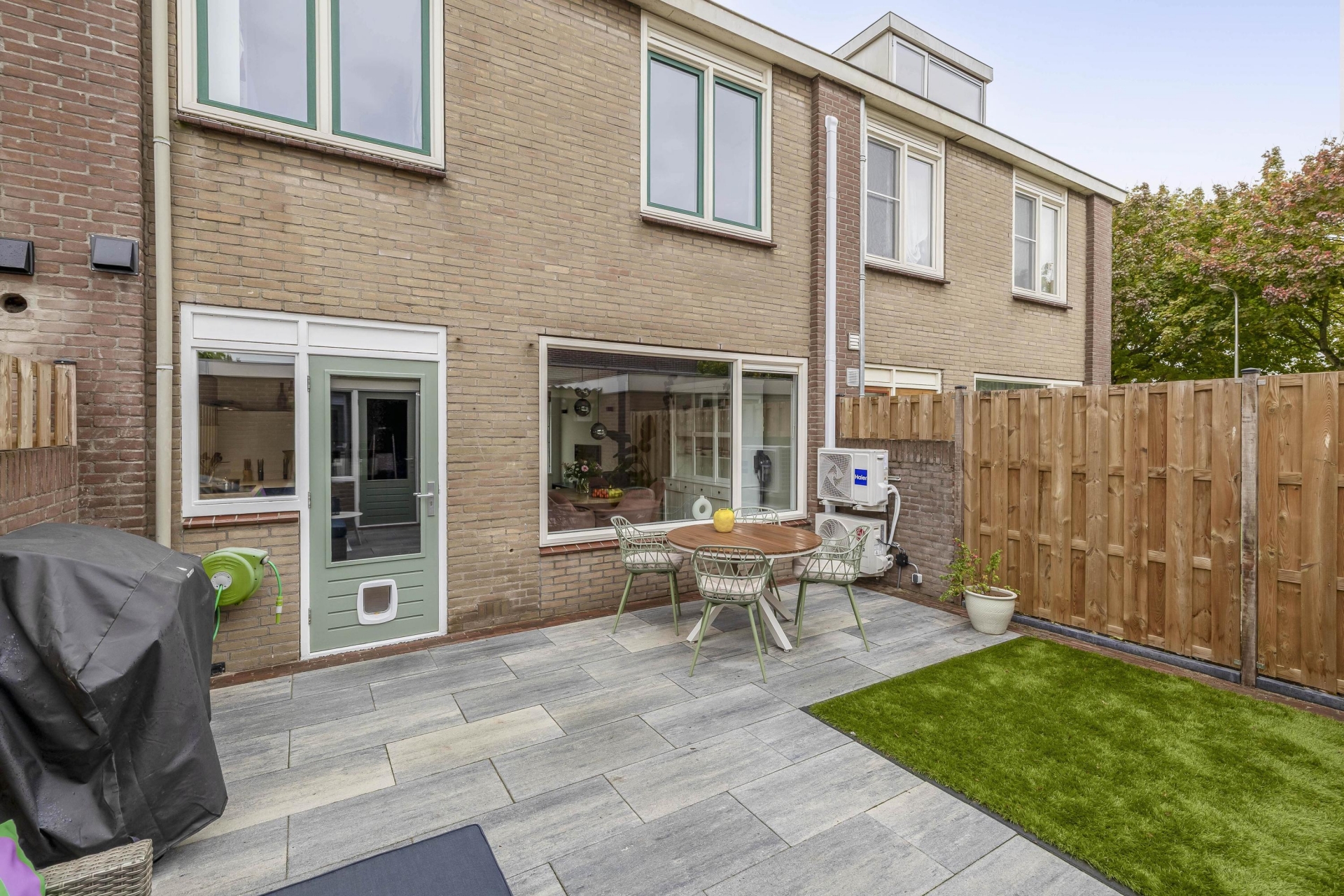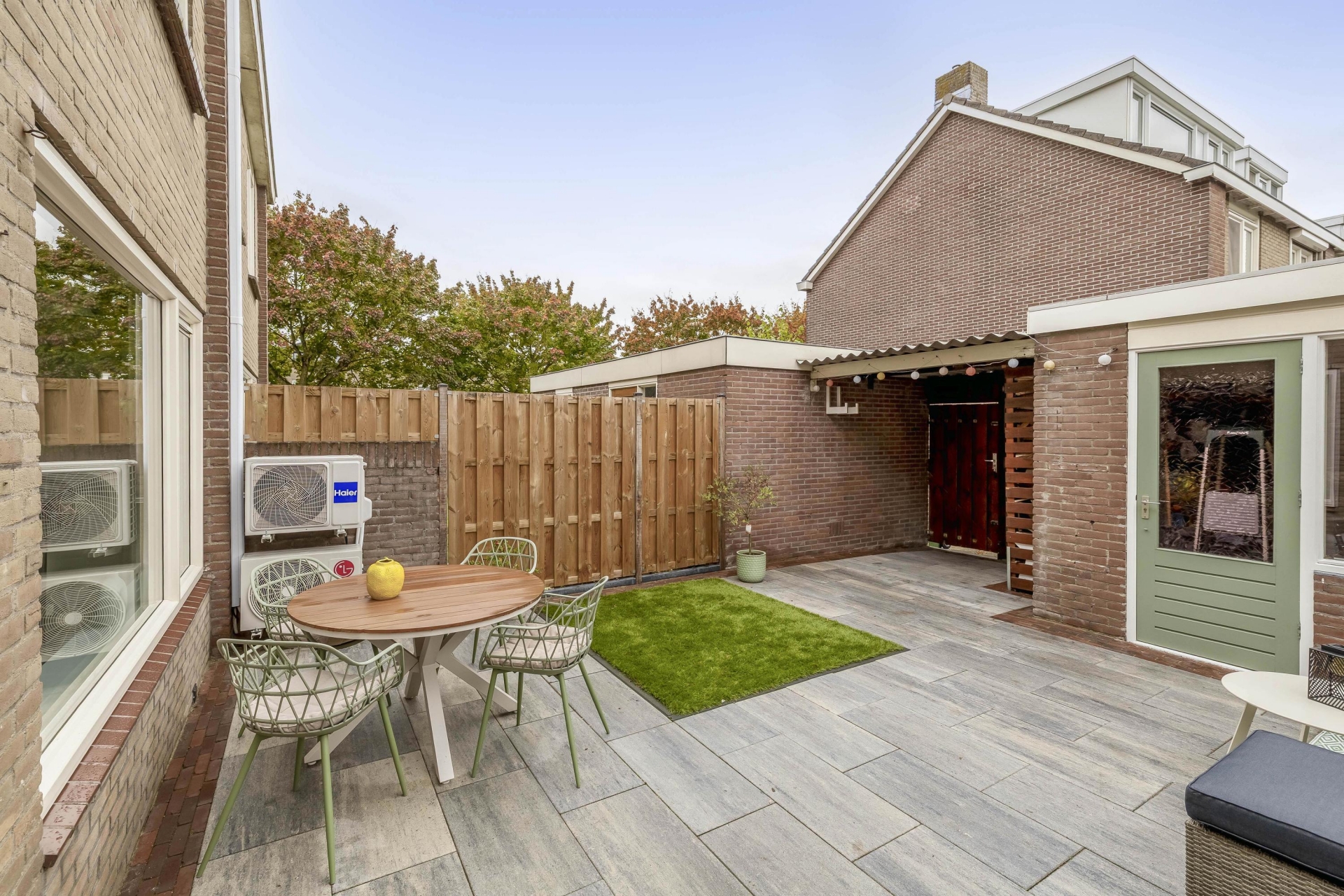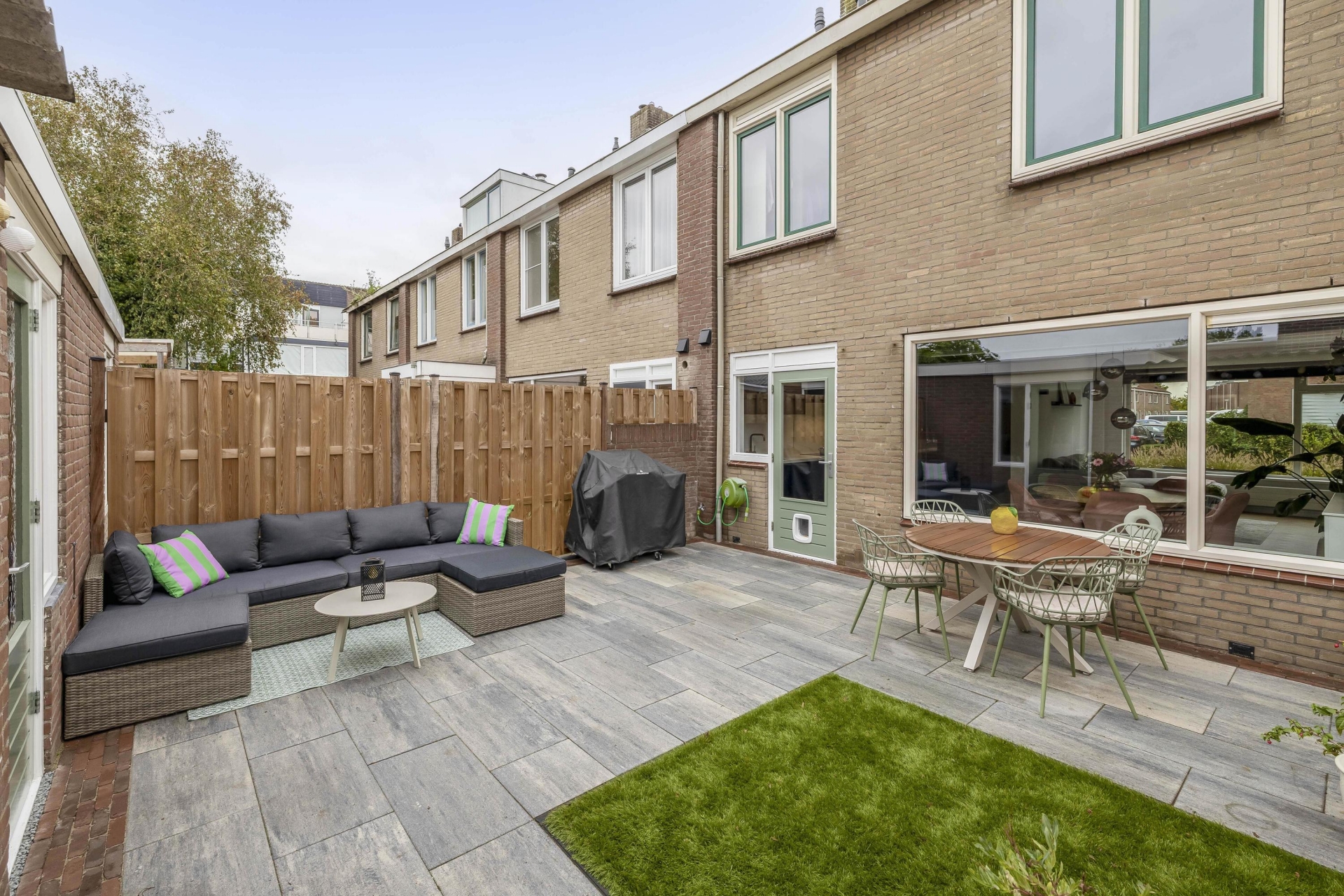De diepe achtertuin is onderhoudsvriendelijk aangelegd met grote tegels, een stukje kunstgras en een leuke zithoek – perfect om zomers buiten te eten of gewoon lekker in de schaduw te zitten. Dankzij de achterom is de tuin ook ideaal voor wie graag met de fiets thuiskomt of kinderen heeft die via de poort de buurt in- en uitlopen. Extra fijn: achterin de tuin is er een overkapping, zodat je ook met minder weer droog buiten kunt zitten of spullen kunt stallen.
