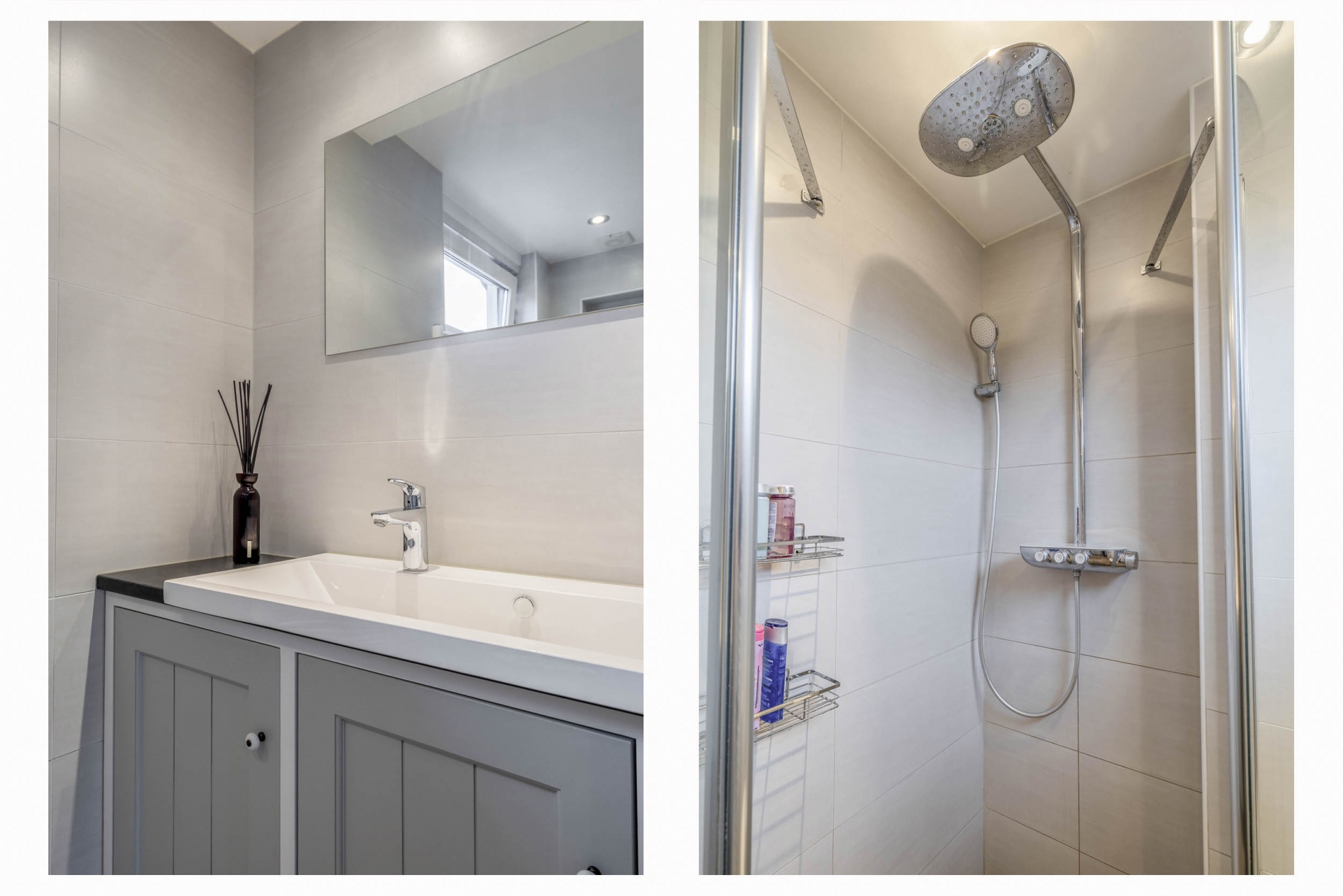 Met drie verdiepingen is er genoeg plek voor een gezin, hobbyruimte of thuiswerken. Op de eerste verdieping vind je drie slaapkamers, waarvan de grootste aan de achterzijde ligt. De kamers zijn netjes afgewerkt en goed van formaat. De badkamer is compact maar praktisch, voorzien van een douche, wastafel en toilet. Op de tweede verdieping is de vierde slaapkamer gecreëerd, compleet met dakkapel – ideaal als rustige werkplek of extra slaapkamer.