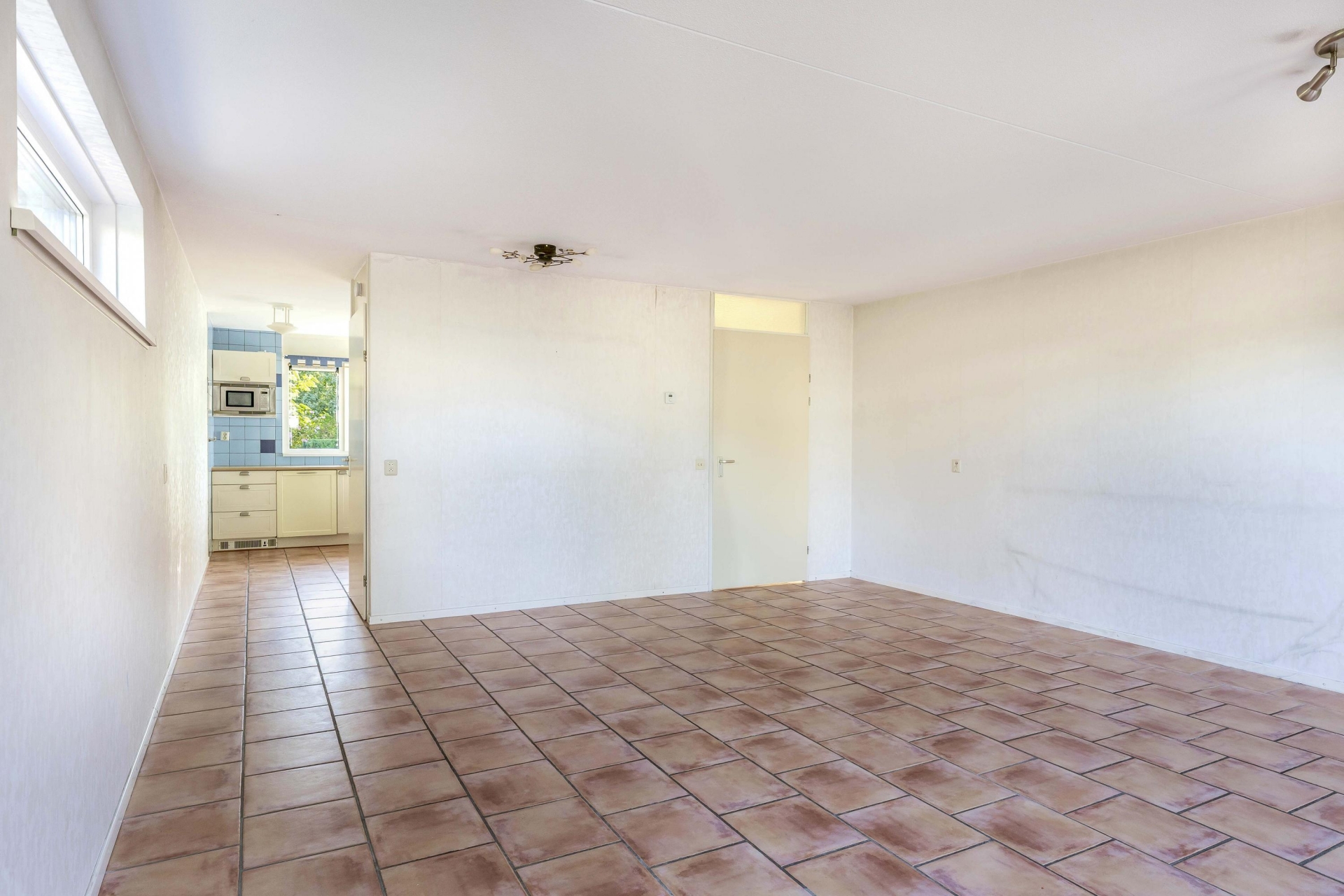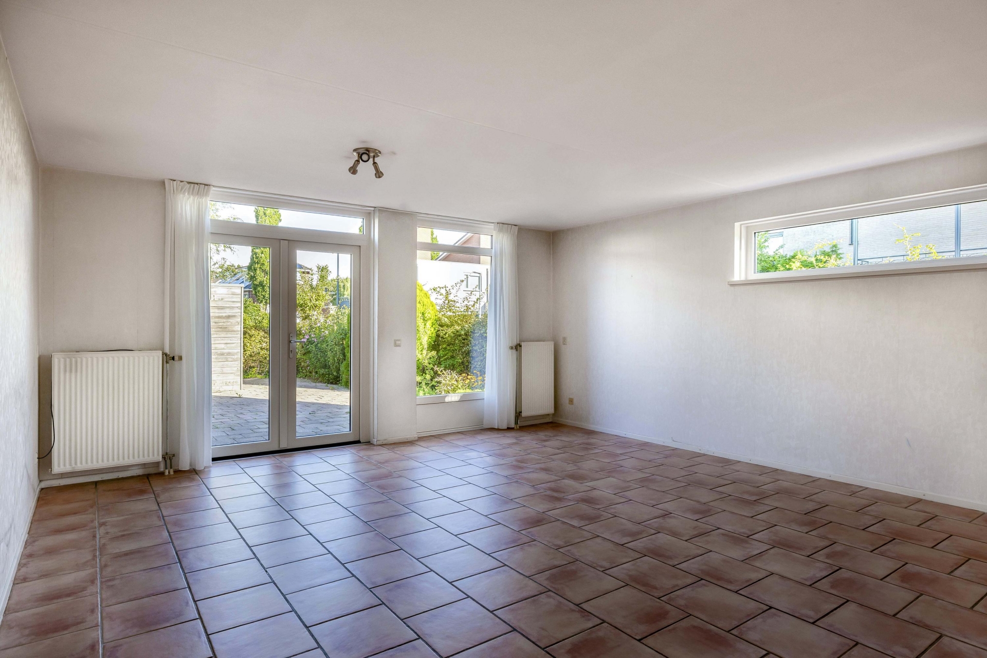 Bij binnenkomst valt direct de lichte en open sfeer op. De woonkamer is royaal van opzet en biedt door de openslaande deuren direct toegang tot de achtertuin. Dankzij het zijraam profiteer je van extra lichtinval, wat het geheel nog ruimtelijker maakt. De neutrale afwerking met tegelvloer en lichte wanden vormt een prima basis om je eigen stijl aan toe te voegen. De open verbinding met de keuken zorgt voor een fijne leefruimte waarin je zowel kunt ontspannen als gezellig tafelen. Vanuit de woonkamer kijk je uit op de tuin en het achterliggende groen, wat een gevoel van rust en privacy geeft.